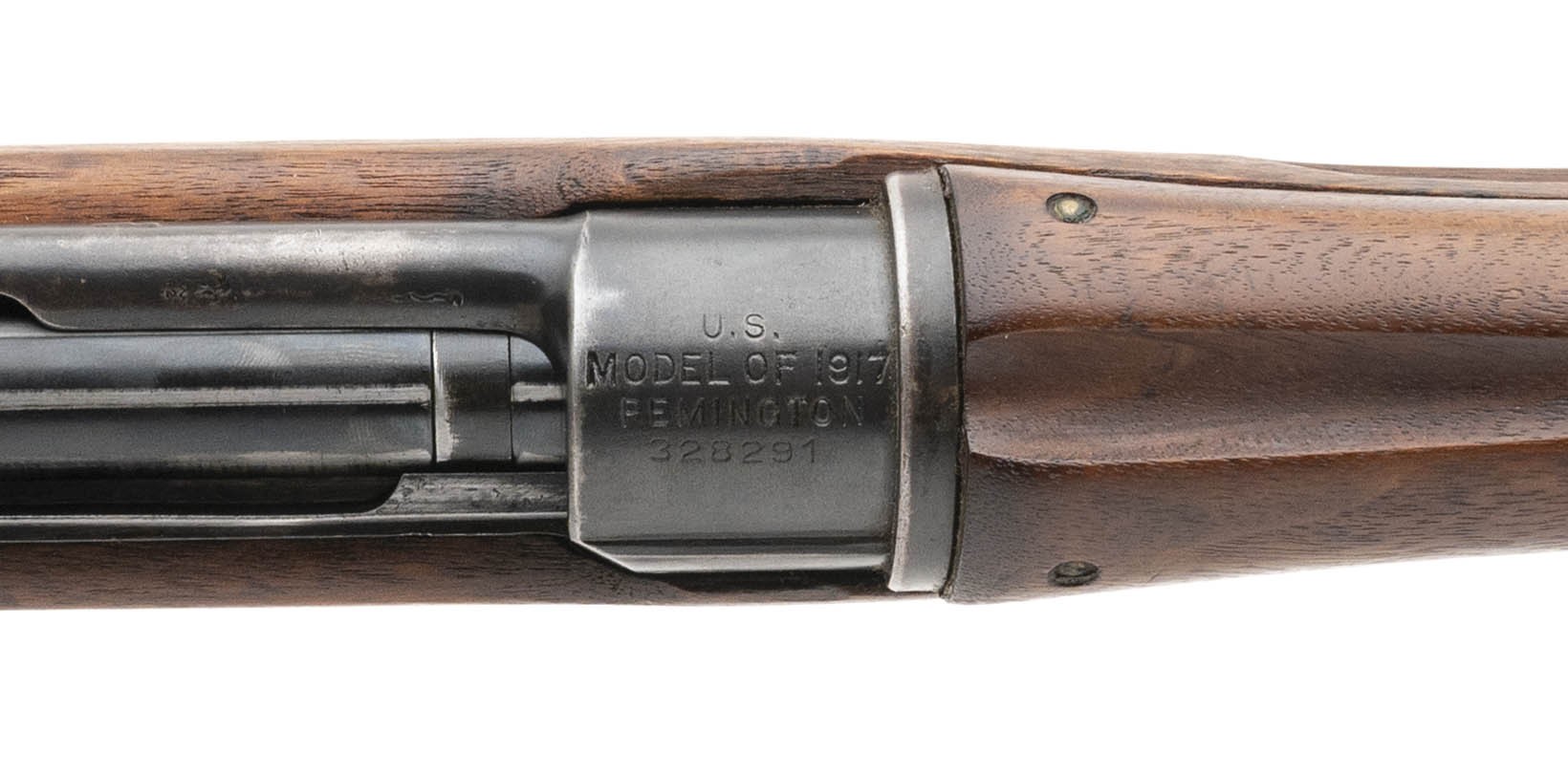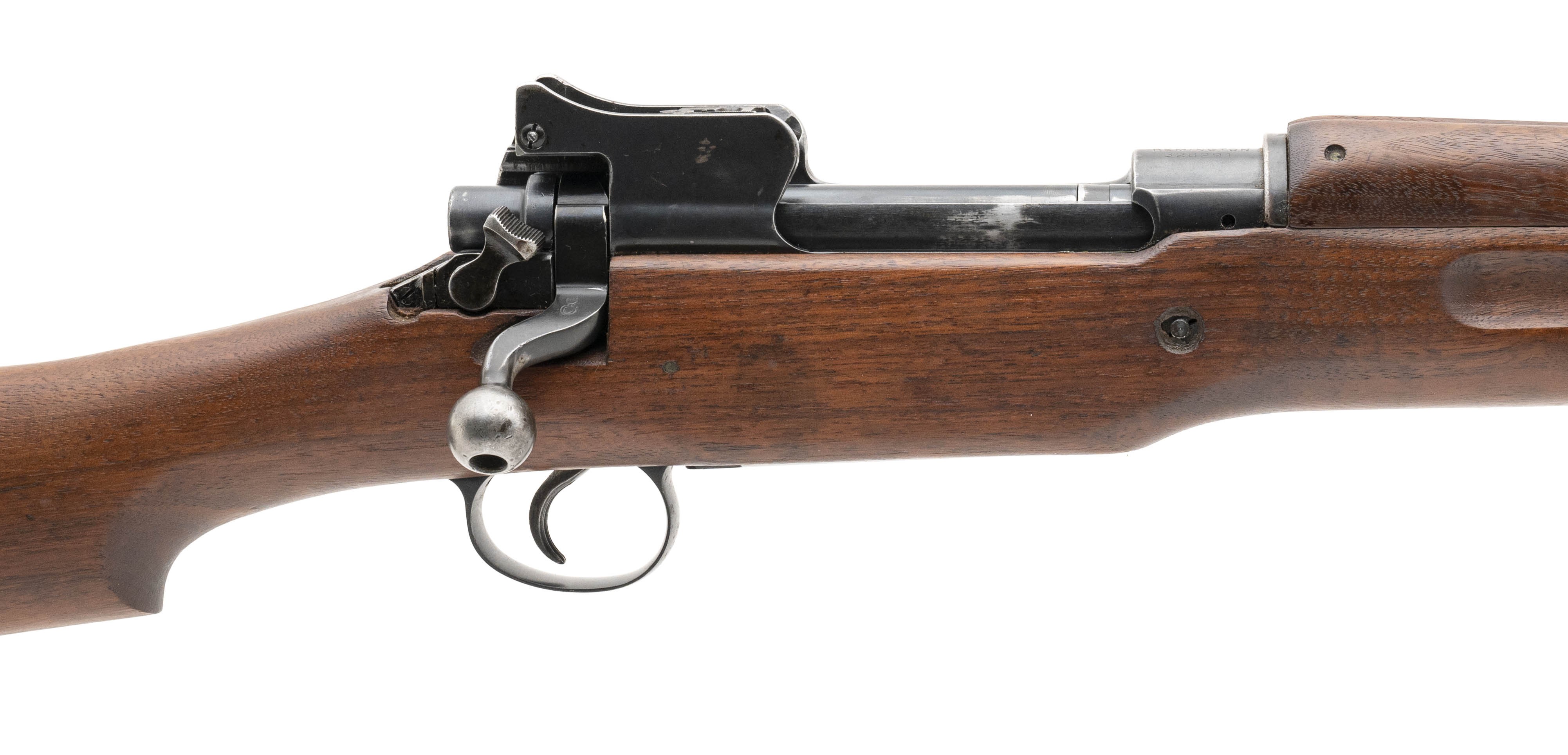 Serial No. 328291, chambered in .30-06 manufactured circa 1918 in overall good condition. Rifle has been arsenal refurbished post WWI. Bore is bright and shiny with strong rifling visible with barrel dated 5-18. Comes with a scarce 1918 stamped Remington bayonet. These bayonets were stamped with the year of production instead of model number