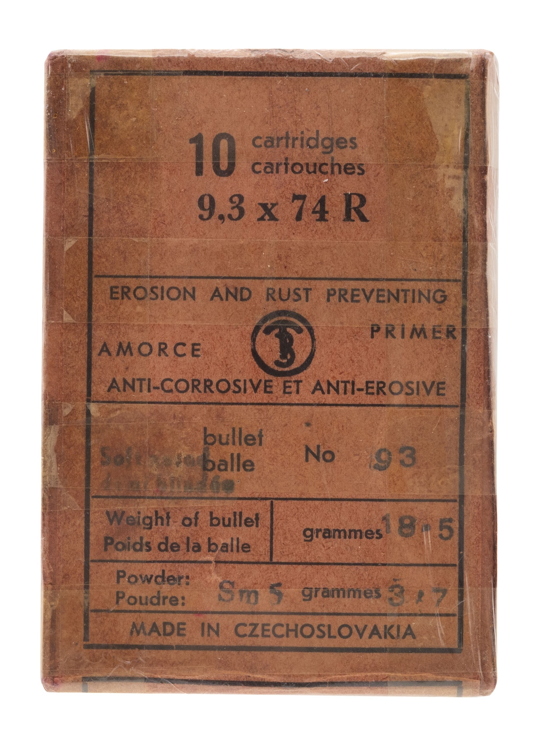9,3x74R Usually For Big Game Double Rifles. Box of 10 Made in Czechoslovakia.