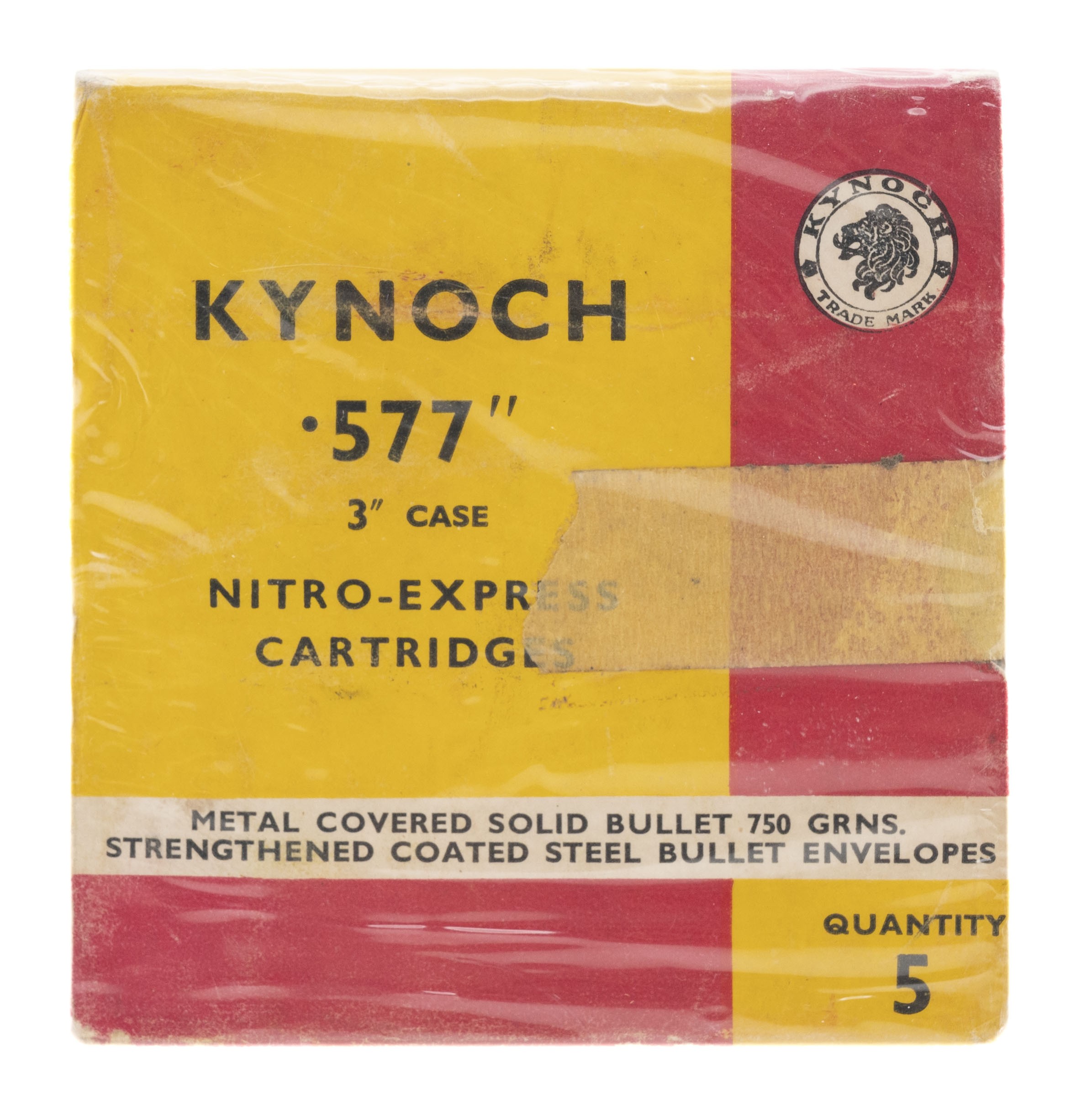 .577 3"Case Nitro Express Cartridges By Kynoch For Dangerous Game. Full Box of 5rds.Box Missing Both End Flaps.