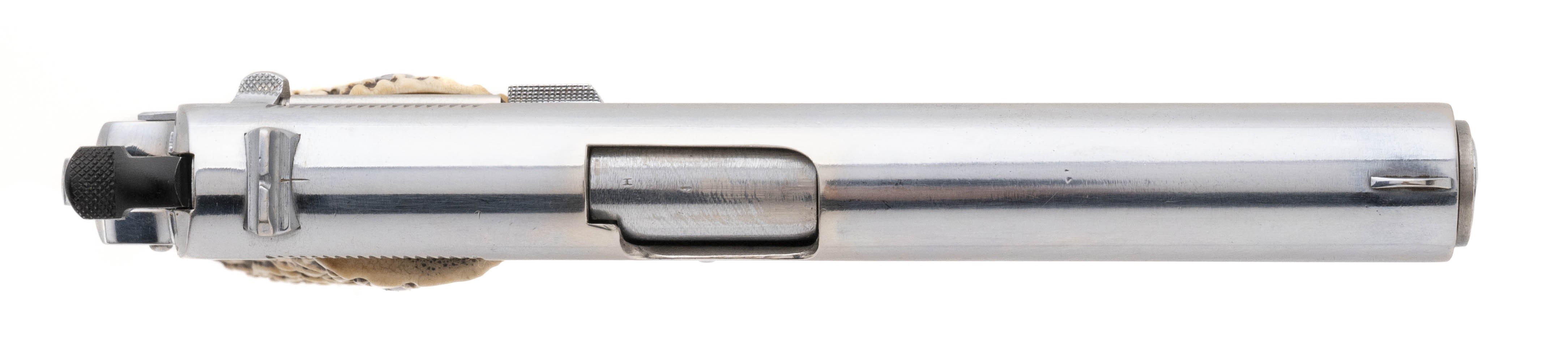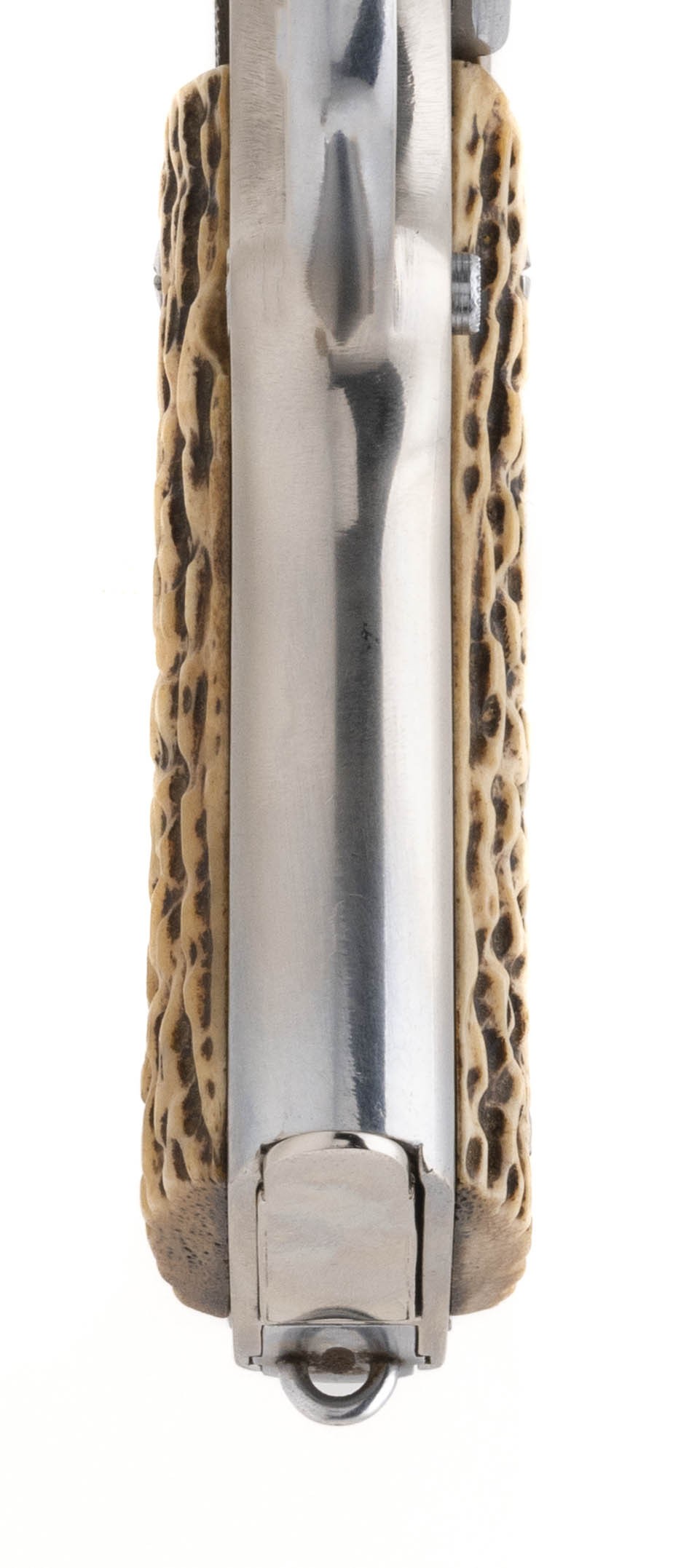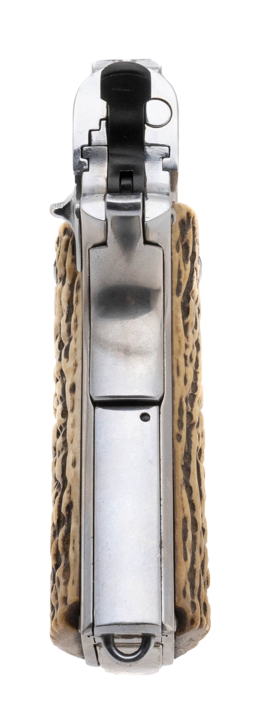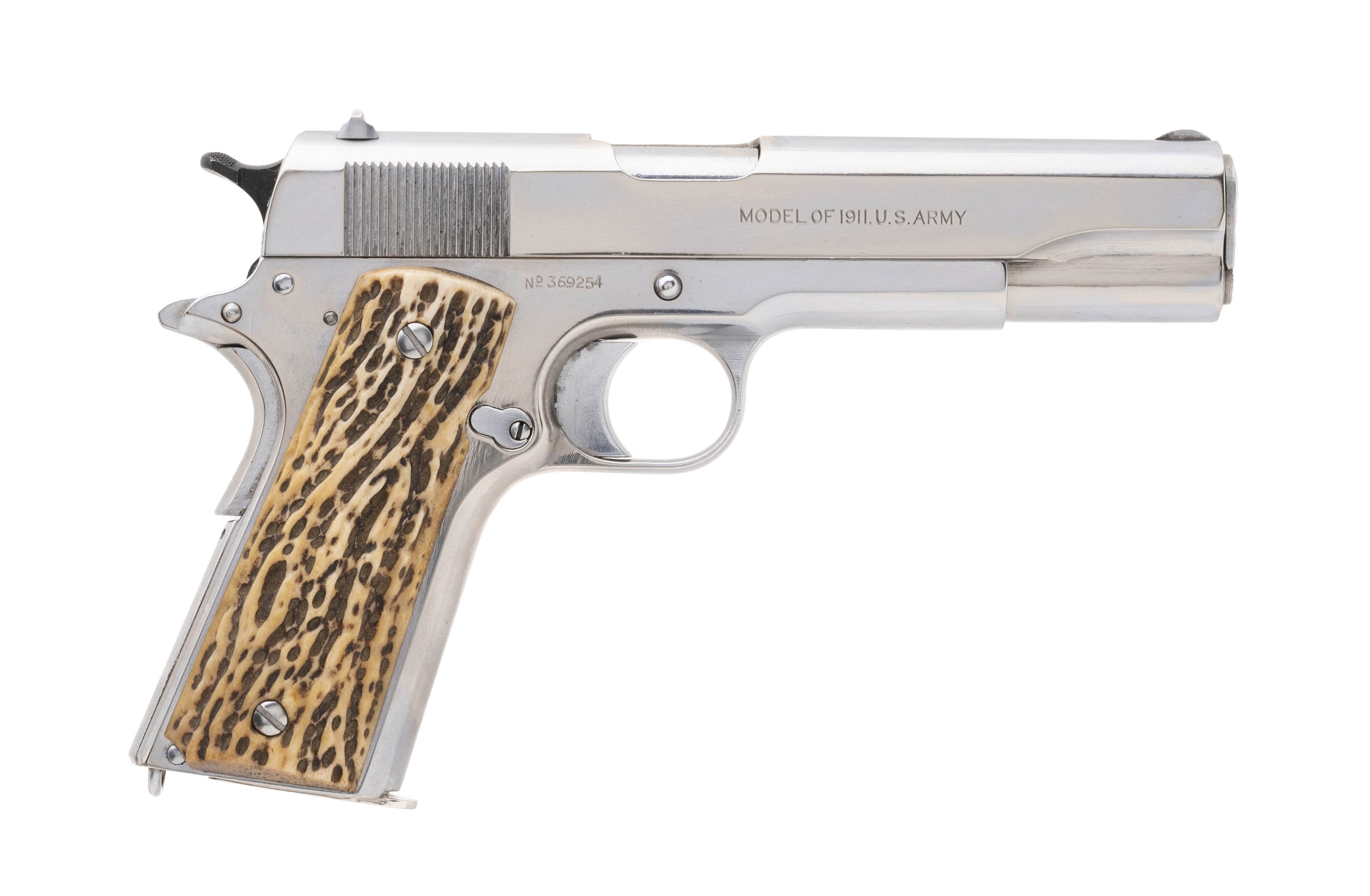SN: 369254. WWI U.S. military pistol made in 1918. Bore is good with light etching. Has been customized with chrome finish and stag grips. Looks good, very good condition.