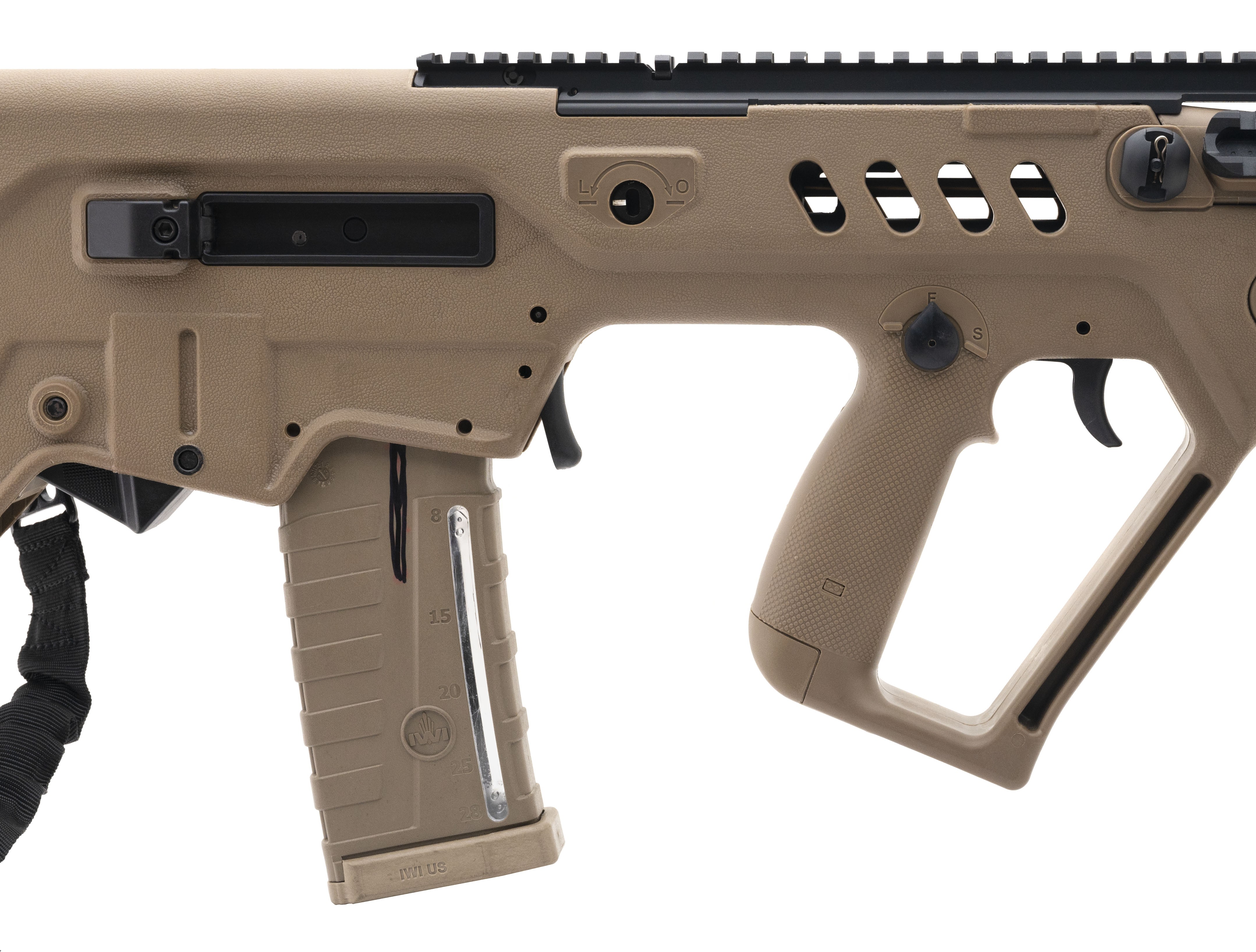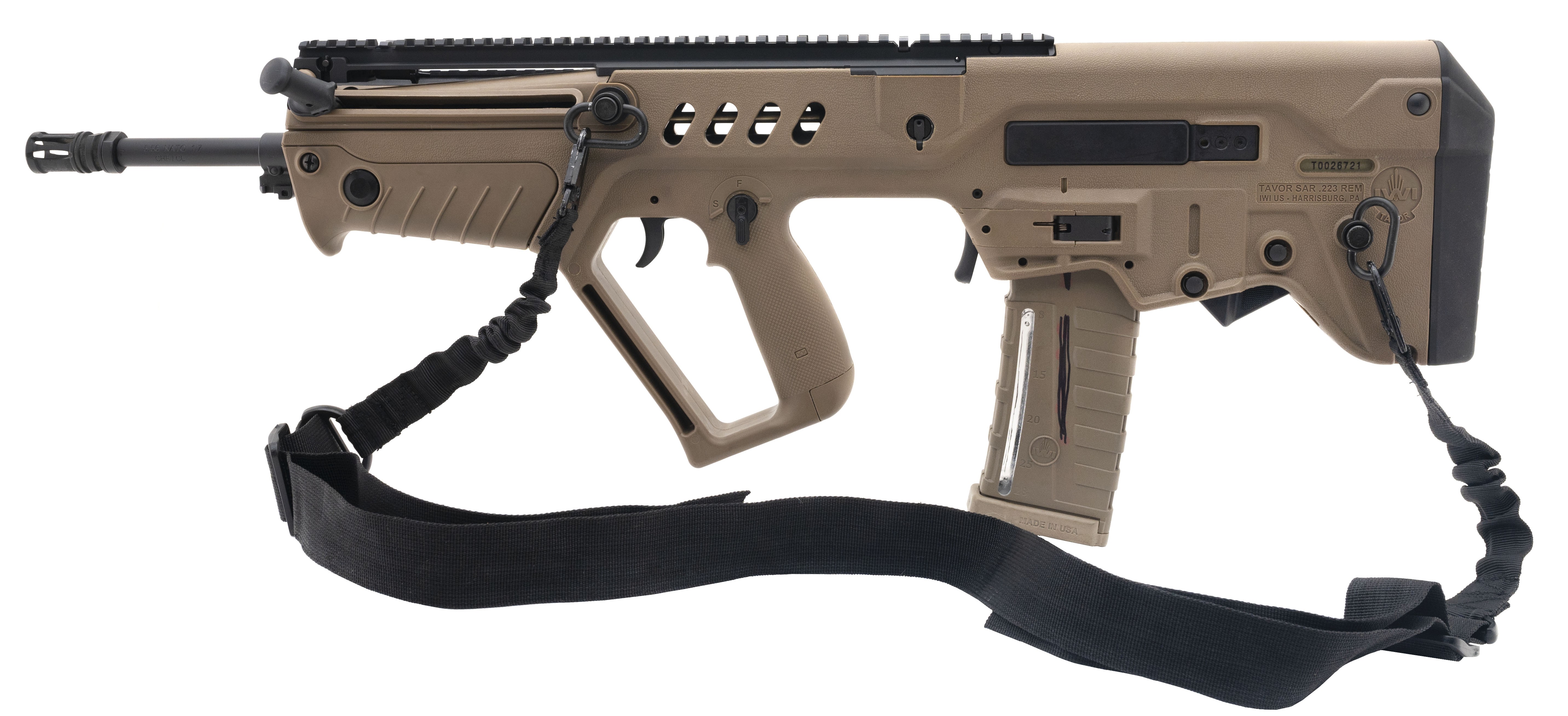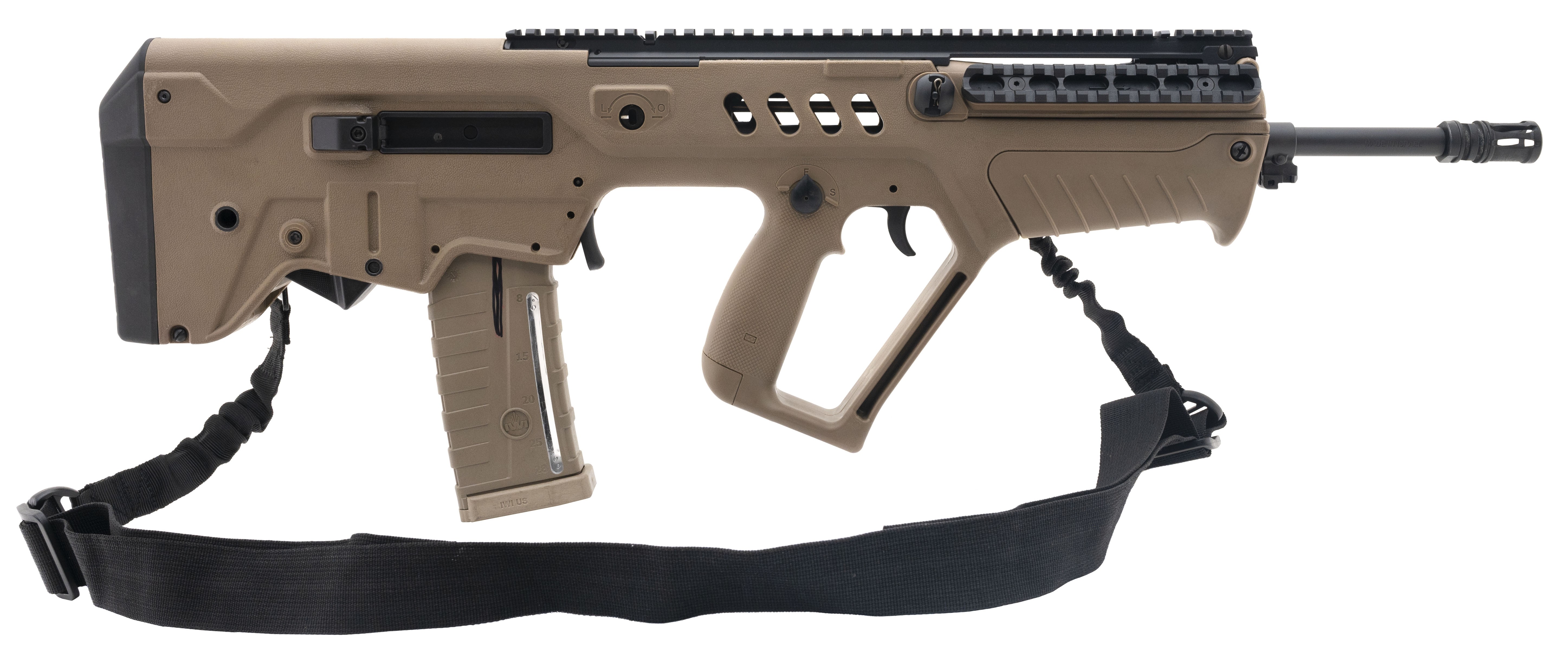 SN:T0026721. FDE Semi-automatic Israeli bullpup rifle with integral iron sights & an 18" 1:7 twisted barrel. In excellent condition. Comes with a QD black sling.
