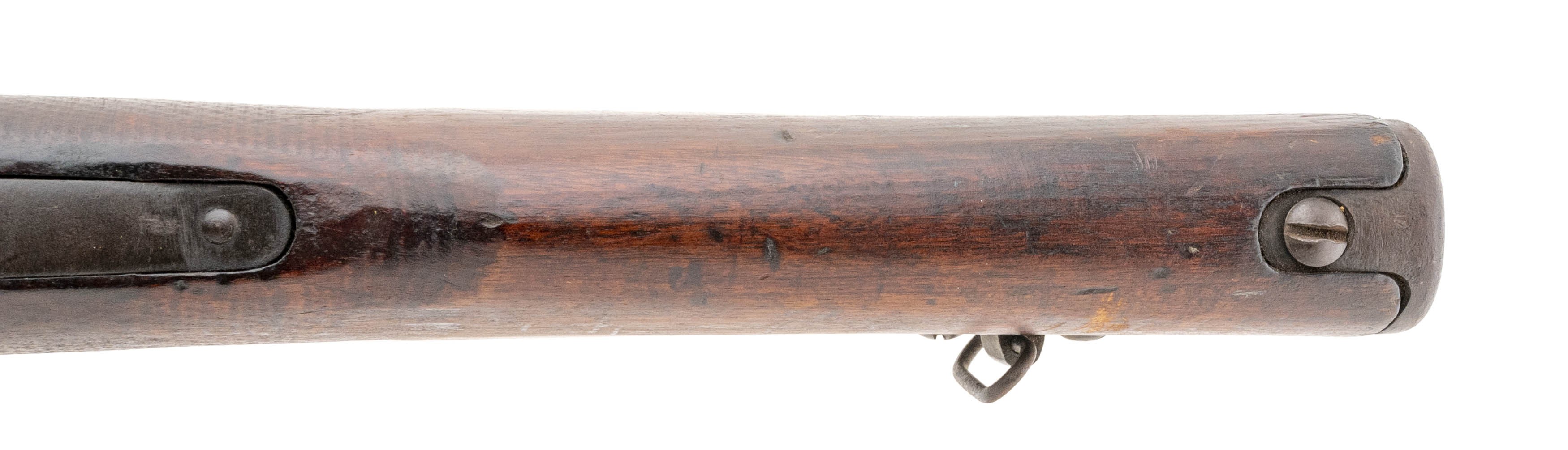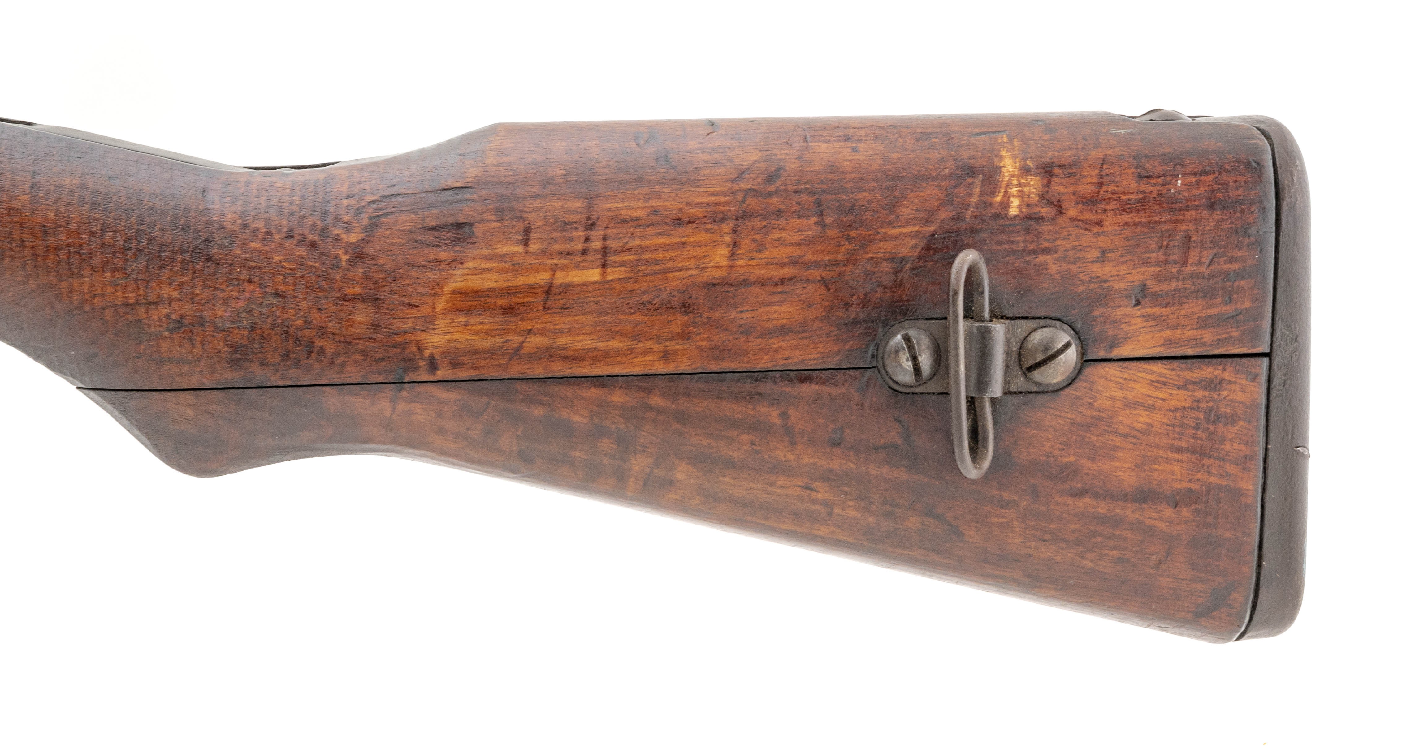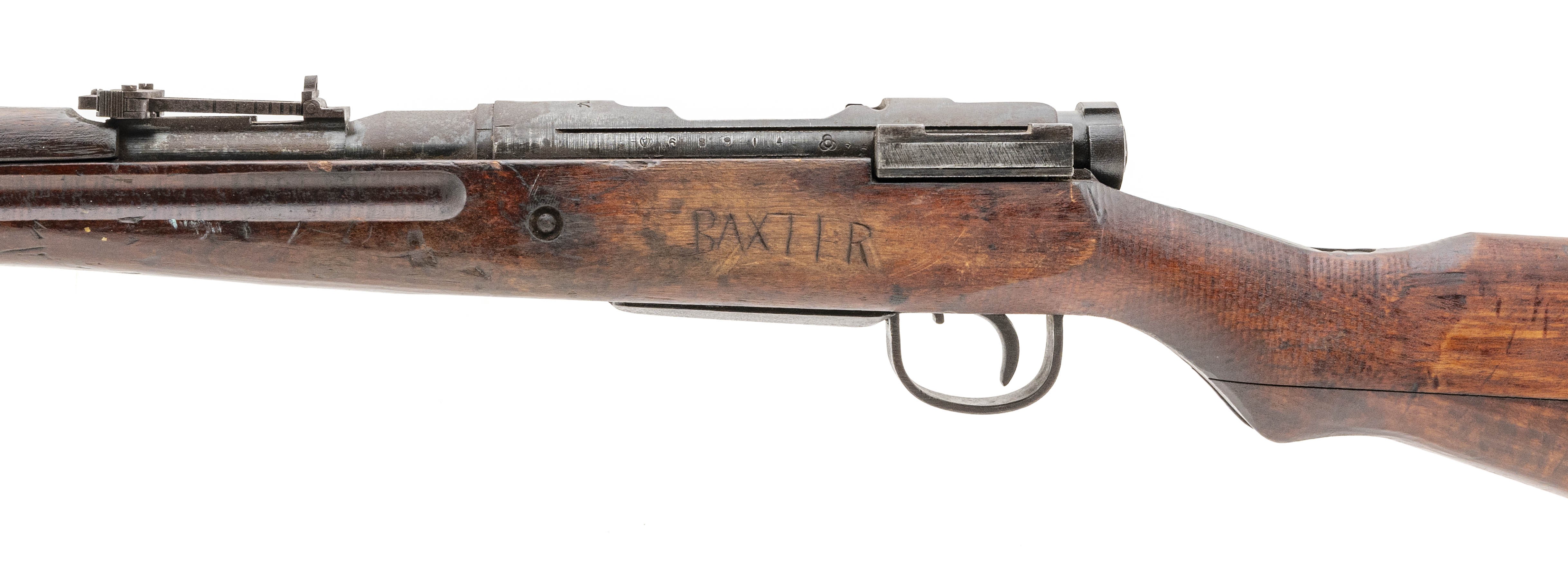 Serial No. 68914, chambered in 7.7jap, 26" round barrel. Rifle is in untouched condition, surface oxidation is noted on metal surface. Mum has been grounded off, bore is dark with frosting and pitting noted in the rifling. Wood shows dings and scratches with names carved into each side of the rifle. Bolt is matching to receiver. Overall good looking example of a bring back