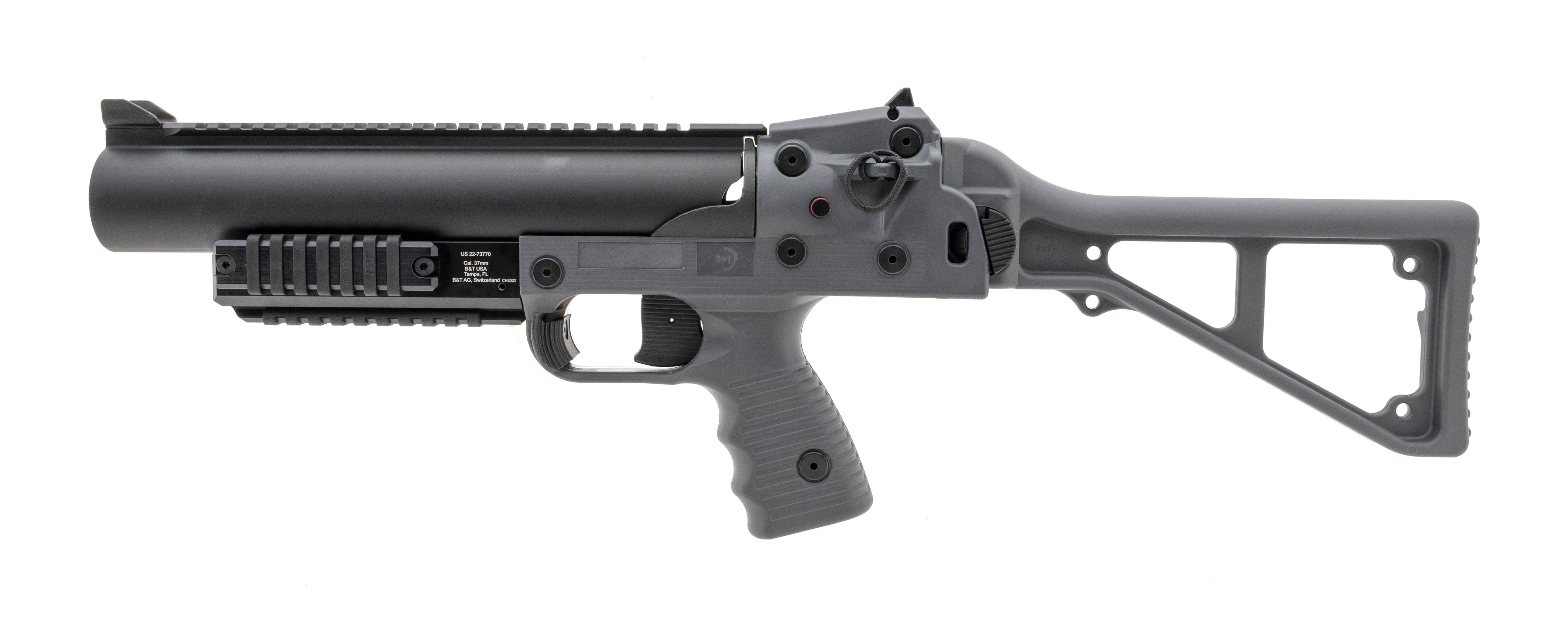 Lightweight 37mm Flare/Signal launcher in dark gray finish. Has 4 picatinny rails, folding stock, safety and rail covers. NEW. UPC: 840225709605