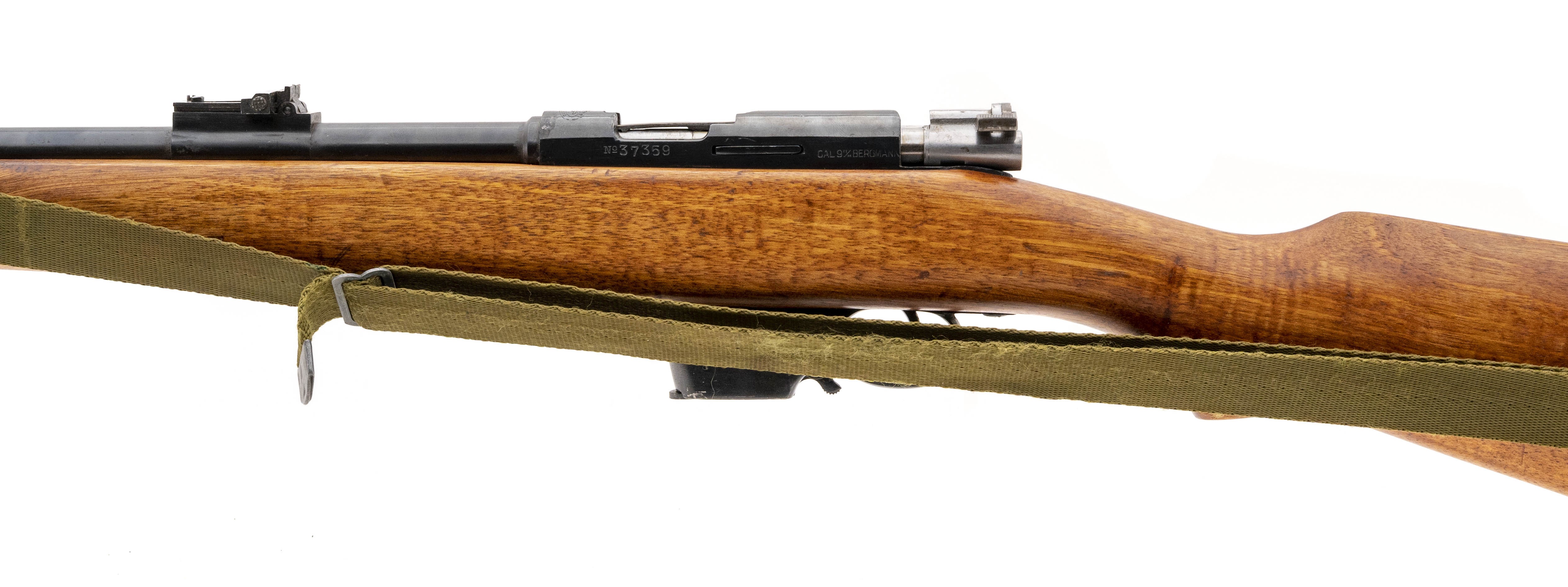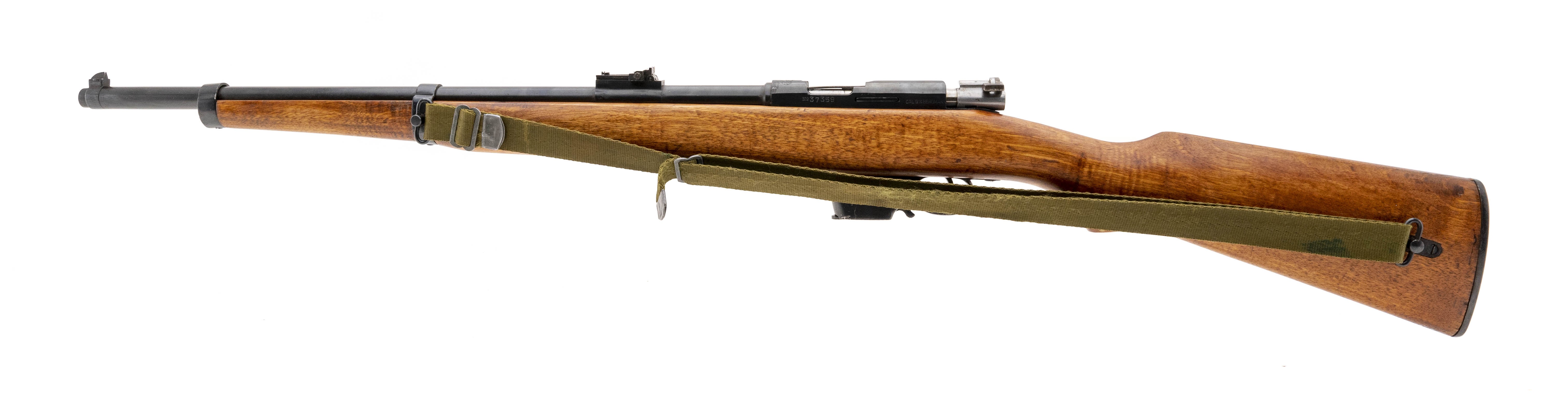 Serial No. 37359, circa 1953, 9mm Largo, 21.5" barrel. Overall very good condition, bore is excellent. Light handling wear is visible.