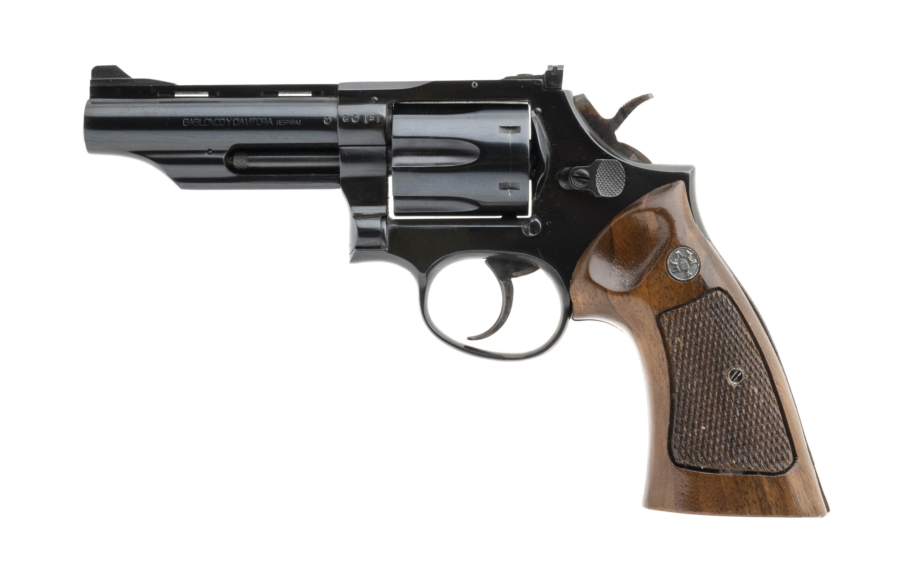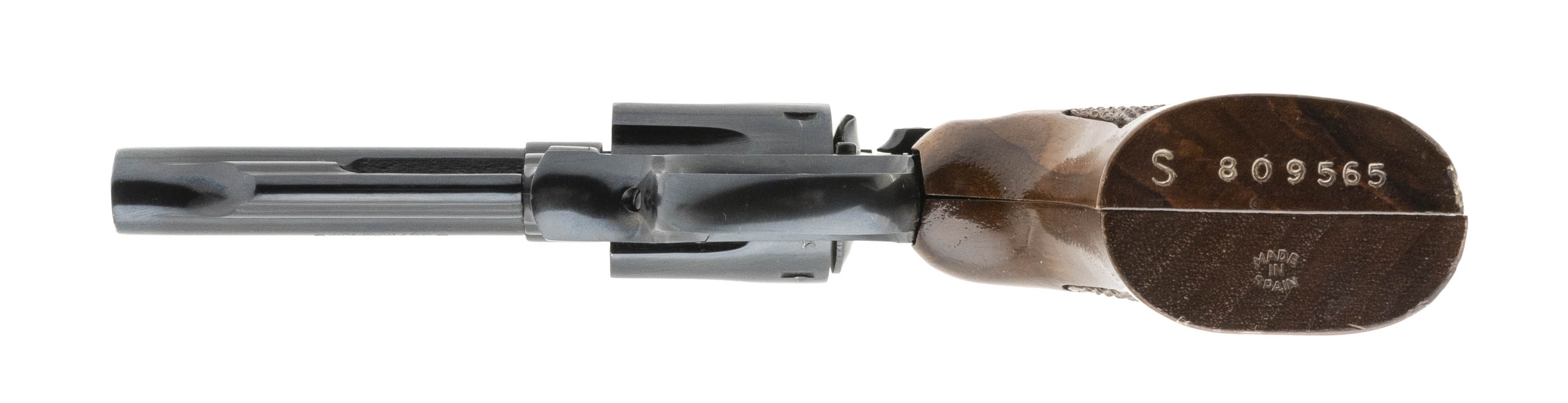 SN: S809565. Spanish made revolver with 4" barrel. 6 round capacity, with wood grips. Overall excellent condition. Comes with box.