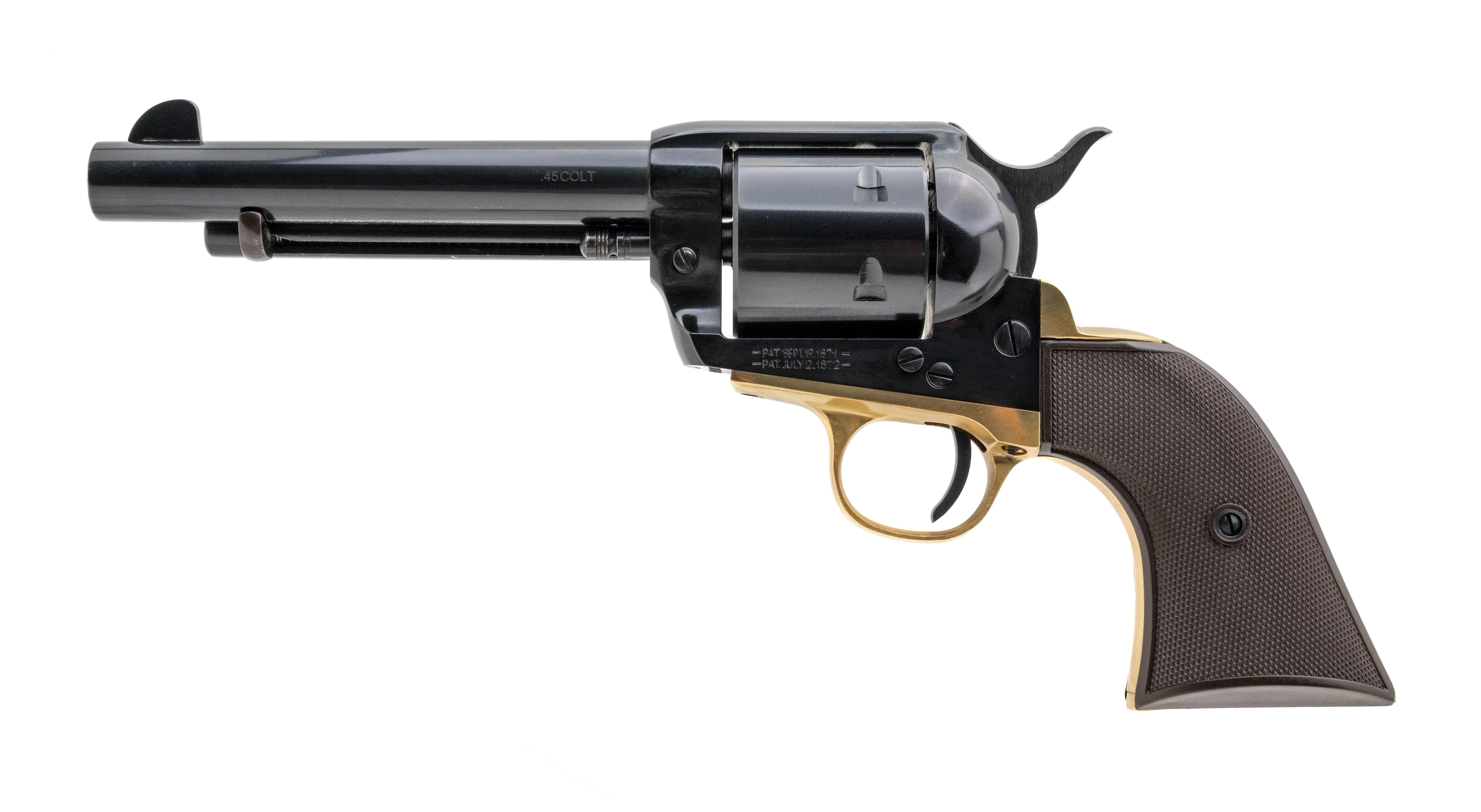 SN:E122147. Modern production replica single action, .45 LC & .45 ACP revolver with a 5.5" barrel. In excellent condition. Comes in box with a spare cylinder.