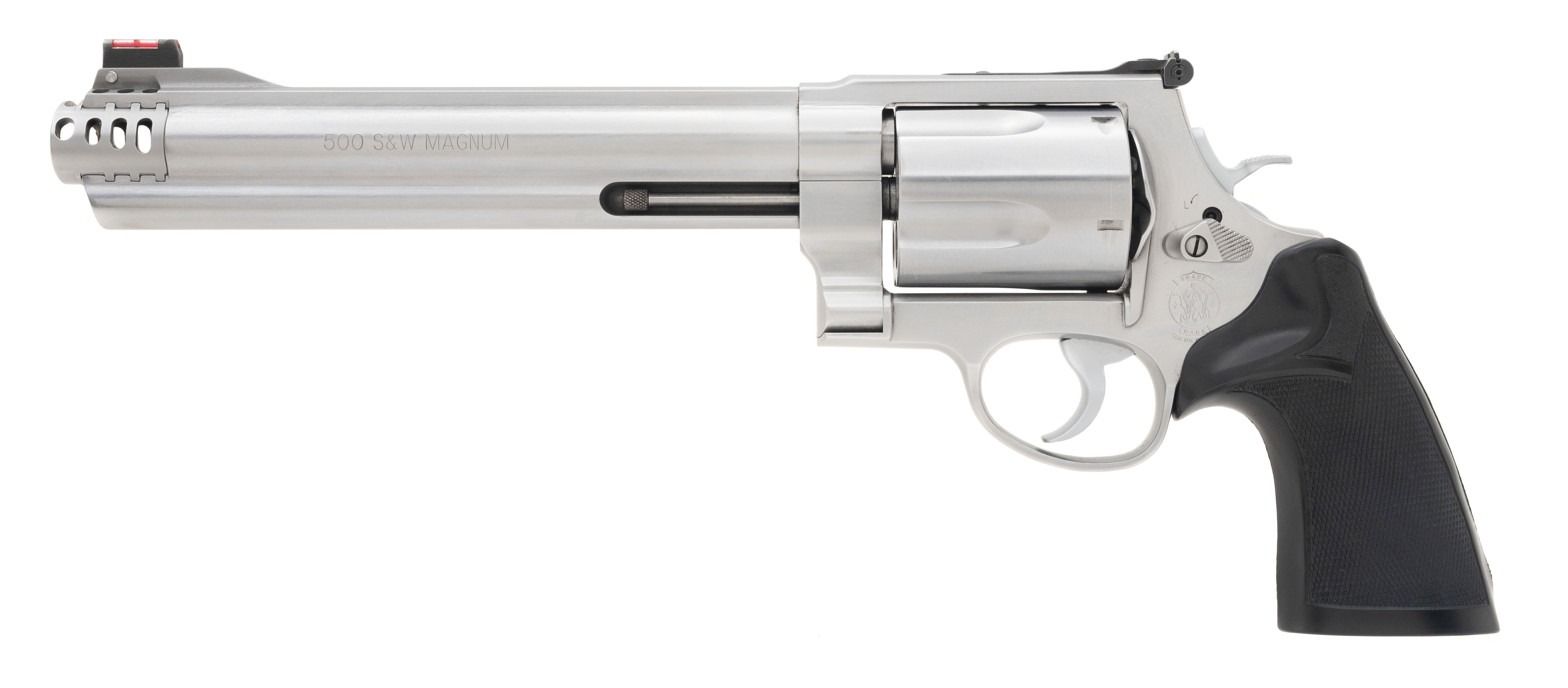 SN:DBZ5207. Modern production, .500 S&W magnum with a 8 3/8" barrel. Stainless steel big-bore revolver with compensator. Excellent condition with box.