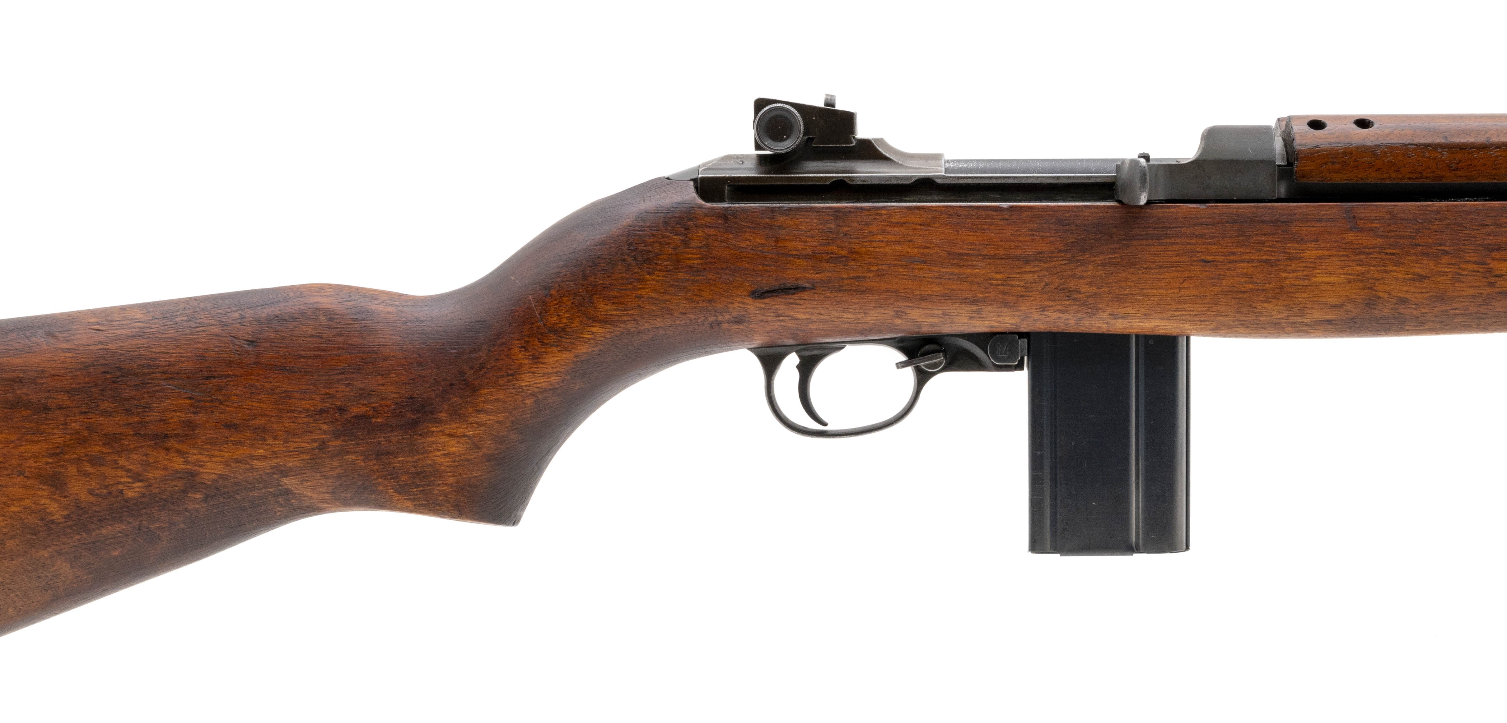 SN: 5766042. Manufactured circa 1944, .30 Carbine with an 18" barrel. WWII U.S. military carbine made by Winchester with a Winchester marked barrel and internals. The barrel has a import mark on the underside. Bore is excellent. Oval cut high wall stock in very good condition. Has Type 2 milled sights and Inland Type 3 barrel band with bayonet lug marked. Overall very good condition.