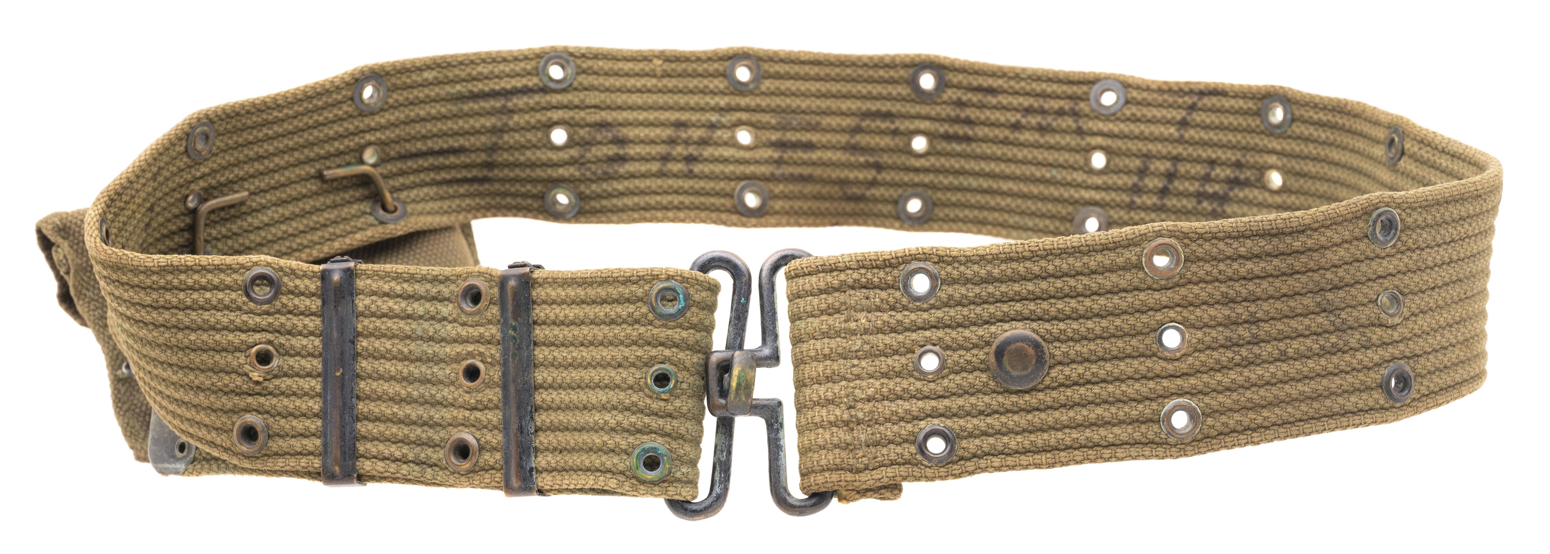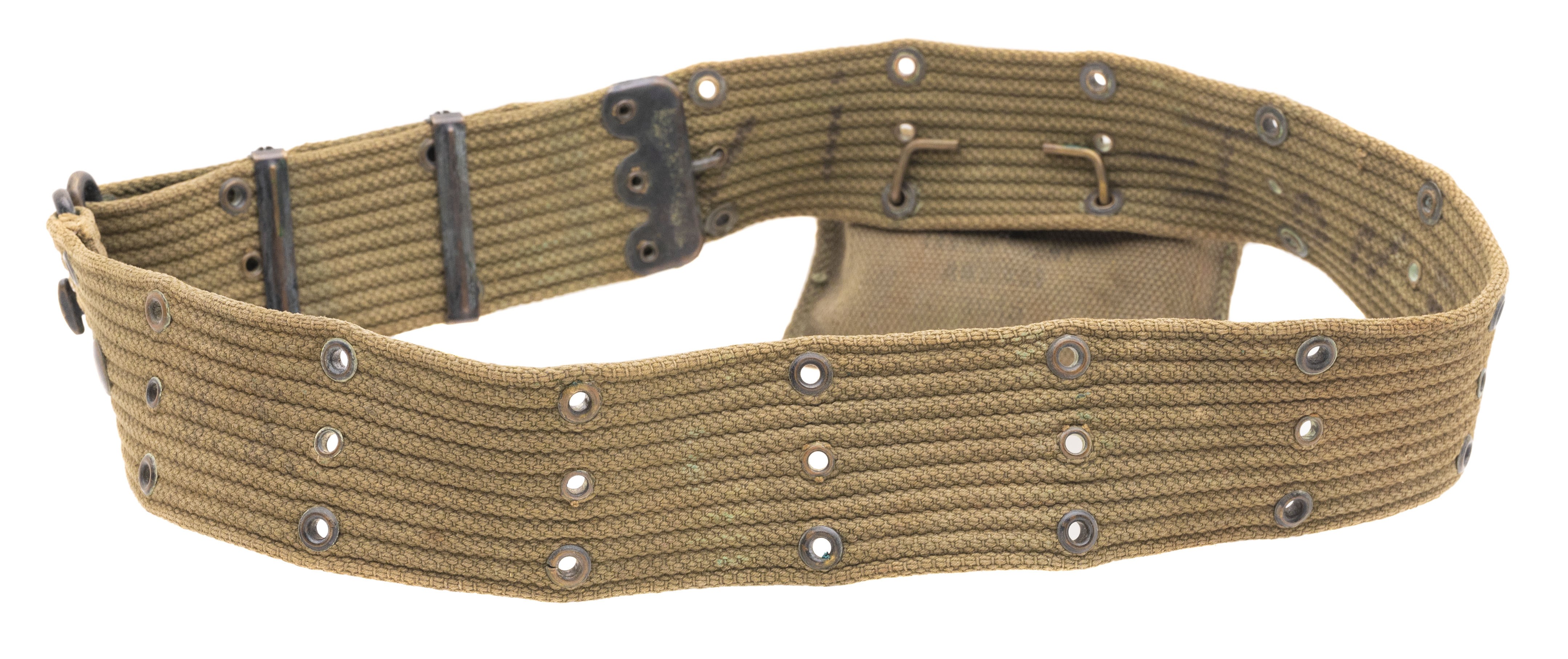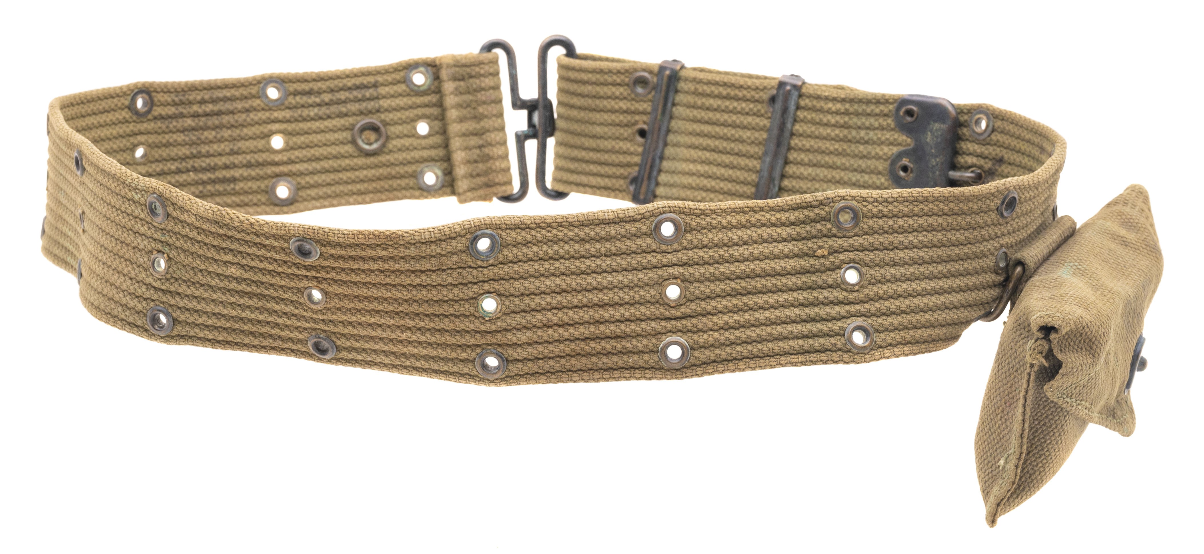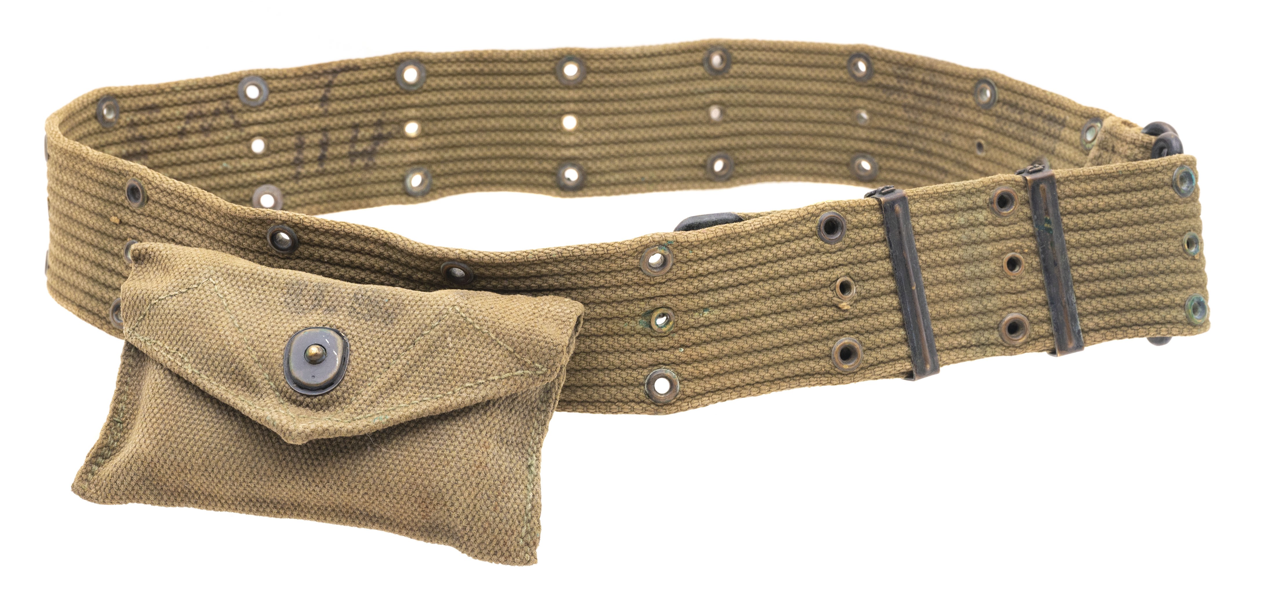 WWII US marked Web Pistol belt with bandage pouch attached in very good condition.