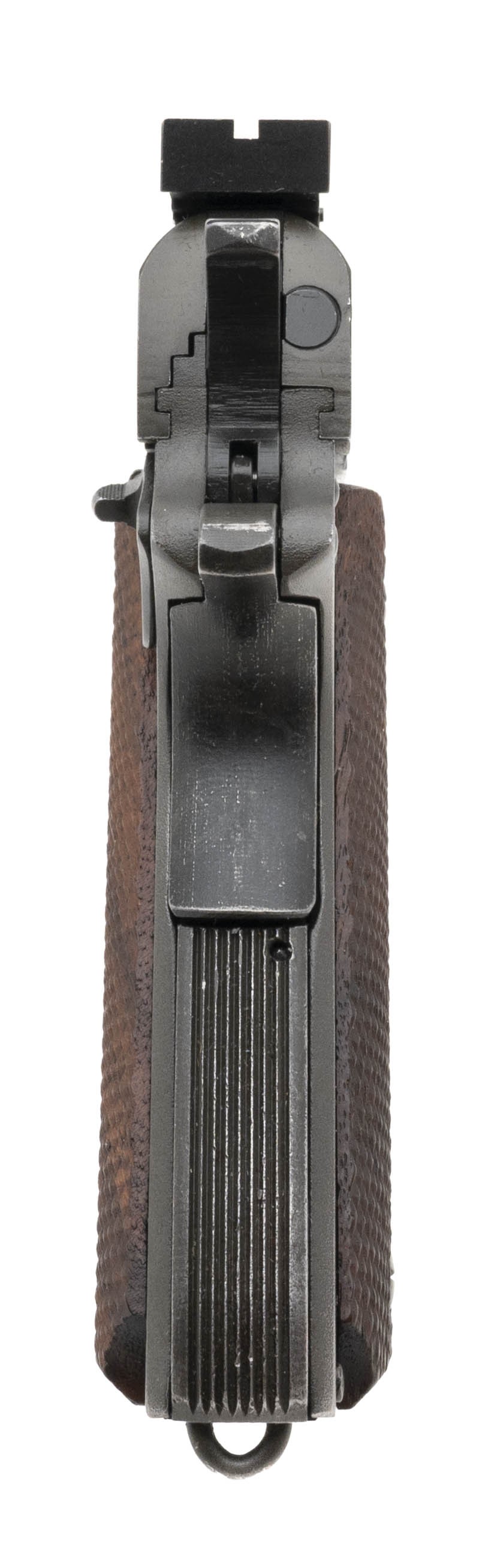 SN:2205524. Late 1960's production .45 ACP caliber with a 5" barrel. Late 60's National Match pistol built on a Remington Rand frame with a post-war replacement Colt slide, U.S. marked Elliason sight and checkered front strap. Belonged to a member of the U.S.A.R. 4th Army Marksmanship unit. Excellent overall condition.