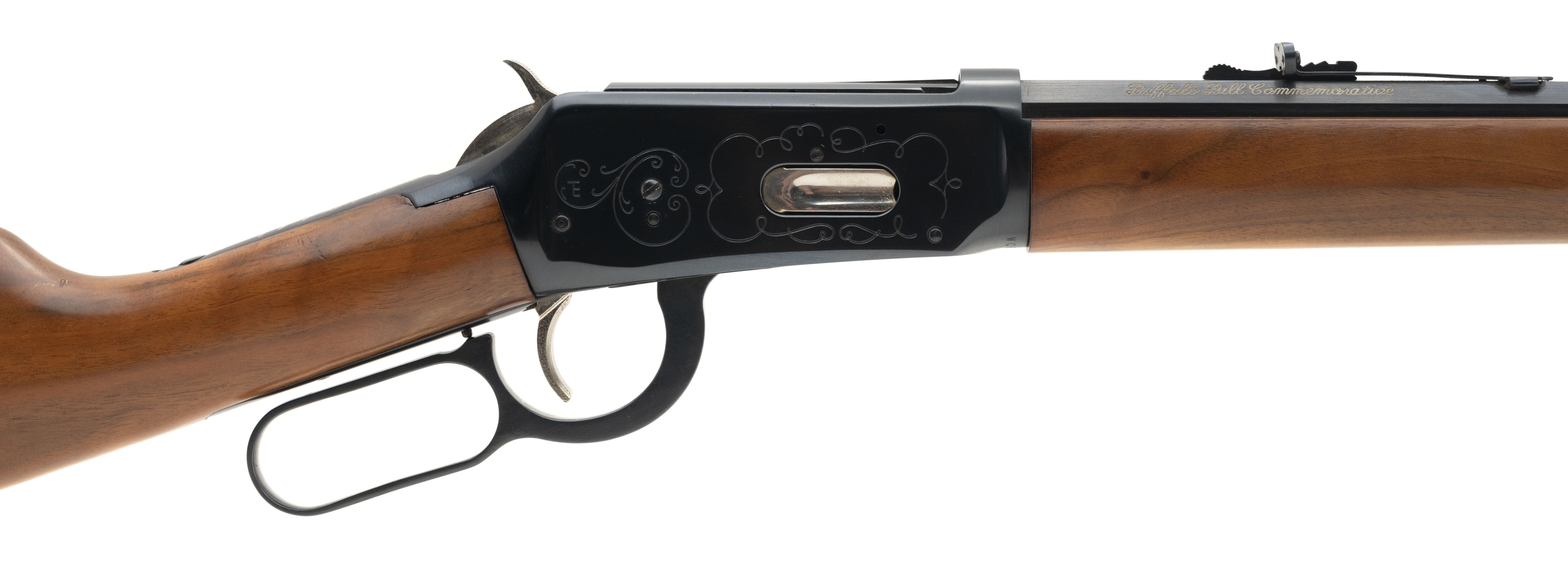 SN:WC62238, Manufactured circa 1968, 30-30 Winchester, with a 26' barrel. Bore is excellent with strong rifling. Buffalo Bill commemorative lever action rifle with octagon barrel, saddle ring, engraved recvier and buffalo bill engraved coin in wood stock. Overall condition is excellent.