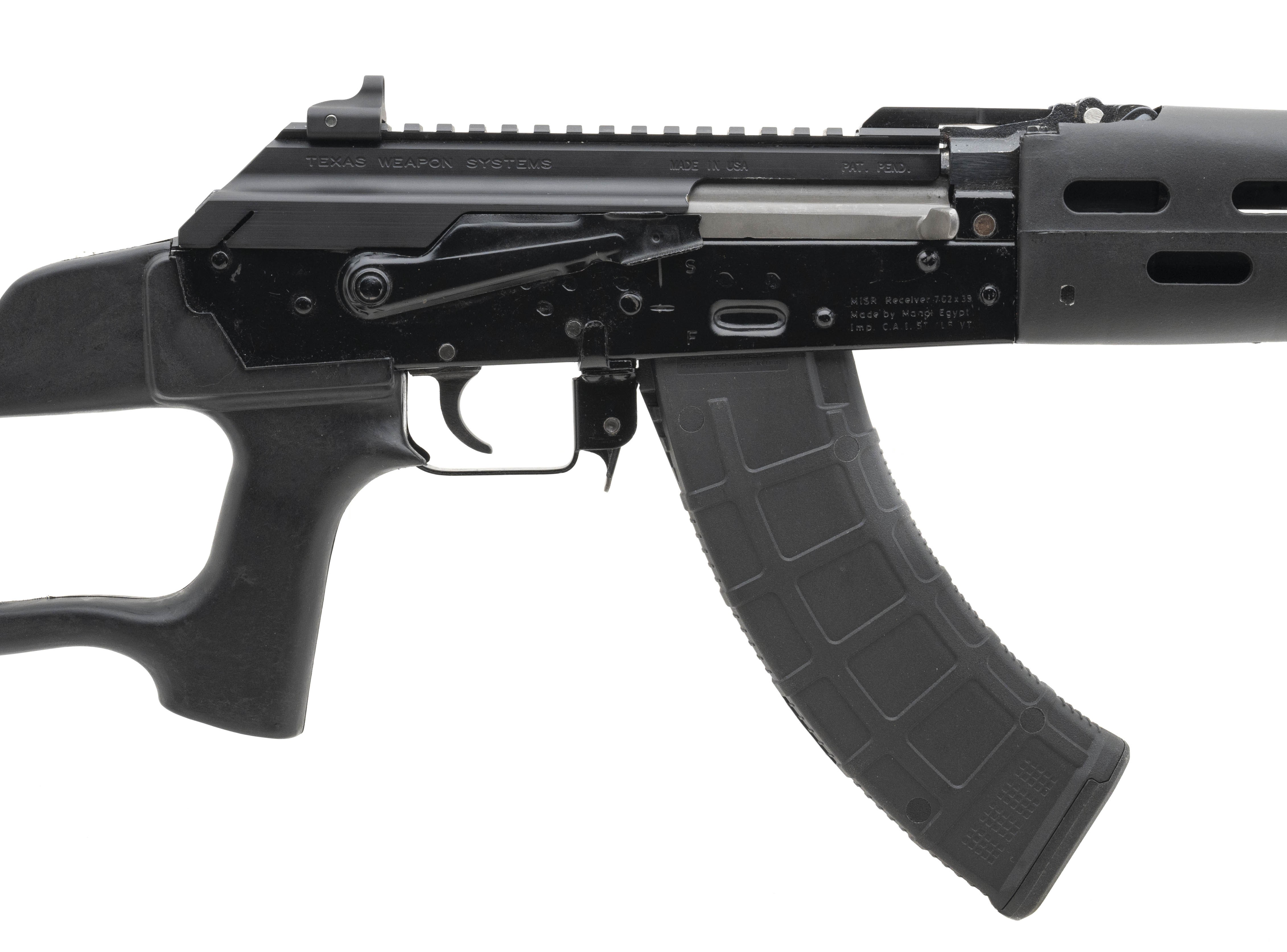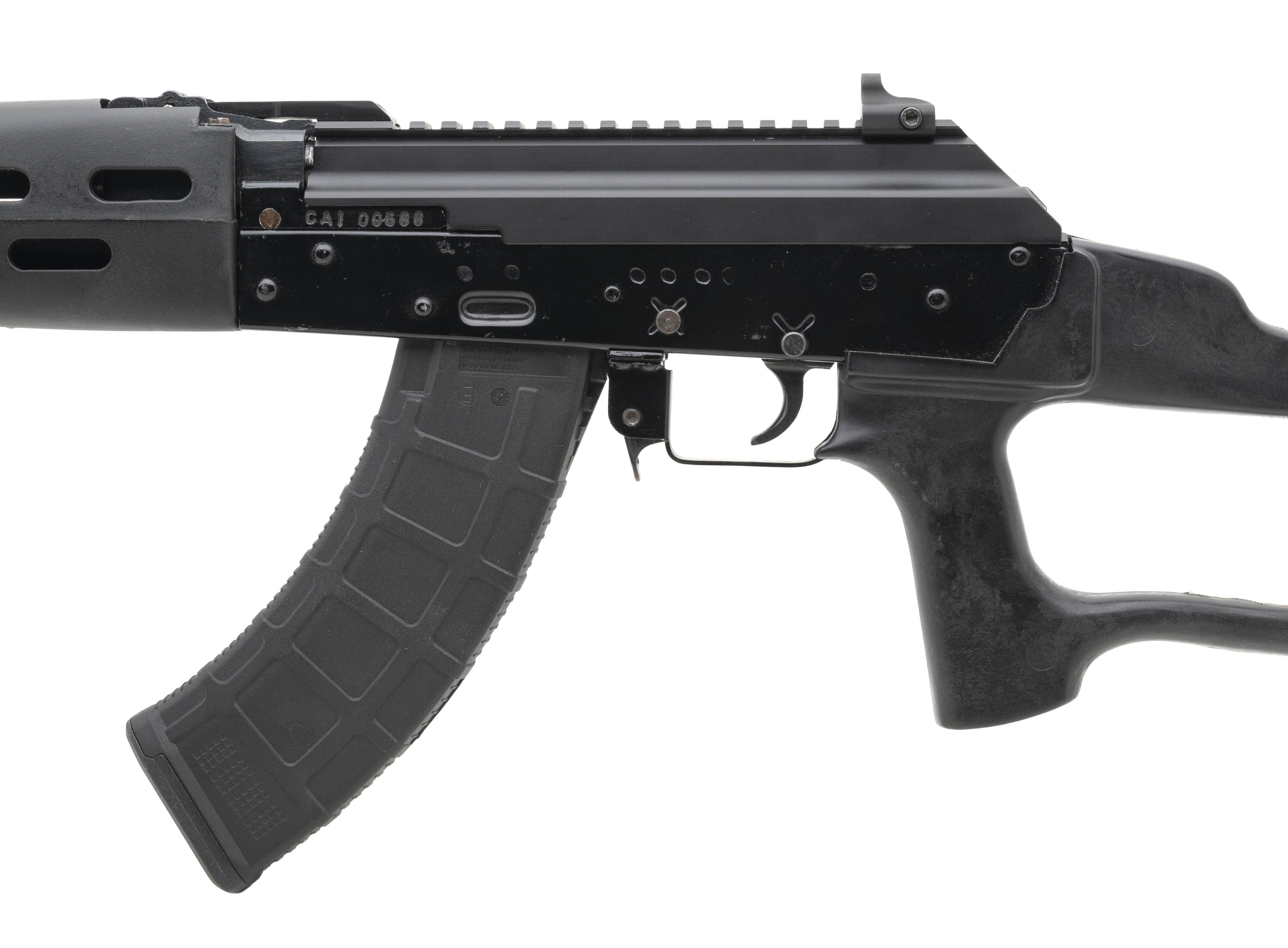 SN:CAI00688. Manufactured circa 1990's, 7.62x39mm with a 16.25" barrel. Bore is in excellent condition. Post ban Egyptian made Ak pattern rifle with Texas weapon systems picatinny rail, hooded front sight and extended polymer stock. Overall condition is very good.