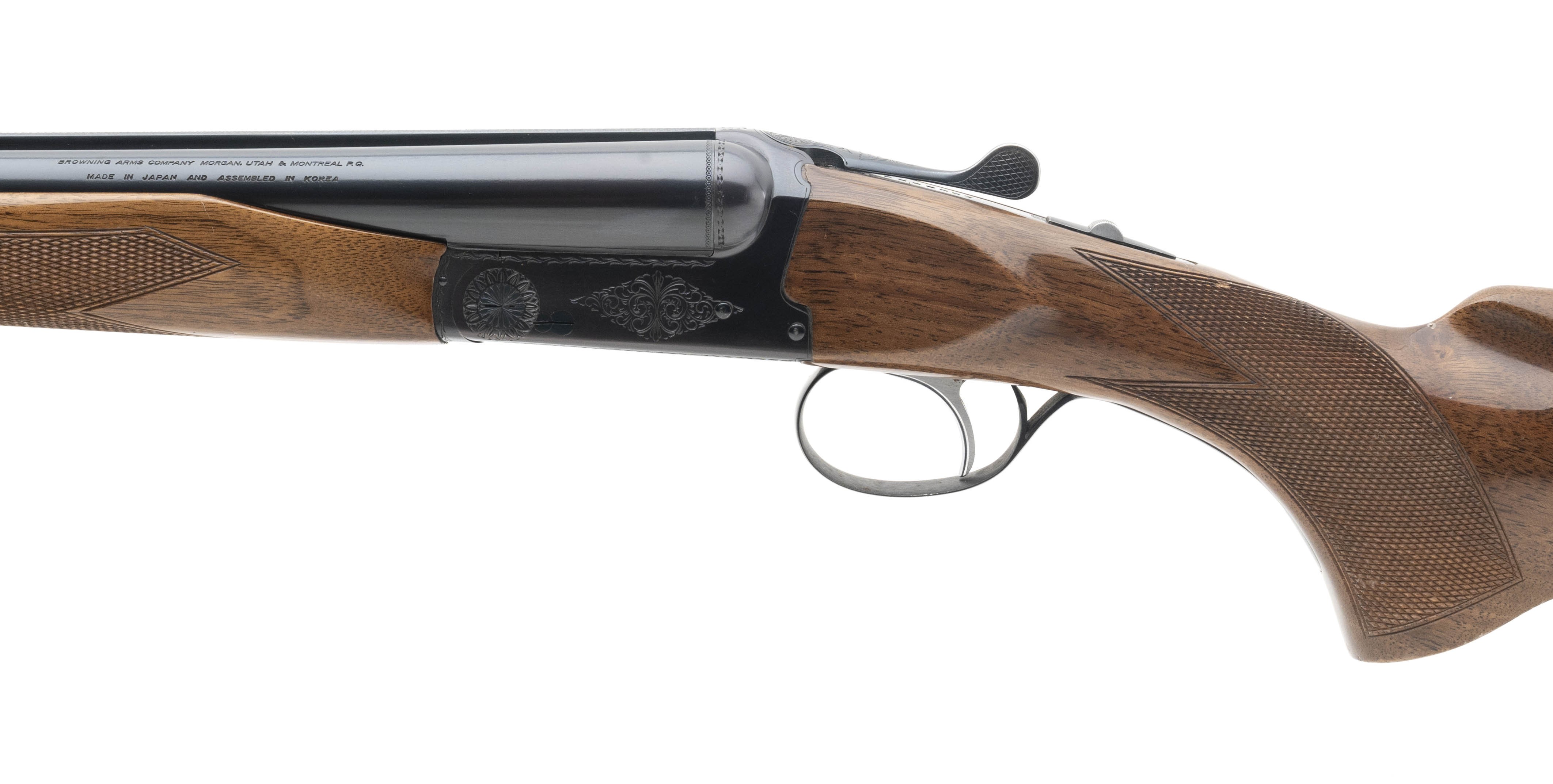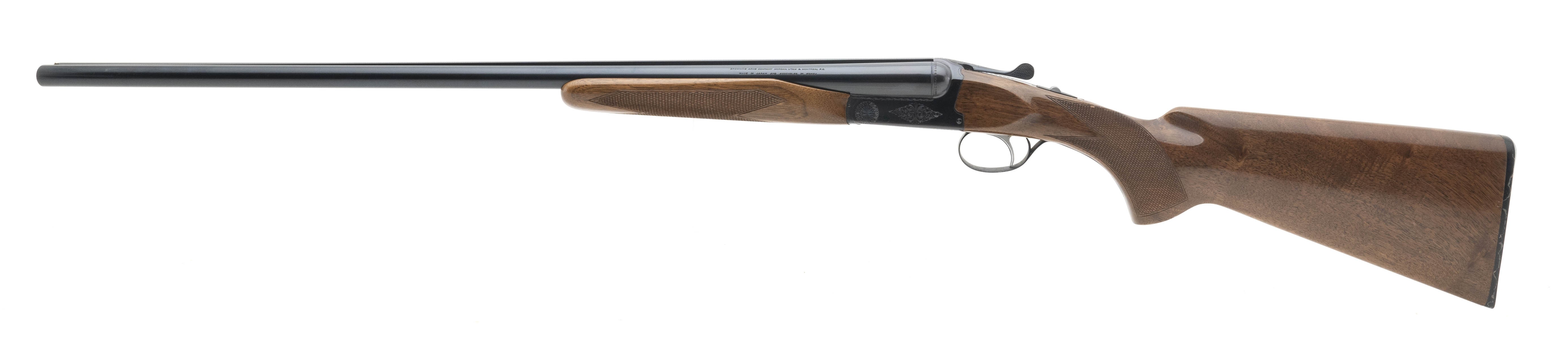 SN: 6956B57. Circa 1980s. Desirable 20 gauge with a 28" barrel, bore is excellent. LOP is 14.25". Sporting side by side shotgun with blued barrel, engraved receiver and walnut stock. Overall condition is very good with hunting wear.