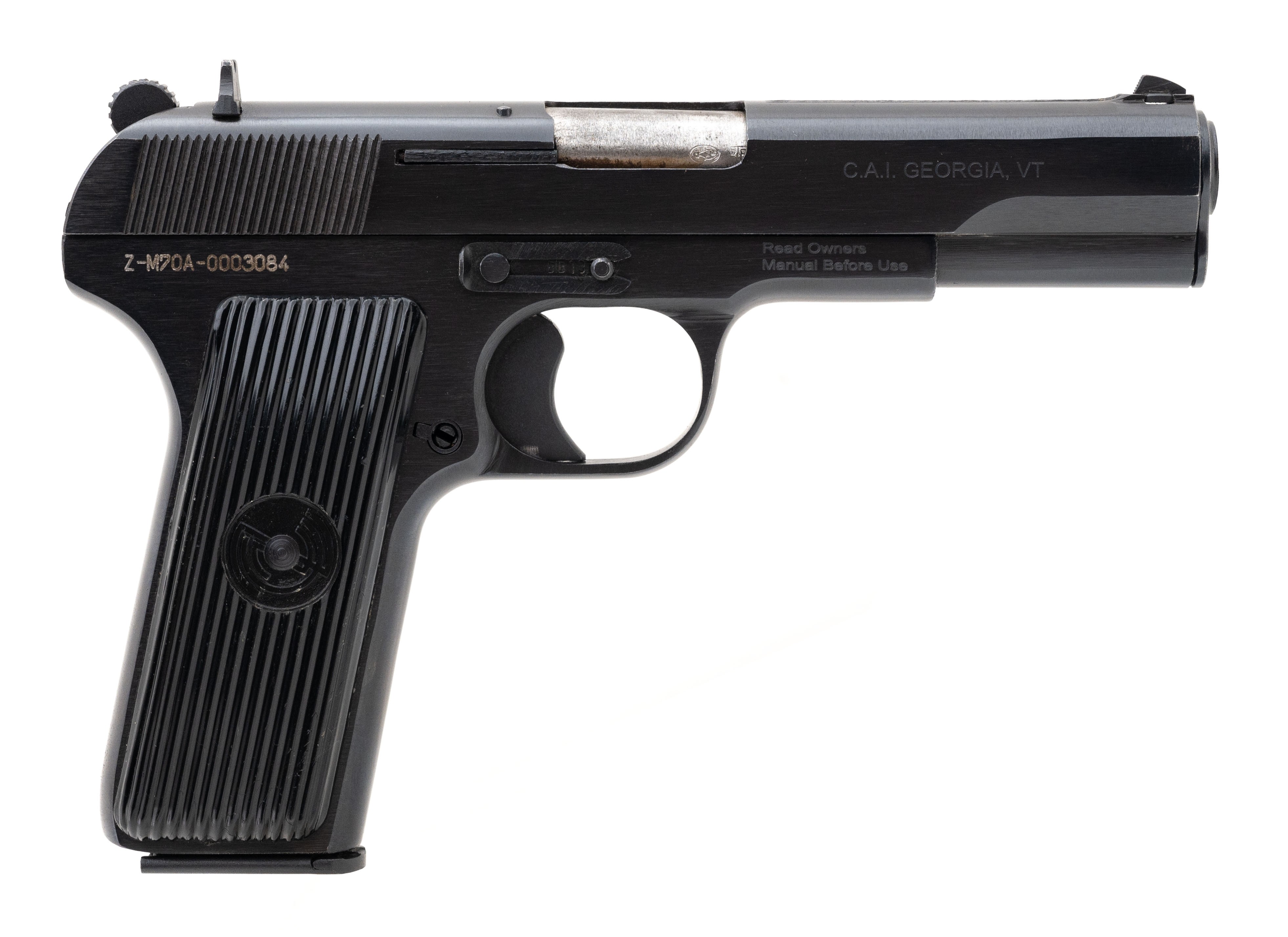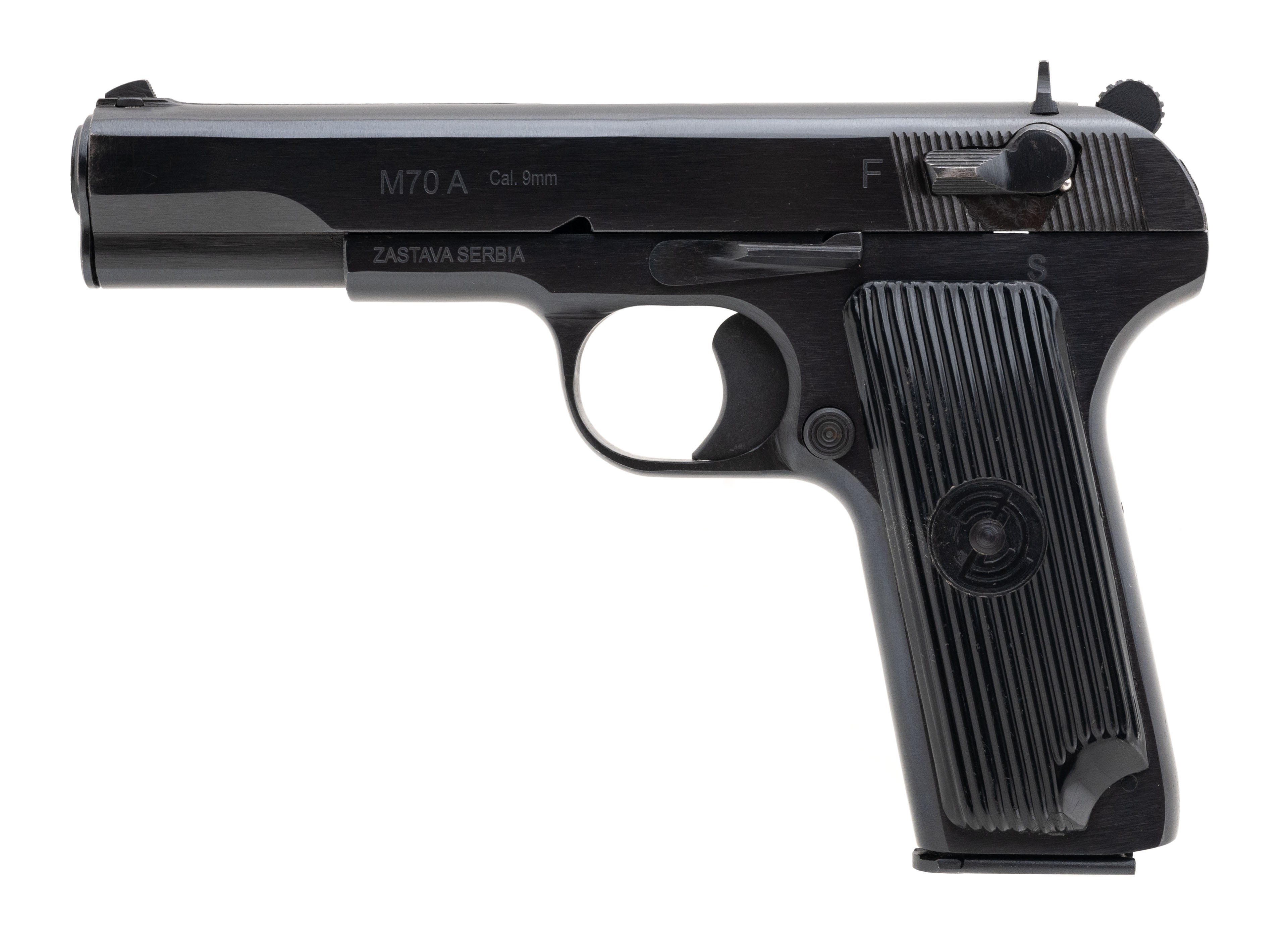 SN: Z-M70A-0003084. 9x19 parabellum with a 4.5 "barrel, bore is excellent. Yugoslavian semi automatic handgun modeled after the Tokarev, hammer fired, blade front and notch rear sights. Overall very good plus condition.