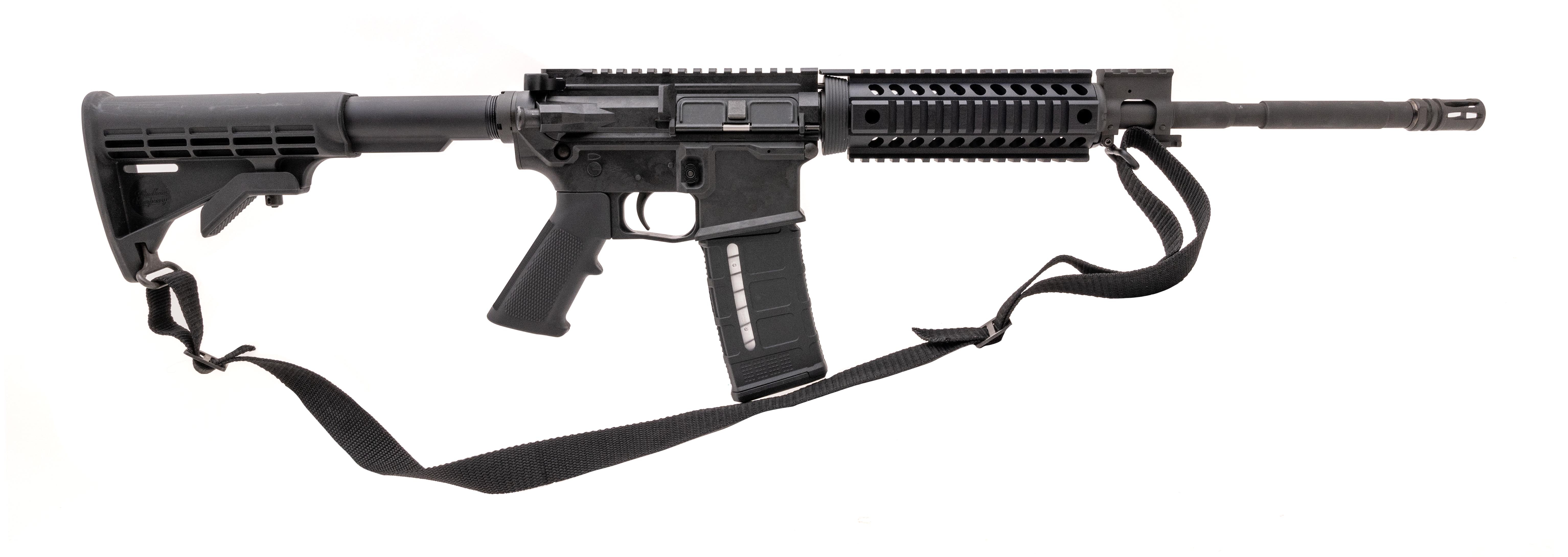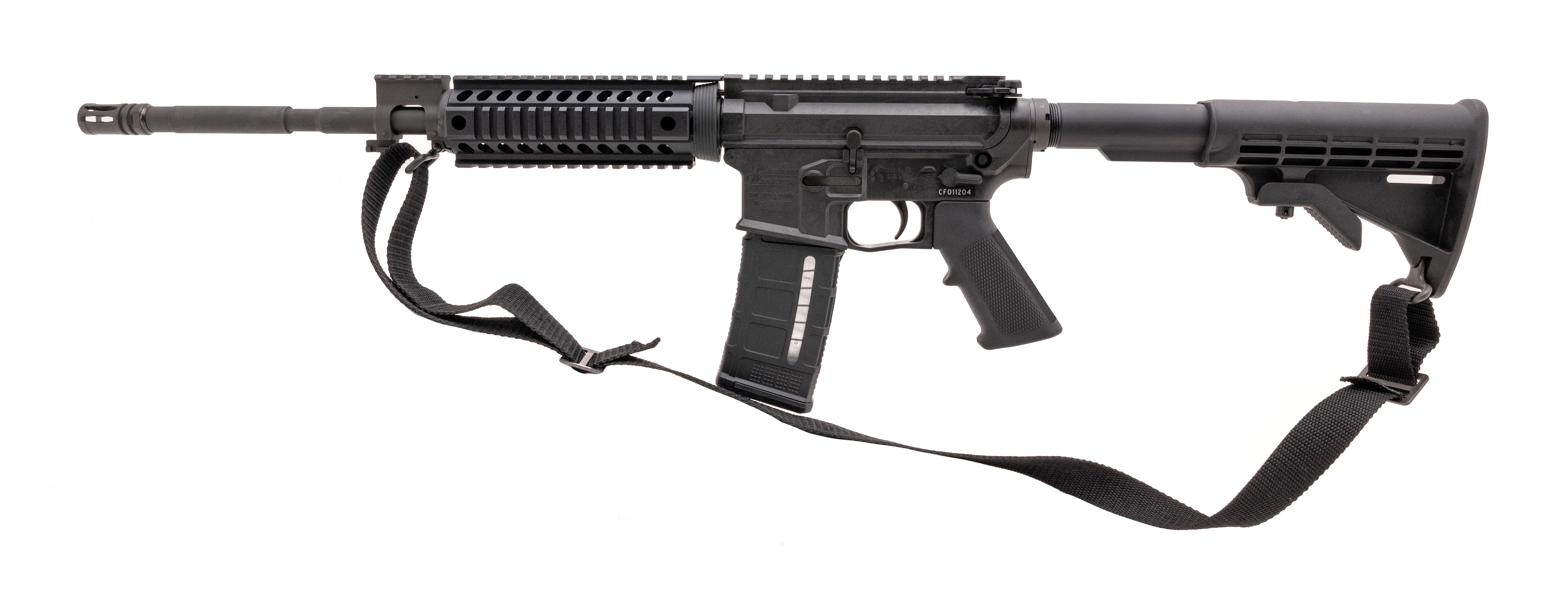 SN: CF011204. Modern production. 5.56 NATO with a 16" barrel, bore is excellent. Semi automatic rifle with carbon fiber upper/lower, picatinny quad rail handguard and A2 furniture. Overall in excellent condition. Comes with sling.