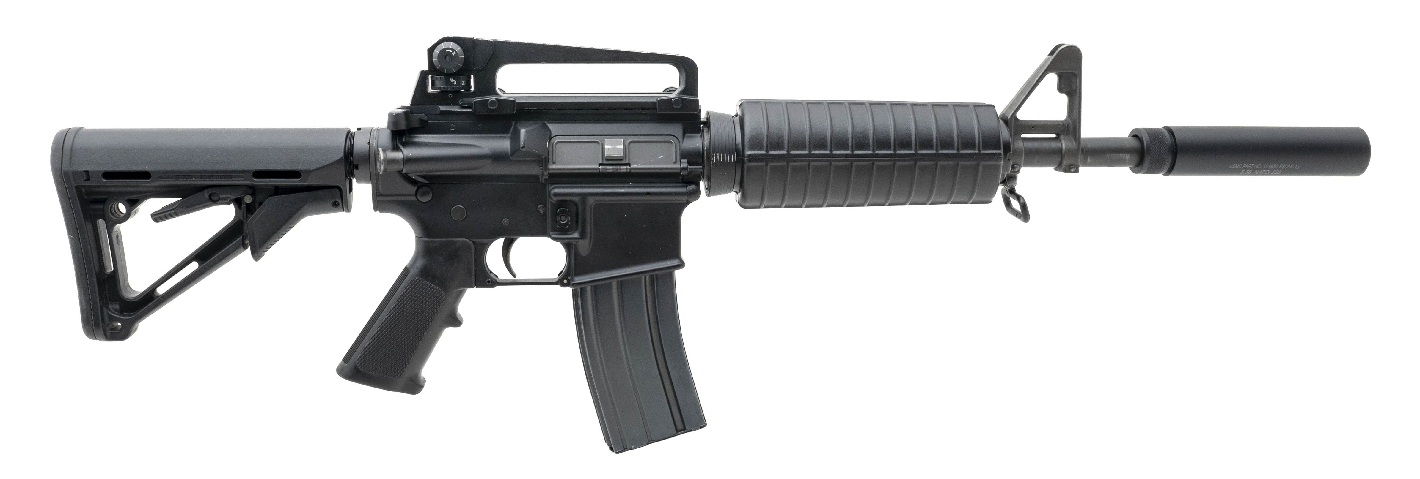 SN: CJC021733. Manufactured in 2008, .223 Rem with a 16" barrel. Bore is excellent. Post-war threaded heavy barrel competition model with A2 front sight, A2 grip, carry handle sight, Magpul CTR stock and Gun Tec AR-15 slip over fake suppressor. Overall excellent condition.