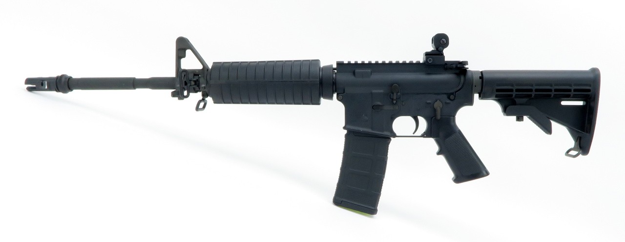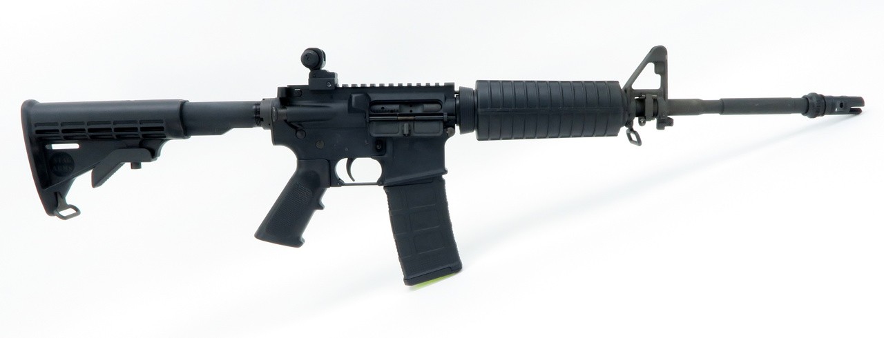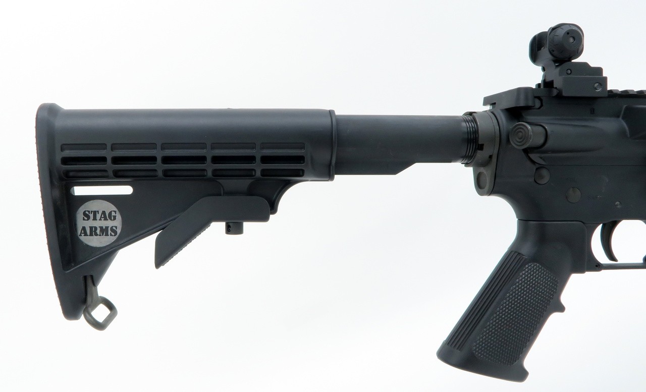 Stag Arms Stag-15 5.56mm caliber rifle. 16” model with fixed front sight and AAC flash hider.