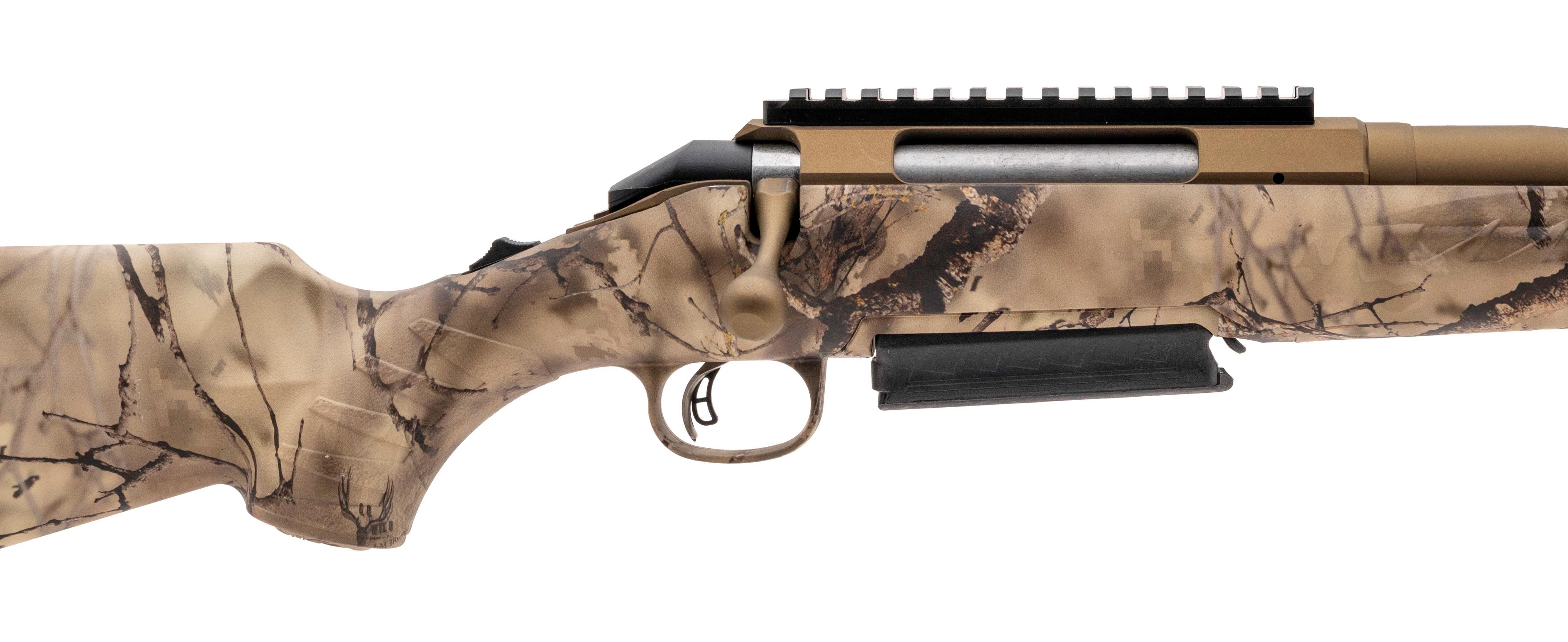Bolt action rifle with a 24" bronze cerakote barrel, threaded muzzle brake, adjustable trigger and GoWild camo synthetic stock. NEW. UPC: 736676269297.