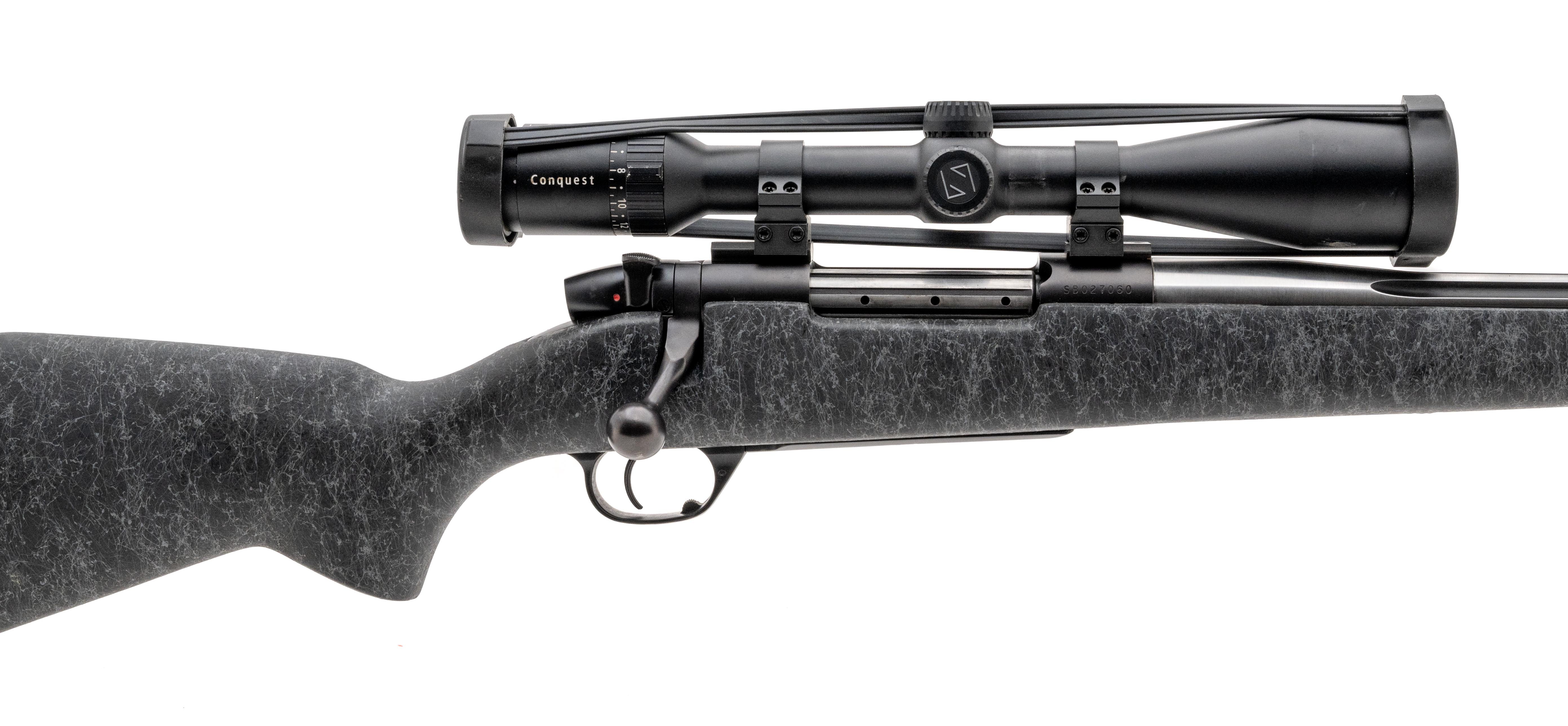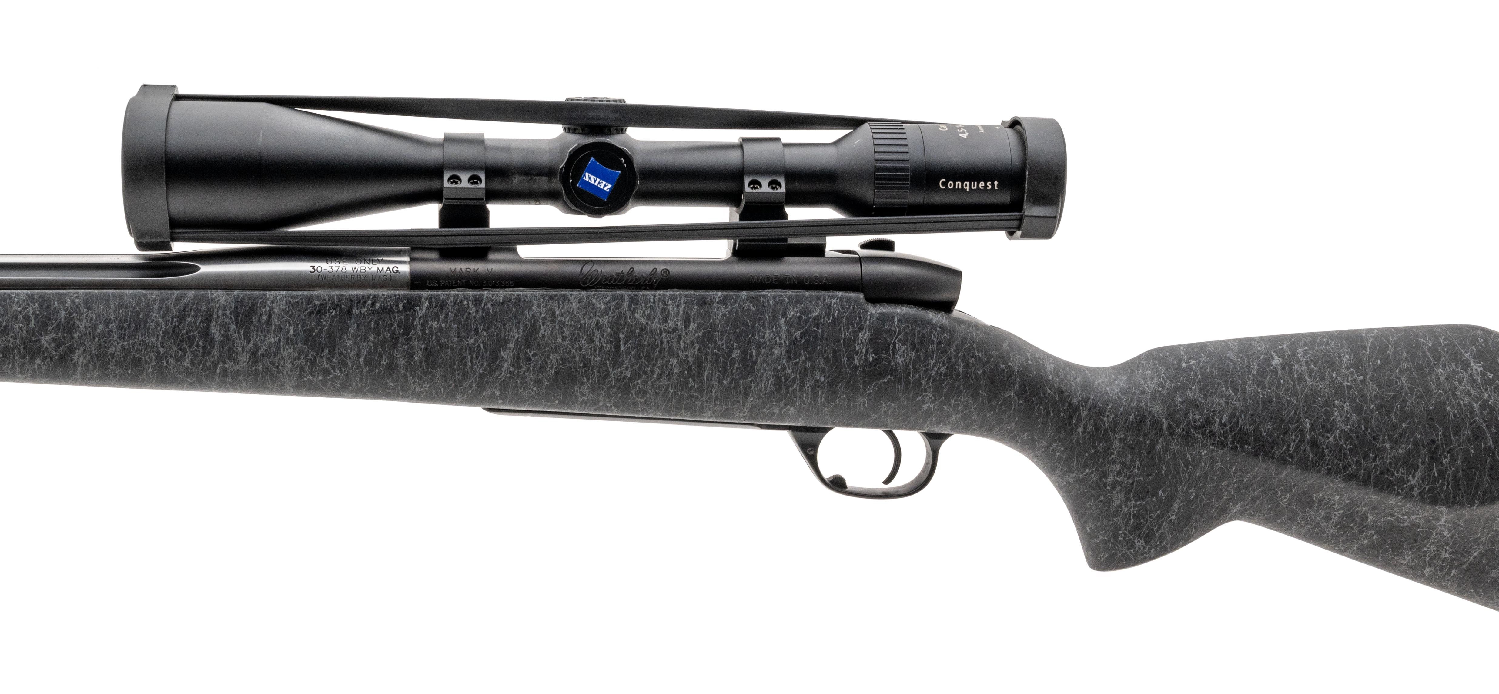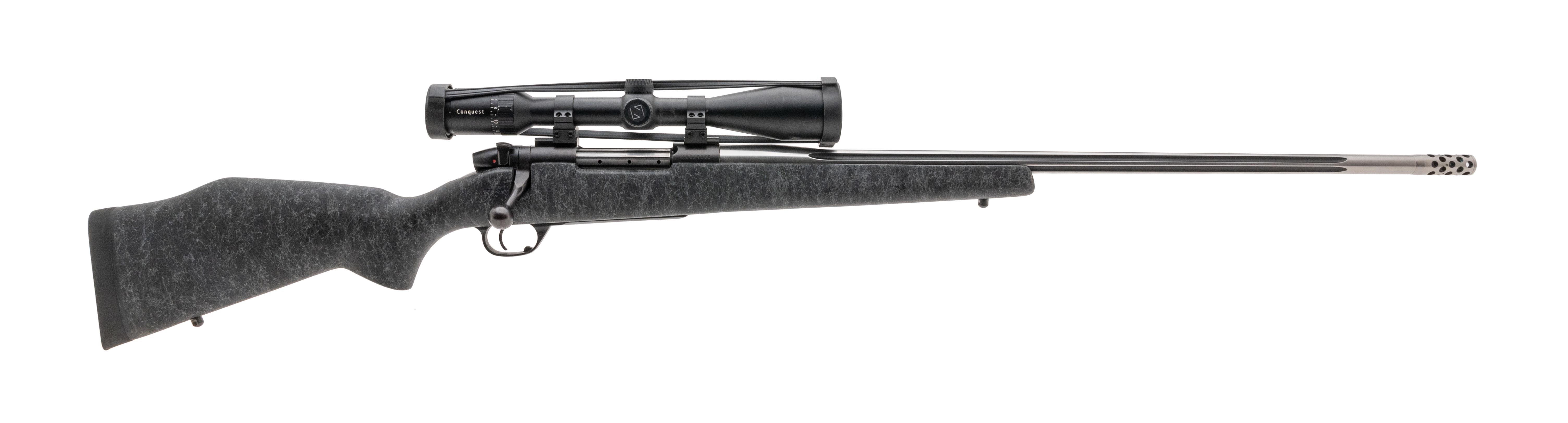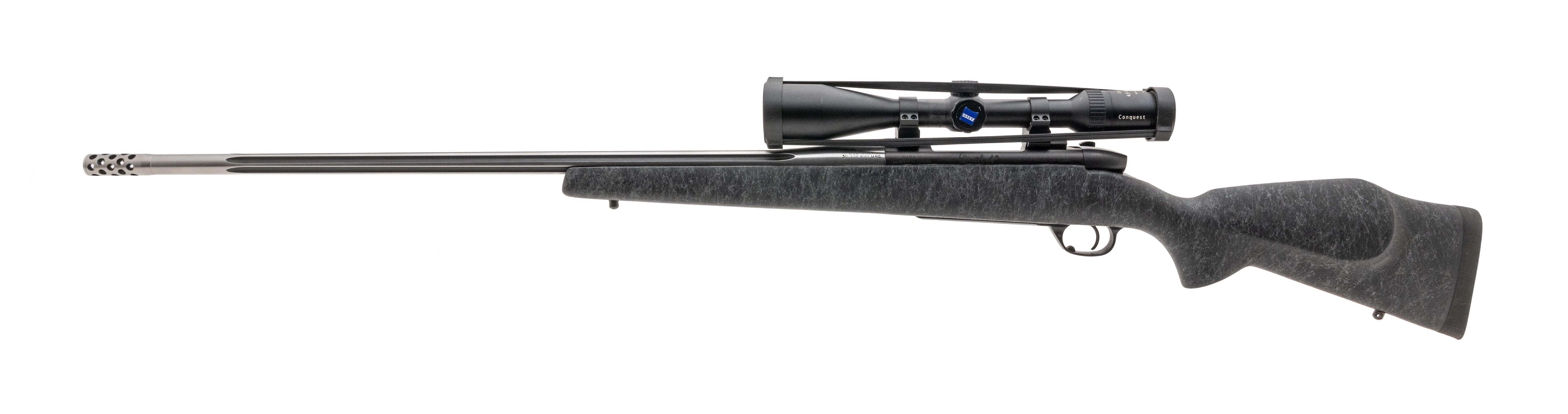 SN: SB027060. Modern production. Chambered in 30-378 Weatherby Magnum with a 26" barrel, bore is excellent. Bolt action rifle two tone fluted barrel, monte carlo fiberglass stock with mattegel coat and spiderweb patterns. Overall excellent condition. Comes with Zeiss Conquest 4.5-14x44mm riflescope.