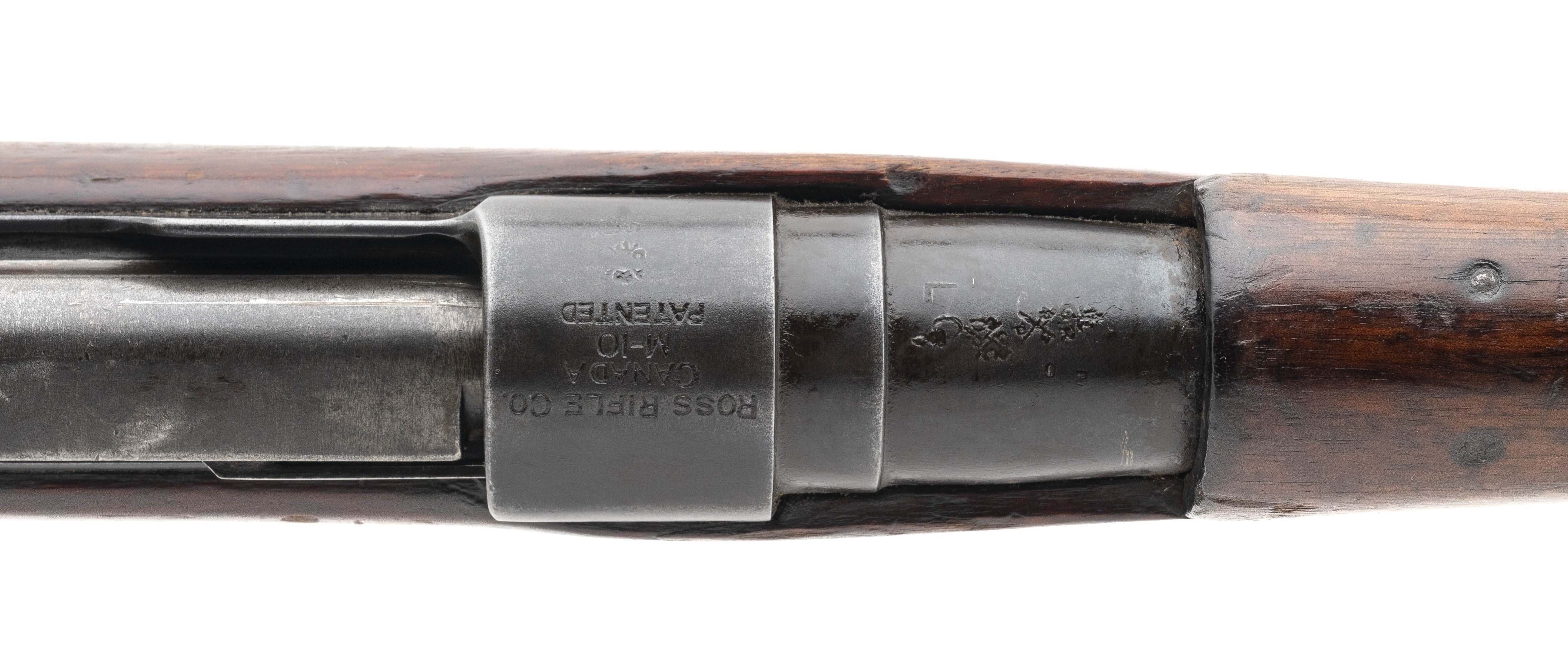 NSN, made 1914-1916, .303 British, 30.5" round barrel. Receiver is marked "Ross Rifle Co./Canada/M-10/Patented" Bore is bright with strong rifling noted. Stock has expected nicks, dings and scratches visible. Cartouches are present right side butt stock. Action is smooth and functions correctly.
