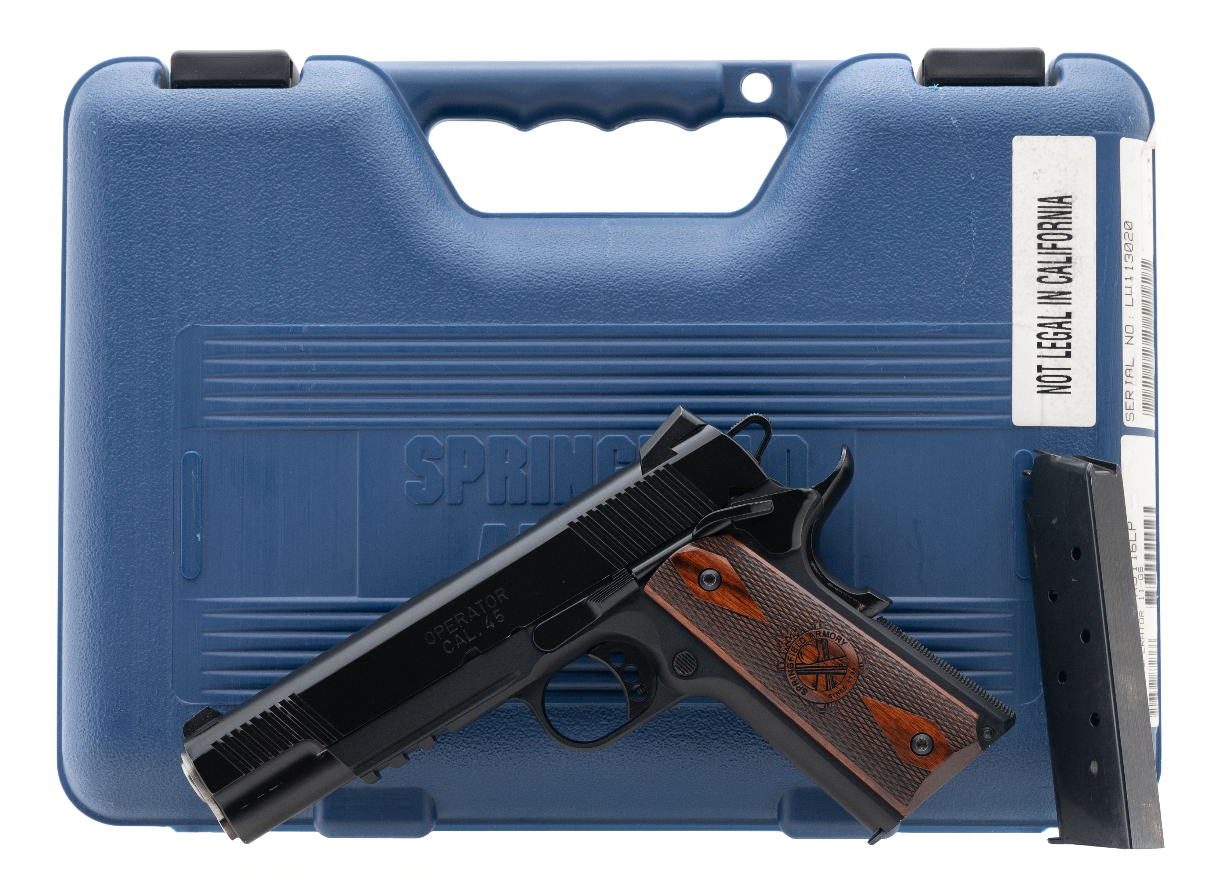 SN: LW113020. Modern production, .45ACP with a 5" barrel. Bore is excellent. Full size 1911 with accessory rail, night sights and full length guide rod. Overall excellent condition. Comes with box, holster and 1 extra magazines.