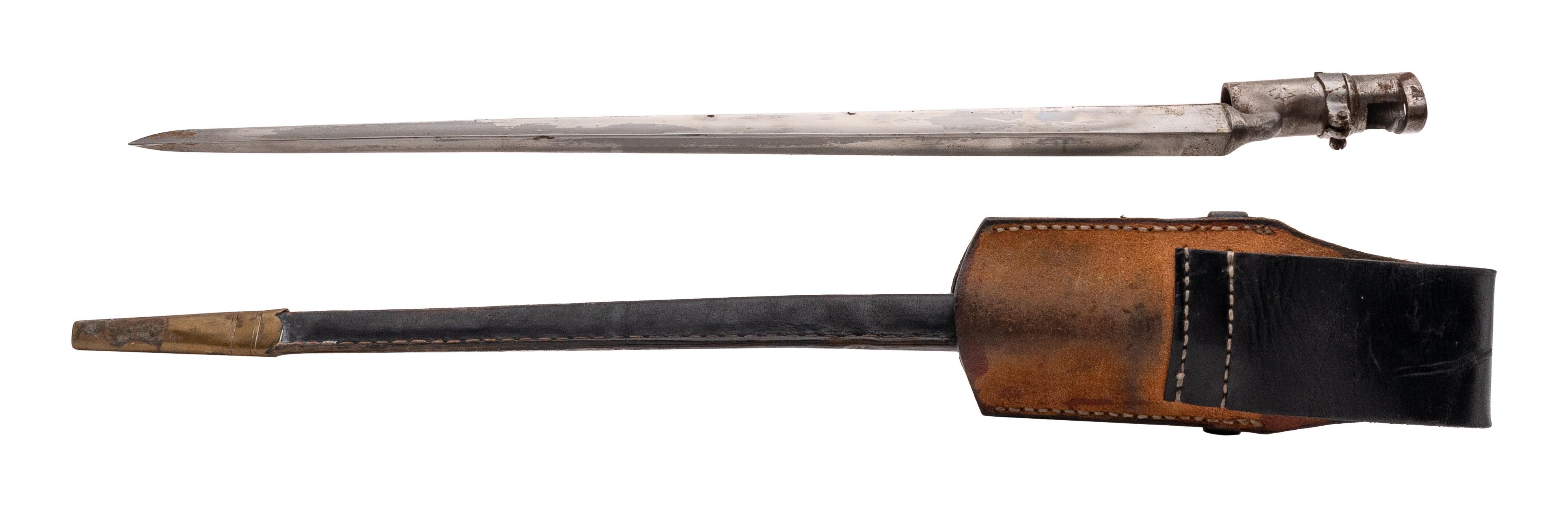 British Patern 1853 Socket Bayonet with 17" unmarked blade. Original scabbard in good condition.
