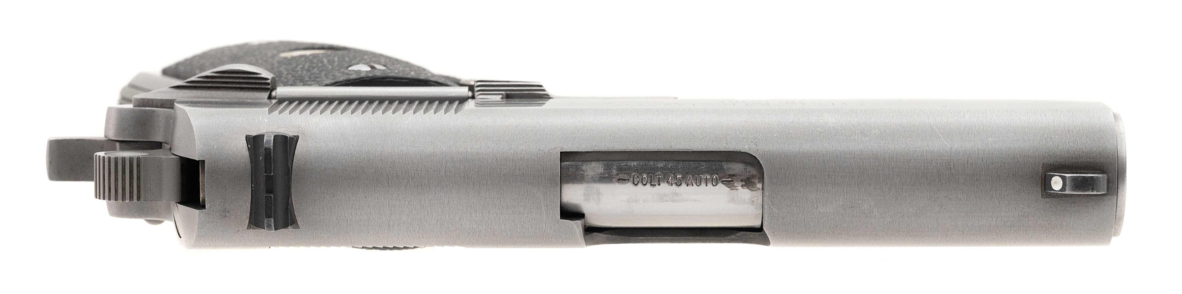 SN: SF40135. Manufactured in 1991. 45 ACP with a 3.5" barrel. Bore is excellent. Stainless steel single action officer's pistol, with commander style hammer and wrap around Colt grips. Overall excellent condition.