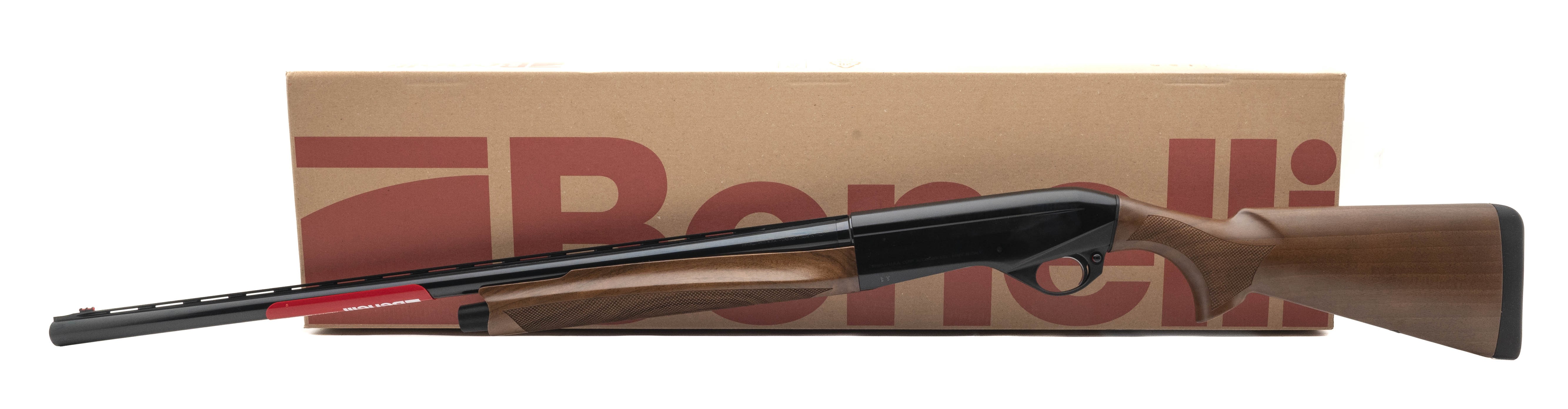 Semi automatic shotgun with a 28" barrel, glossy blue finish, vent rib, fiber optic front sight and a walnut stock. NEW. UPC: 650350108828.