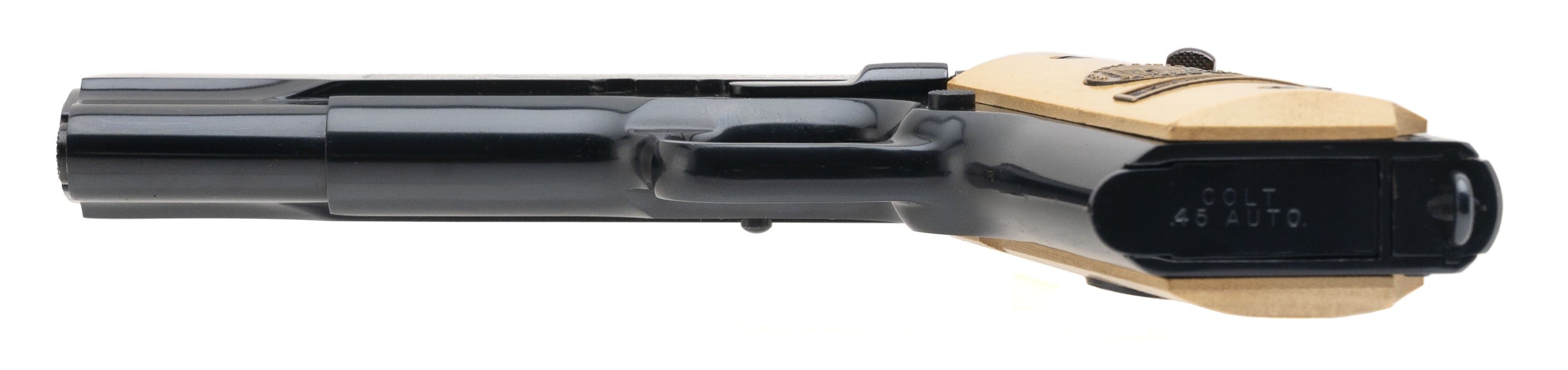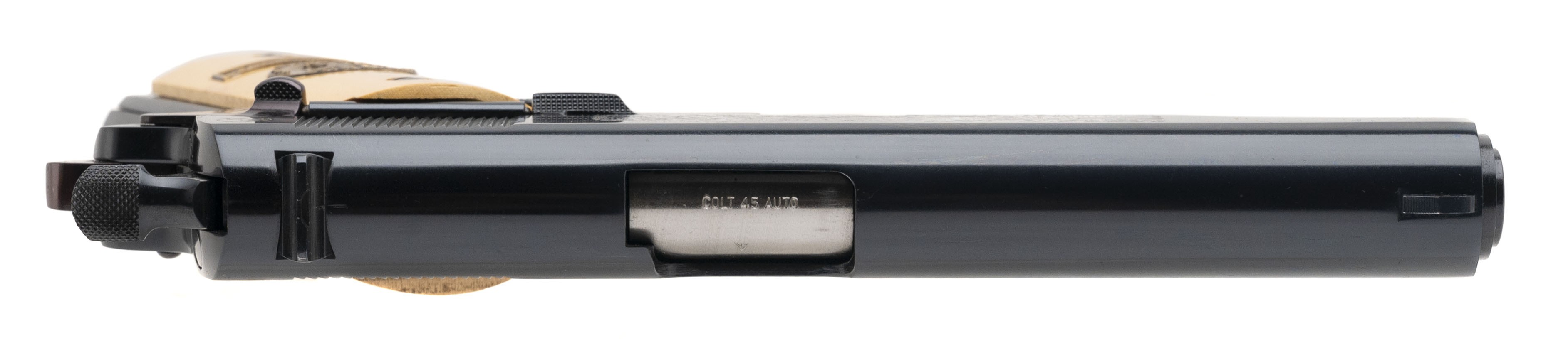 SN: 2280-M2. Made in 1968, .45 ACP with a 5" barrel. WWI commemorative 1911 pistol in excellent condition. Comes in a custom presentation case.