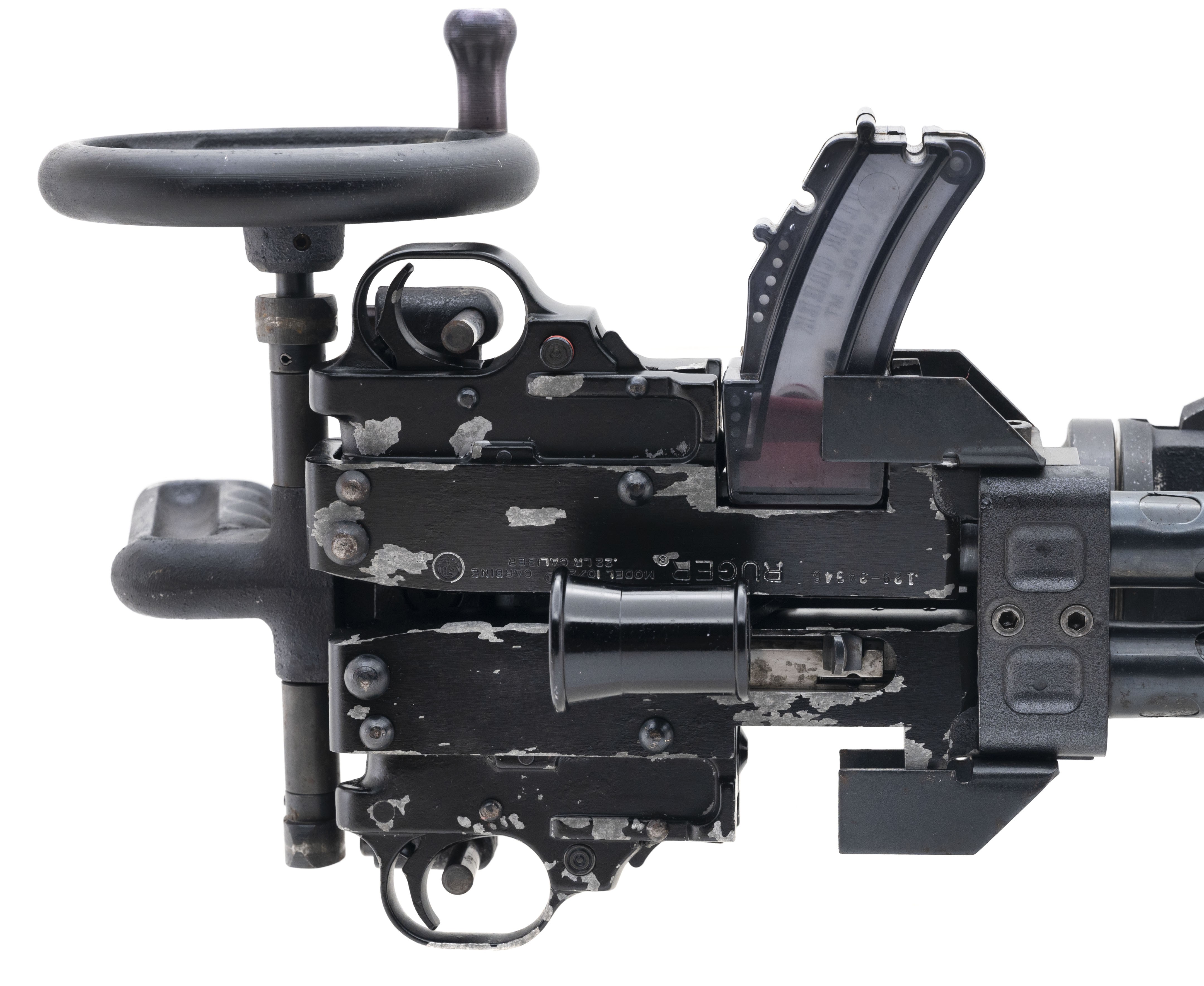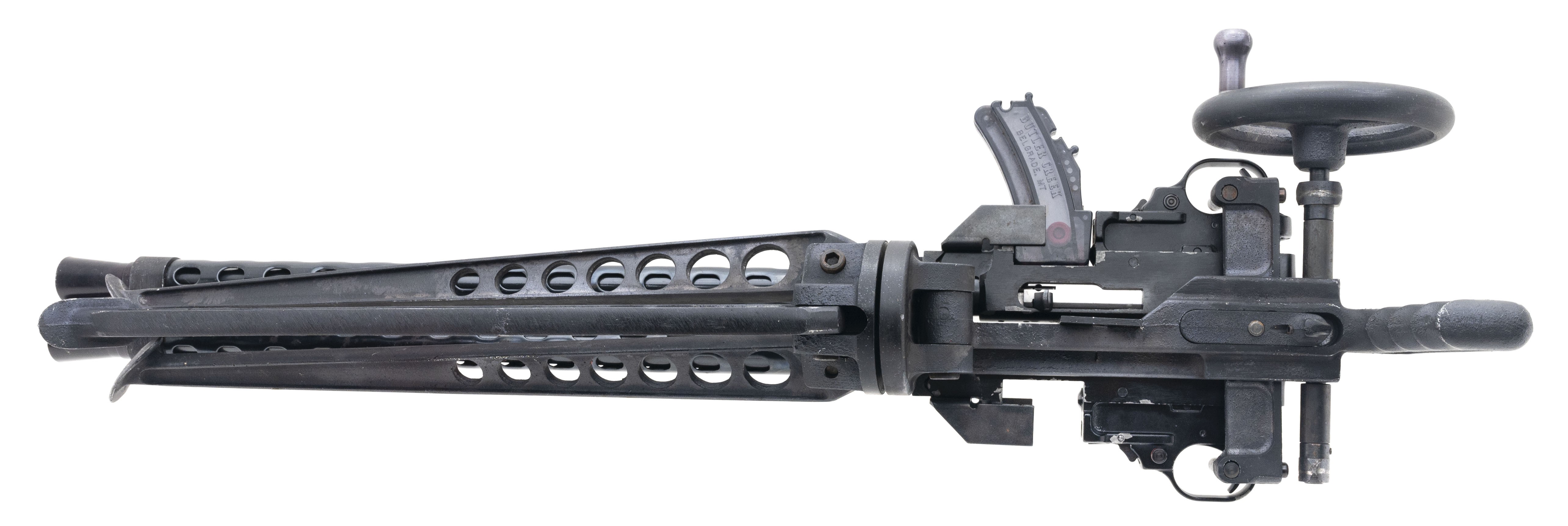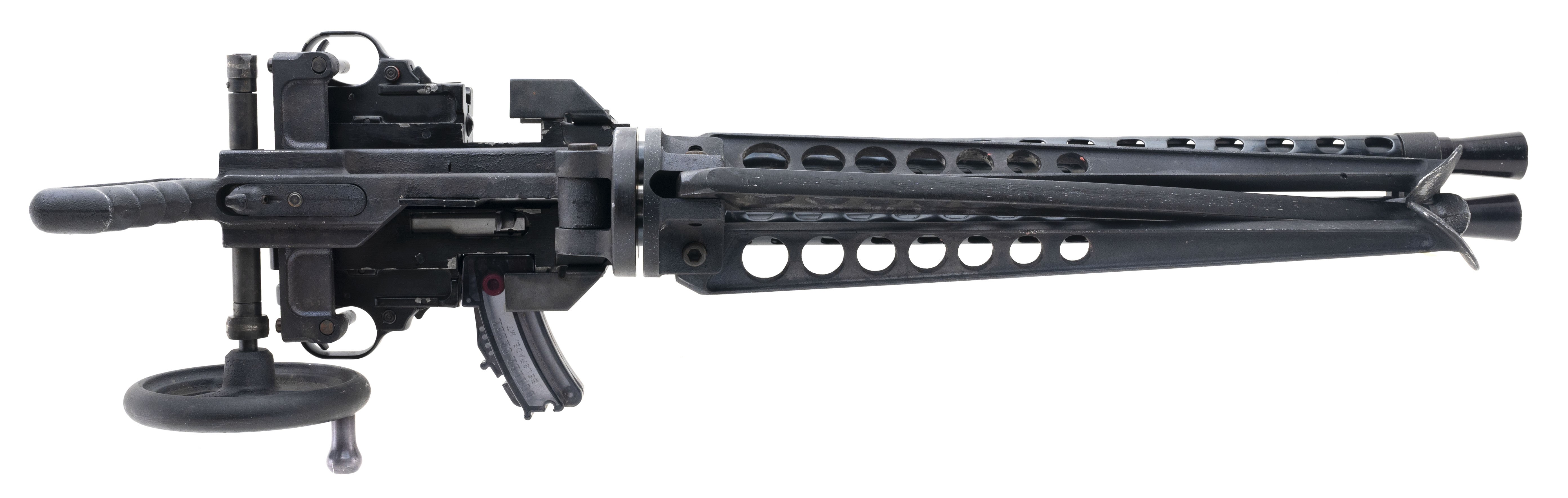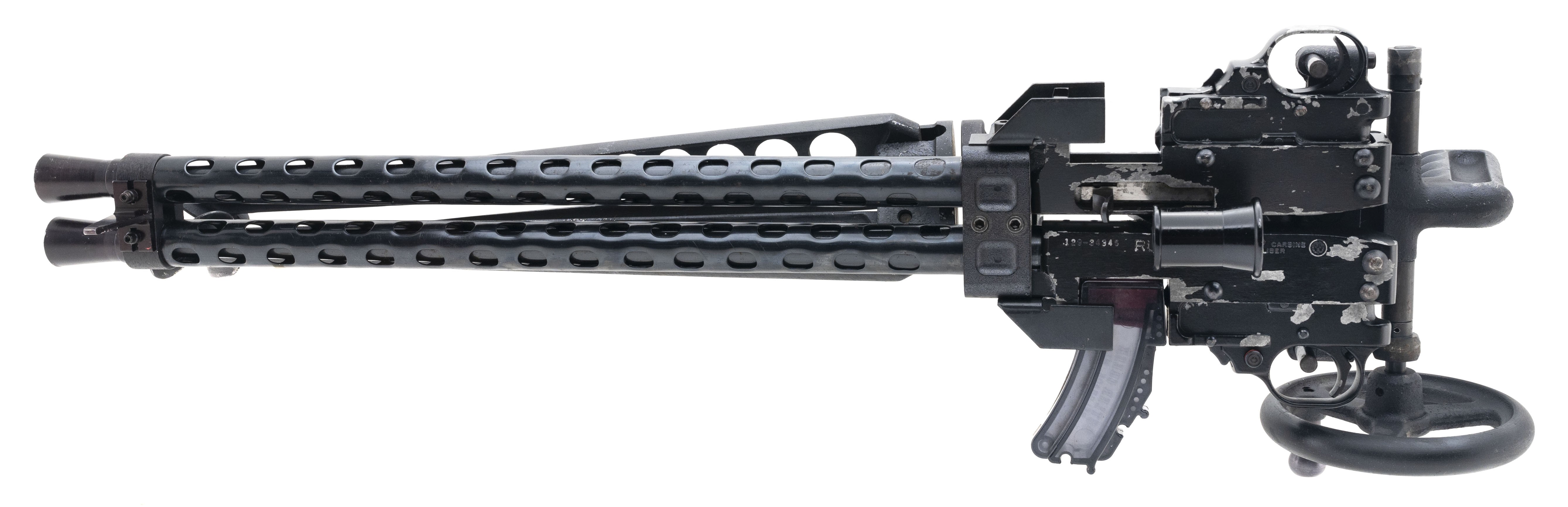 SN:129-35702/129-34346, Modern production. .22 long rifle with 20" barrels. Bores are in excellent condition. Gatling gun with bipod, heat shield barrels. Overall condition is good.