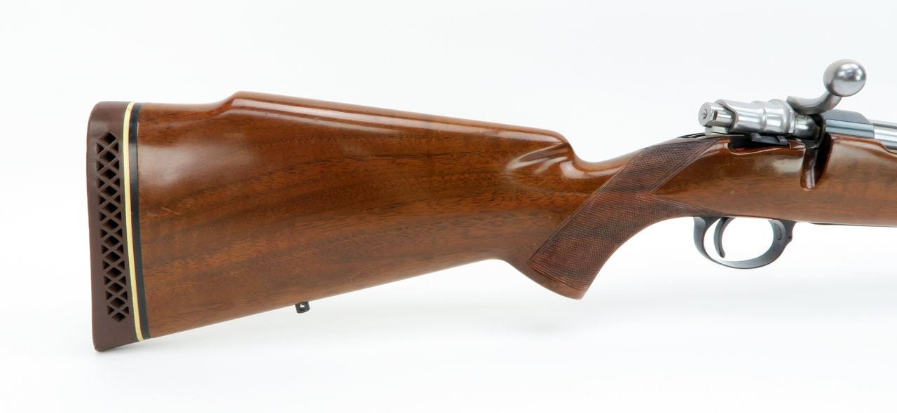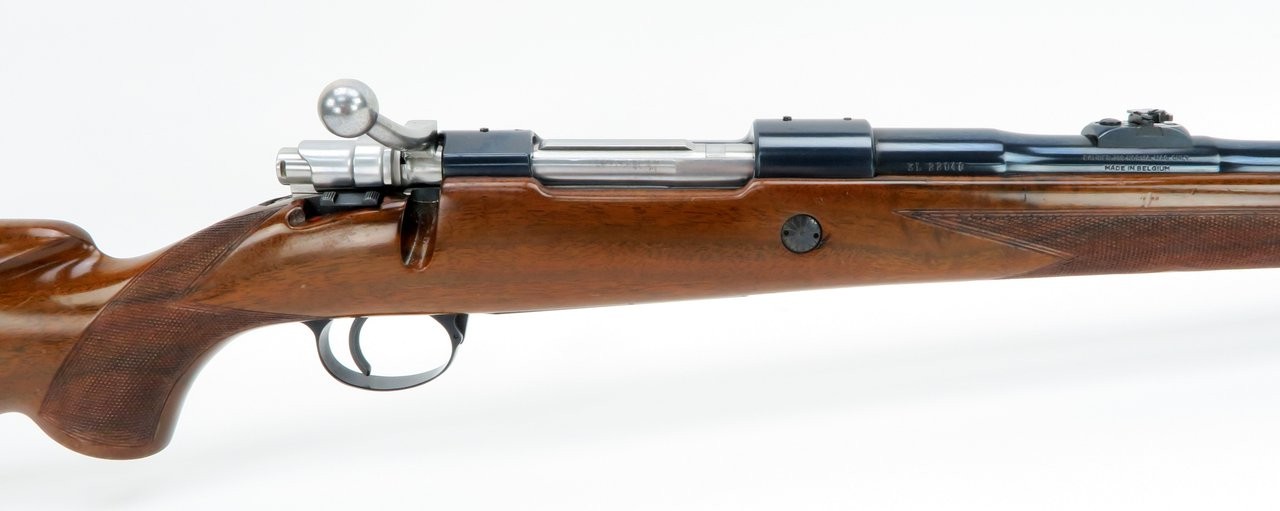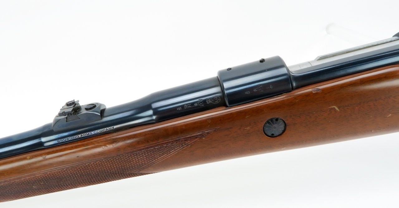 Browning Safari .308 Norma Magnum caliber rifle. Belgian made rifle with long extractor action, in scarce .308 Norma magnum caliber. Shows light wear, overall near excellent condition.