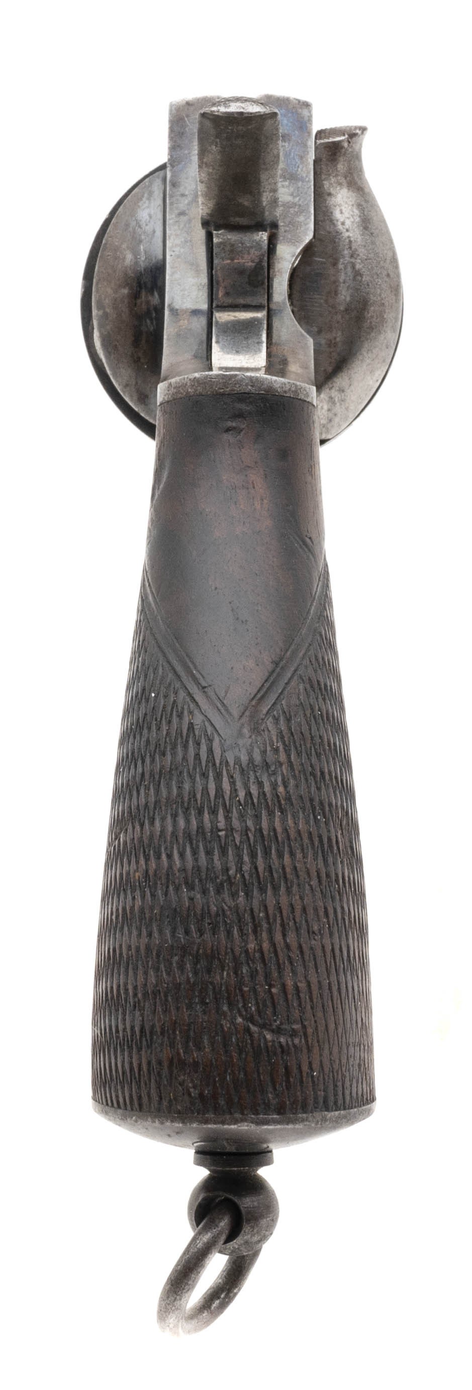 Serial No. 90259, circa 1880's-1890's, .450 Boxer, 2.5" round barrel. Top of the frame is marked "P Webley & Son/ London Birmingham" Left side of frame is marked "450/Webley/ Handcuffed hands/MP/90259" Right side is marked "Police-768" lower frame. 30% bright original blue remains, mostly on barrel and protected areas. Checkered brown grips are worn with light scratches visible. Bore is good with frosting visible in the grooves. DA, SA index correctly with tight lock up.