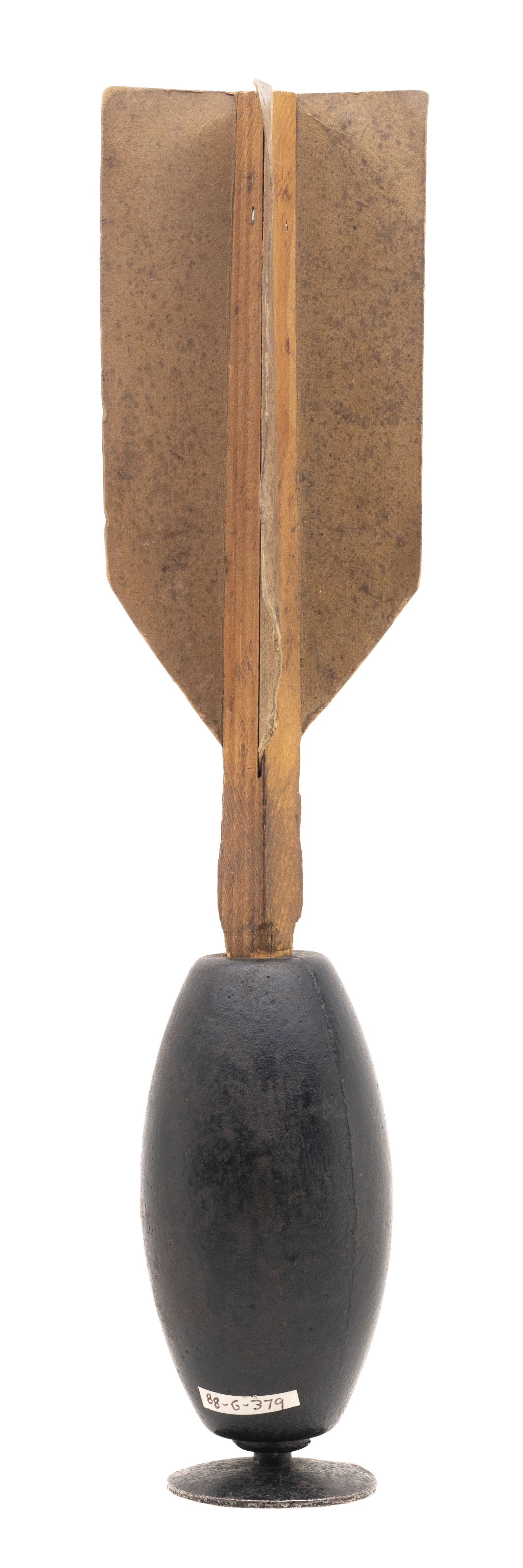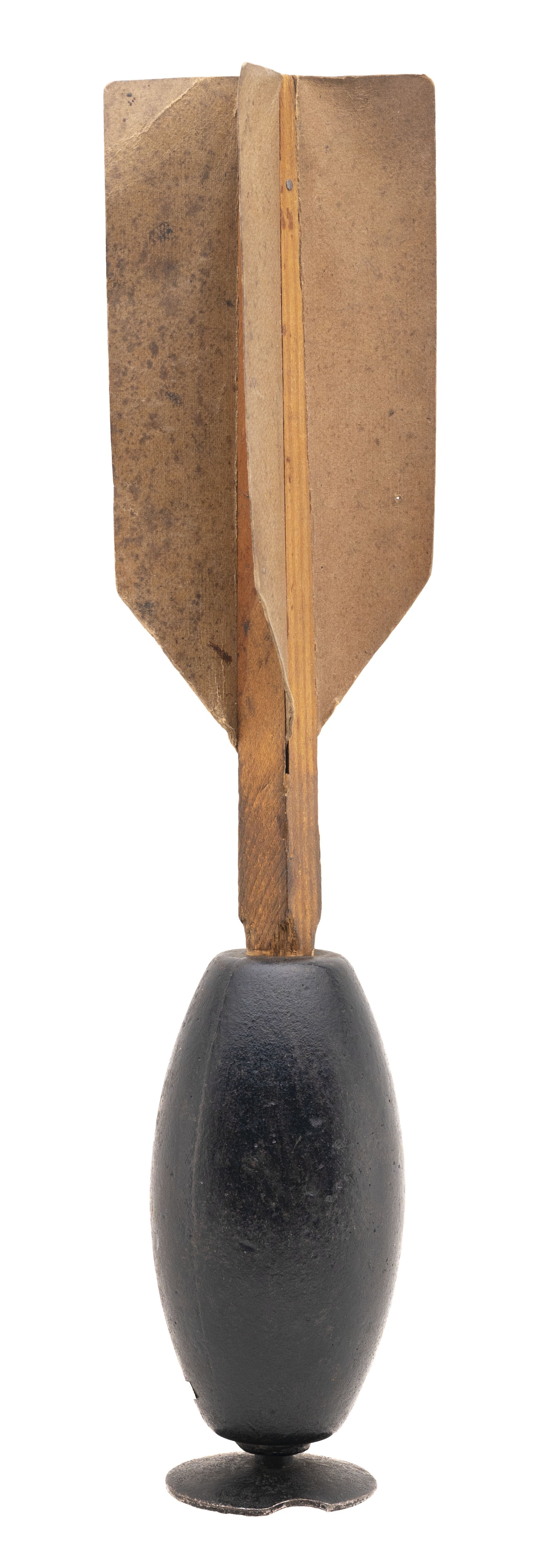 Inert original Ketchum hand grenade made circa 1860's. The Ketchum grenade was made in three different variants, this particular variant is a 3lb variant. The fletching is in very good condition. The plunger and grenade itself is in very good condition. This is an very good condition artifact from the American Civil War.