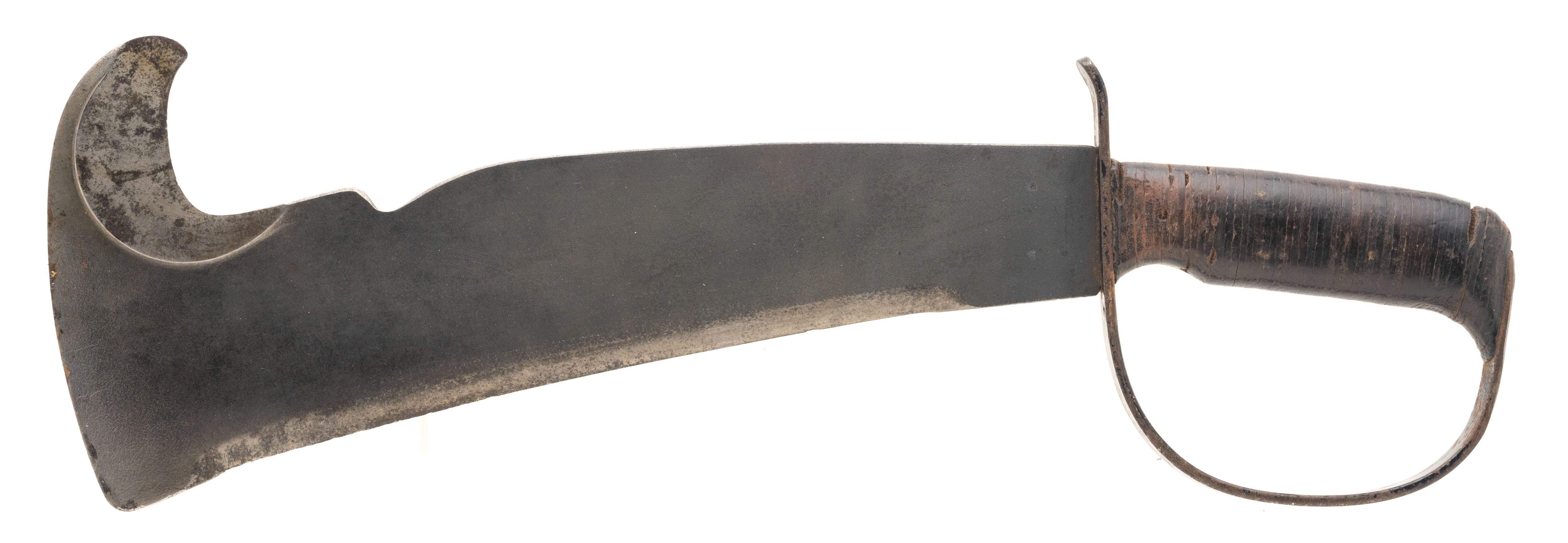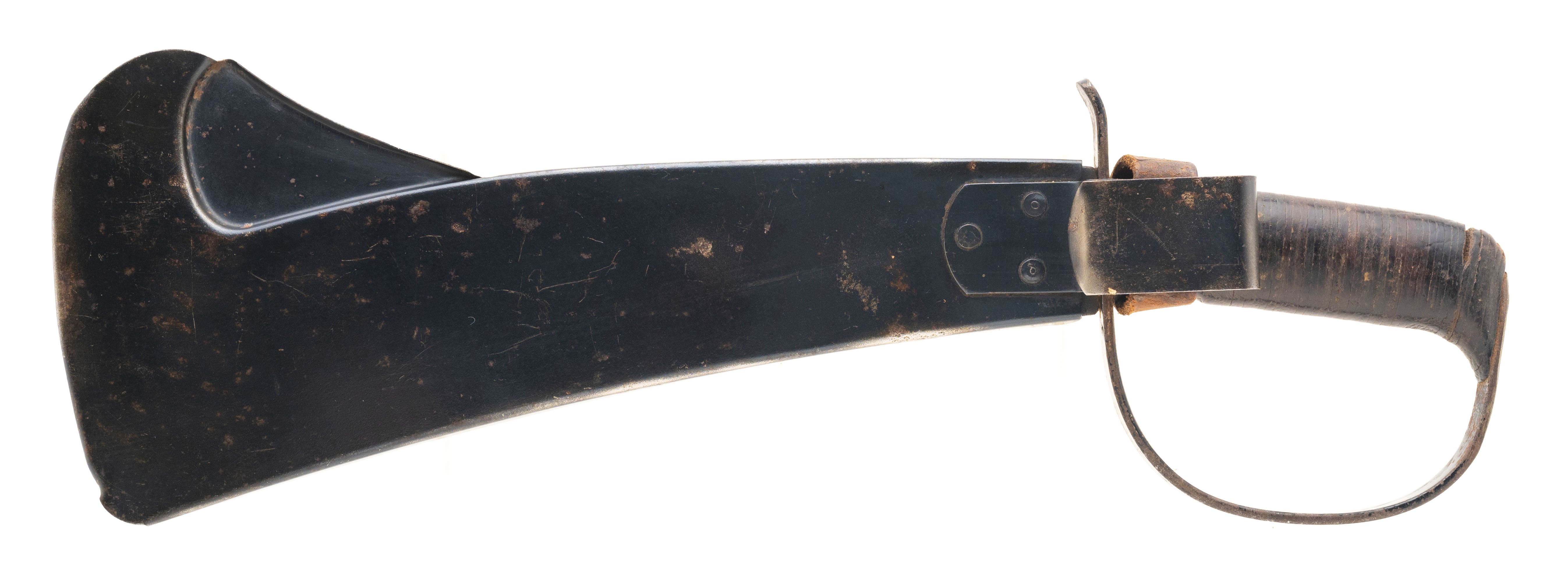 Survival axe with a 11.75" blade WWII Era. Has leather handle and metal hand guard. Overall condition is excellent. Comes in black metal sheath.