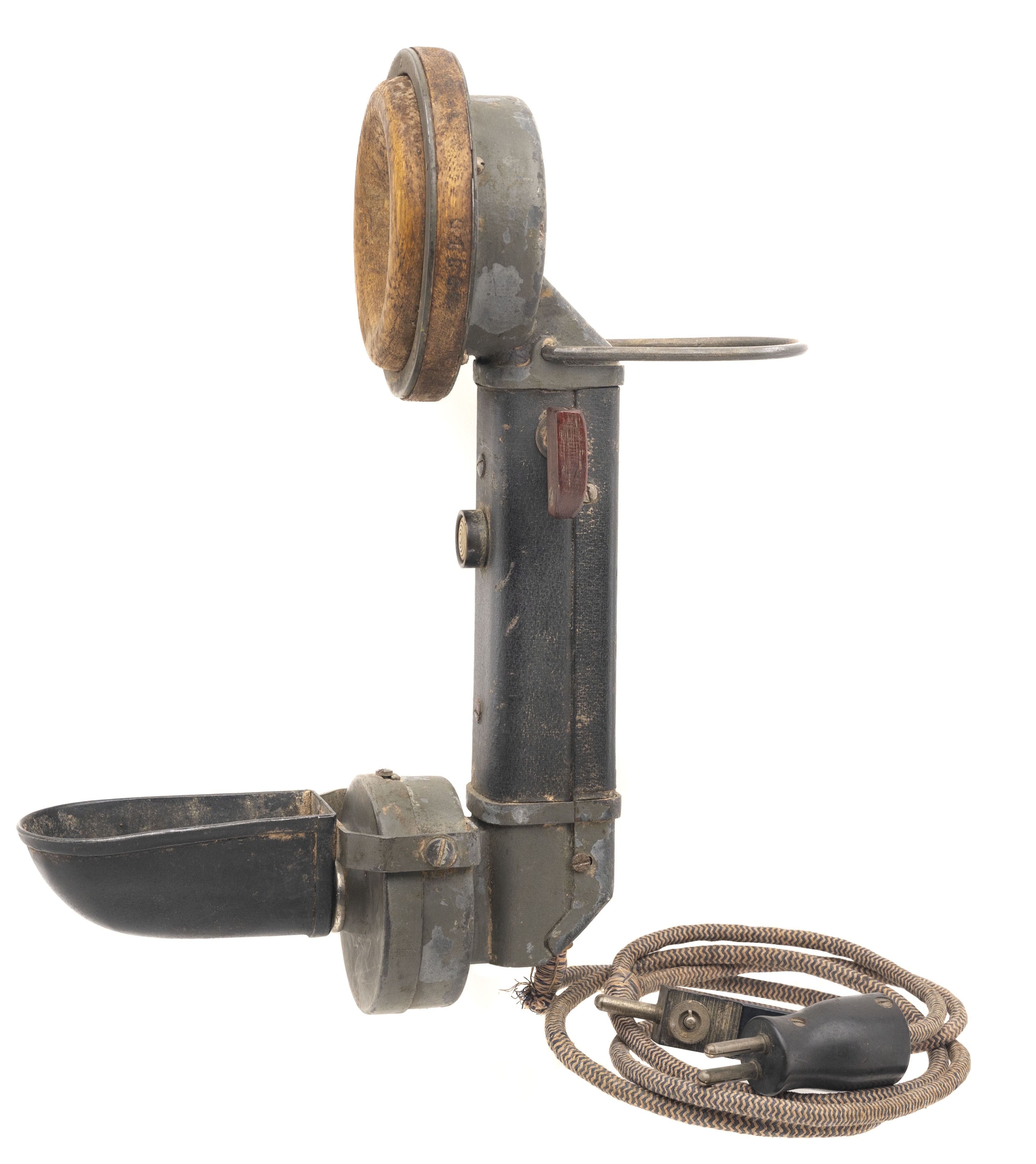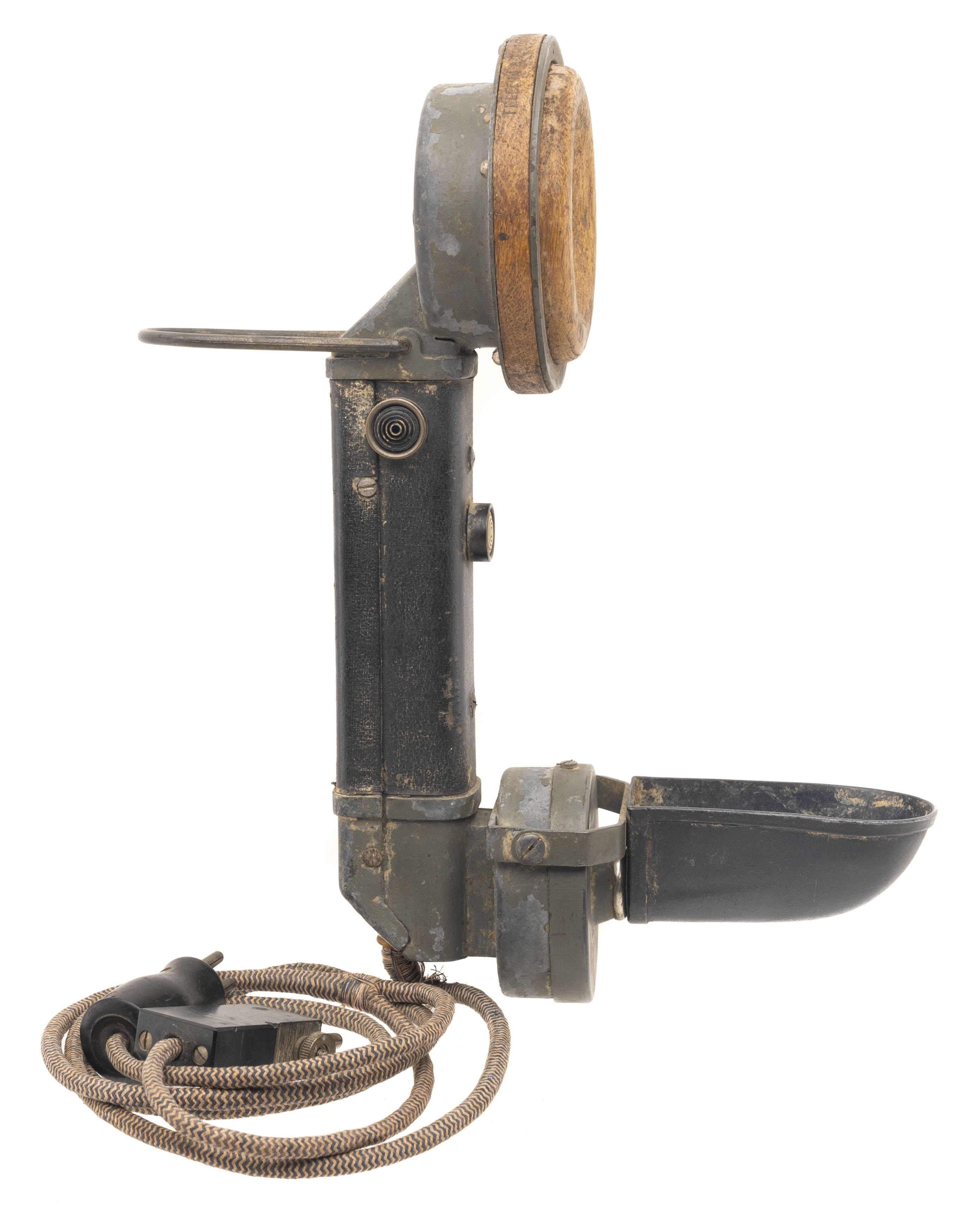 WWI German Trench Phone with wooden earpiece. Overall condition is very good.