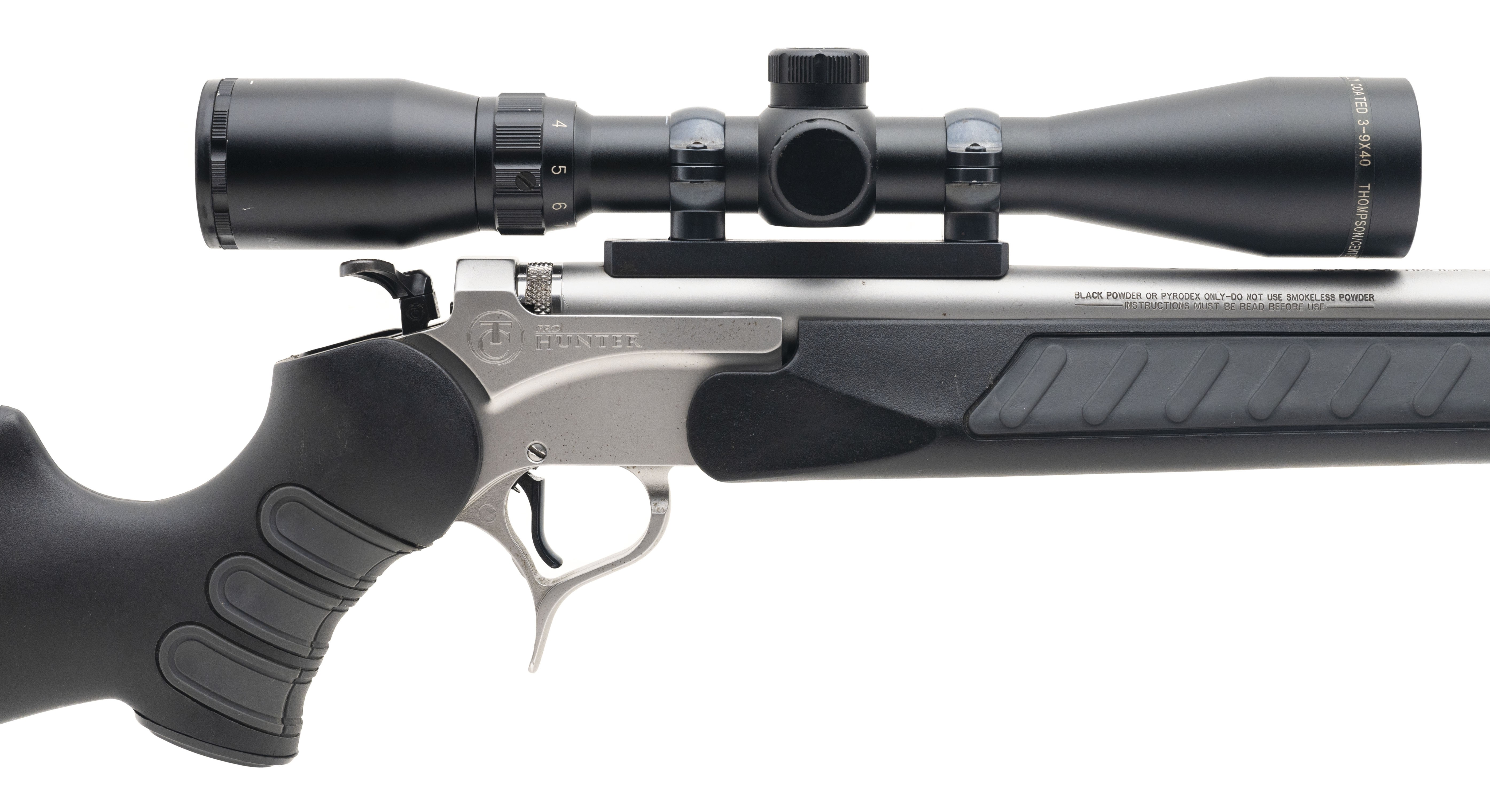 SN:570621. Modern production, .50 caliber, with a 26" barrel. Bore is excellent. Muzzleloading hunting rifle. Has fluted stainless steel barrel in very good plus condition. Stainless steel receiver is excellent. Composite stock and forend are very good plus with light handling wear. Overall in very good plus condition. Comes with TC 3-9x40 scope.