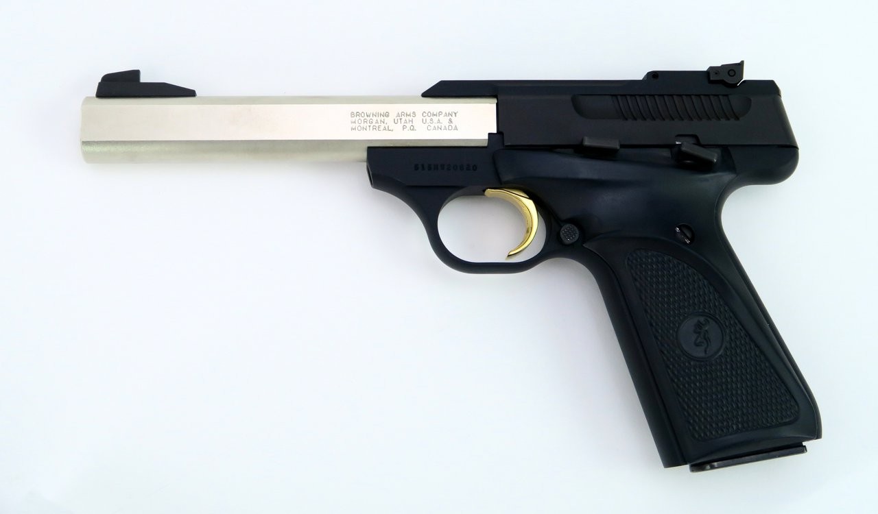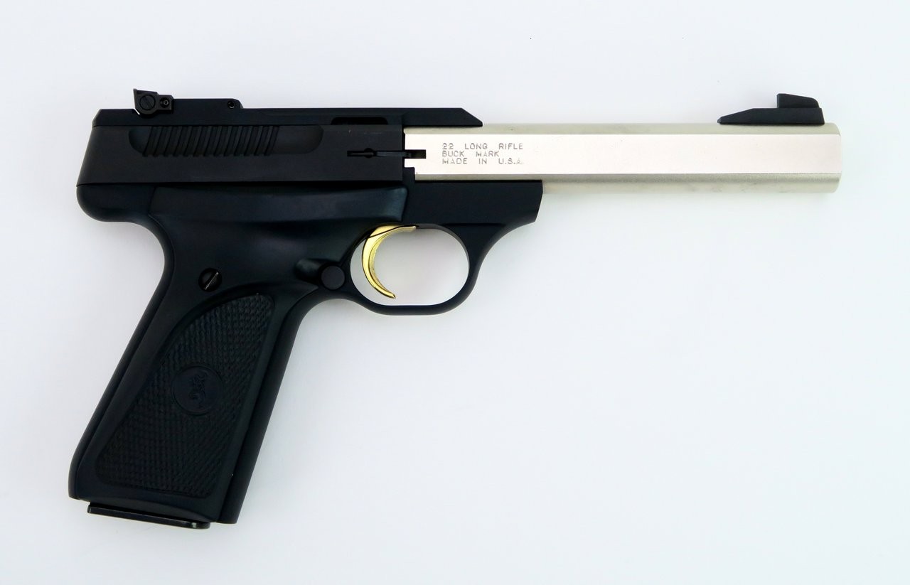 Browning Buckmark .22 LR caliber pistol. Semi-auto plinker with nickel finish. Excellent condition.