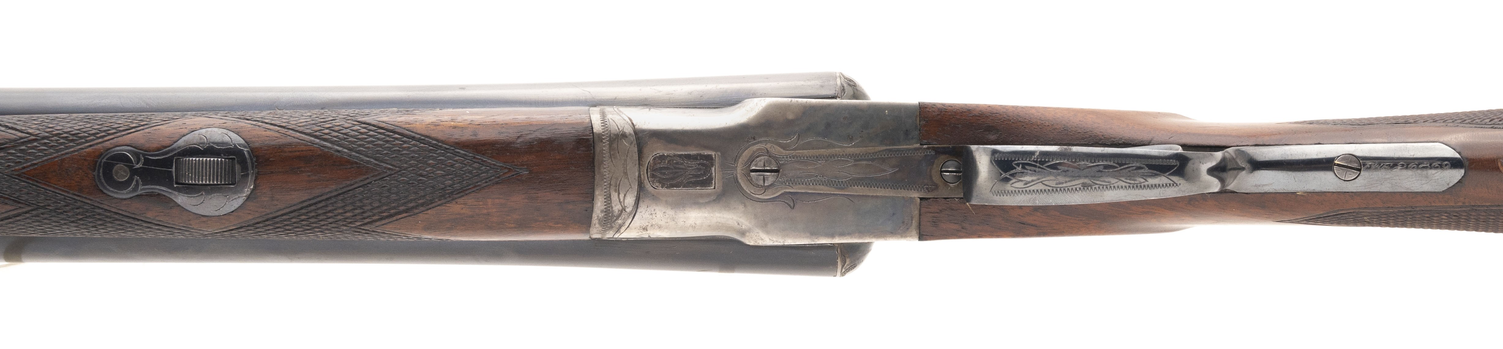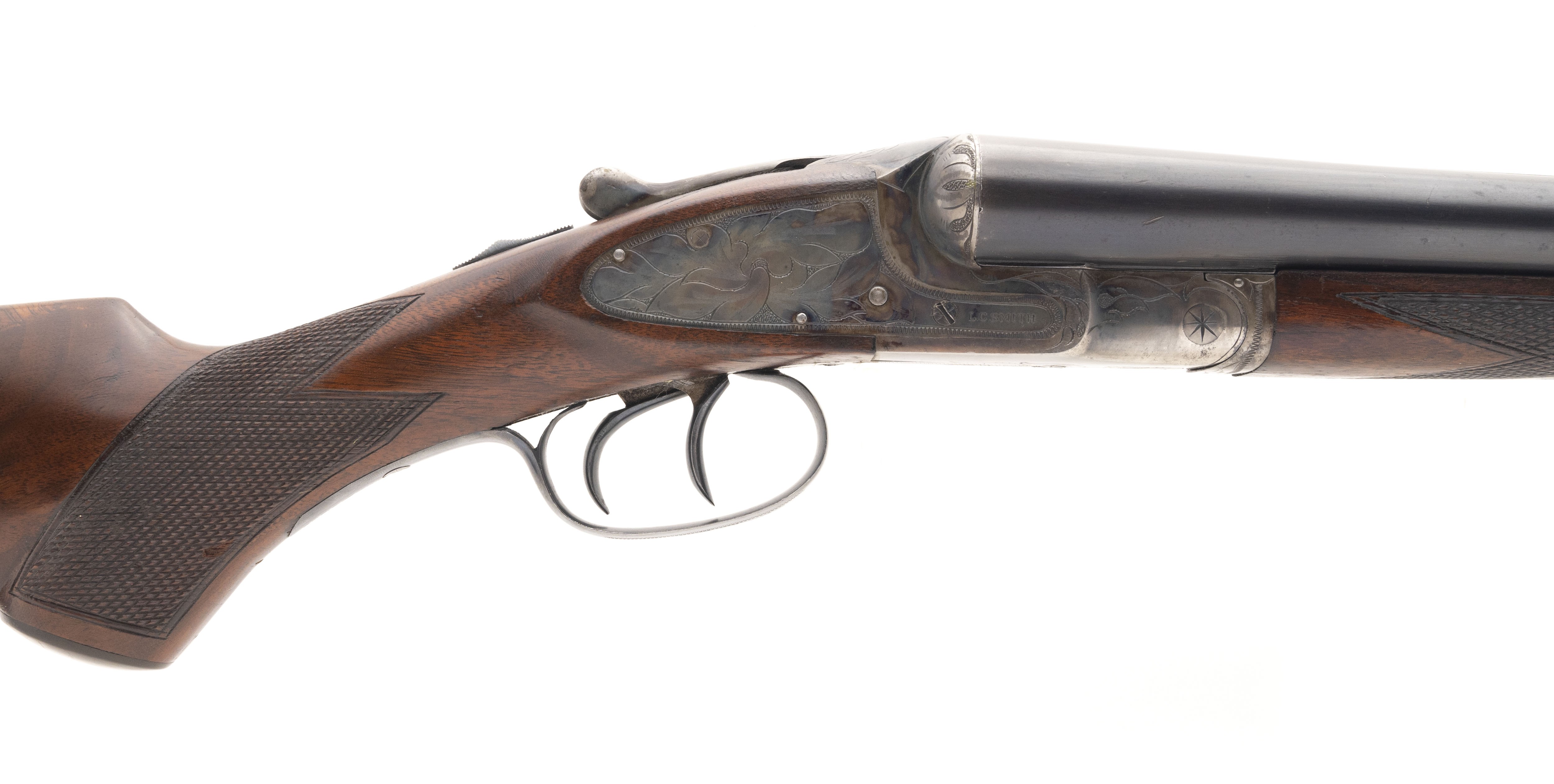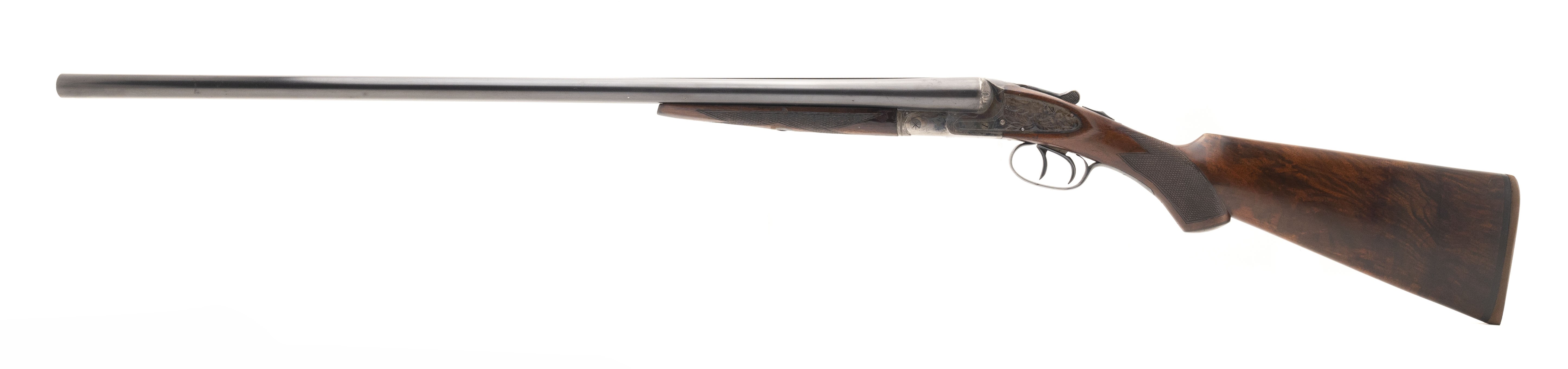SN: FWE26869. Made circa 1920's, 12ga with 30" barrels choked Full/Full. Bores are excellent. Ideal grade ejector gun. The barrels have about 95% original blue. The frame has 95% vivid case colors. The figured walnut stocks are very good with some marks and wear. LOP is 15.25" over a recoil pad. A fine example, in very good overall condition.
