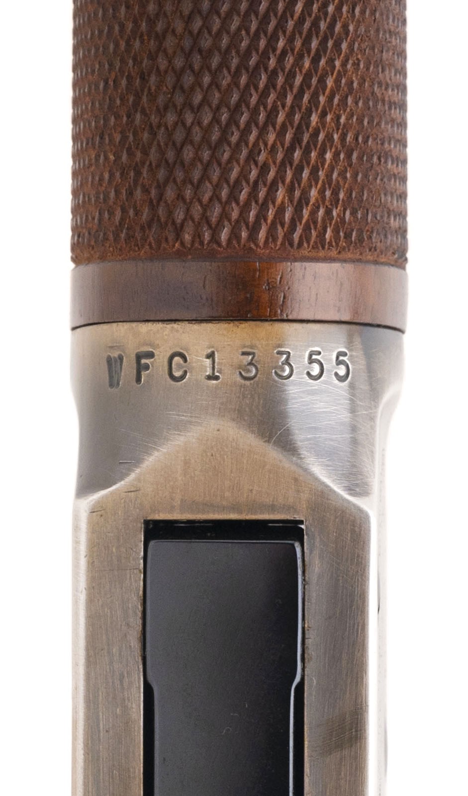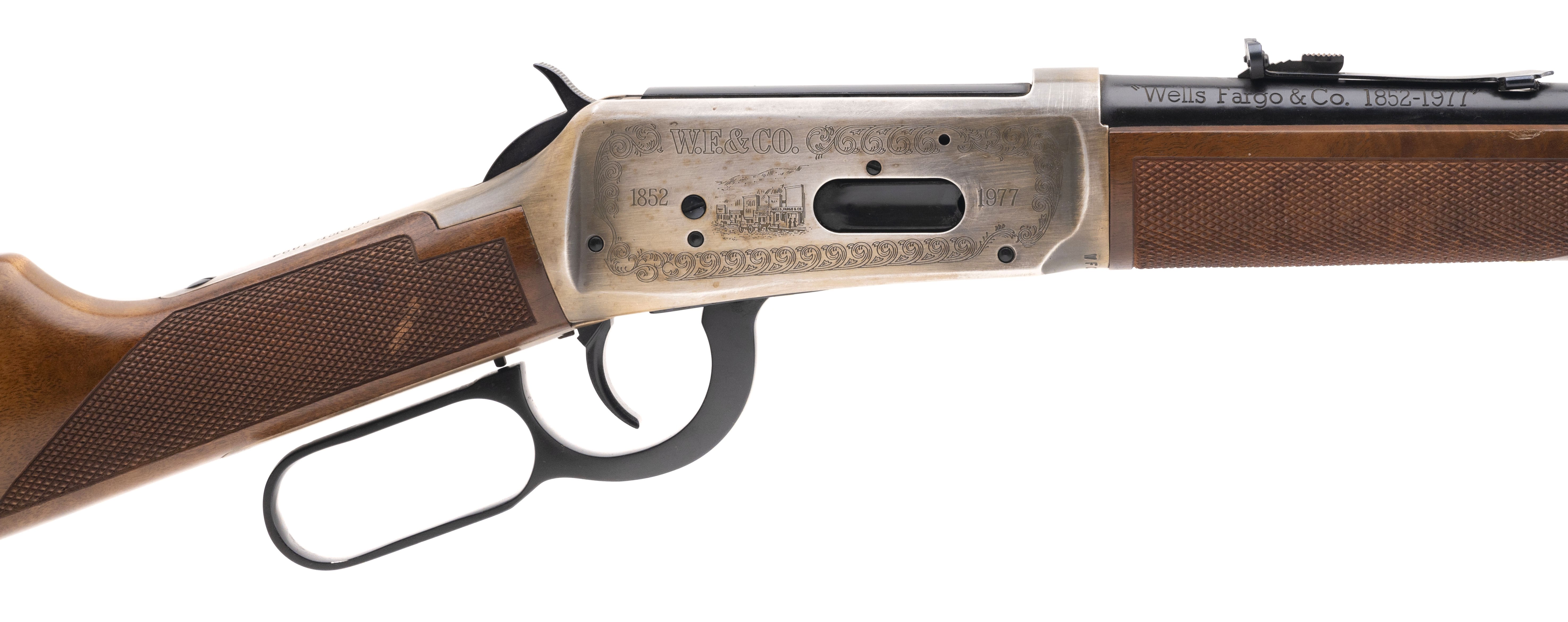 SN: WFC13355. Made in 1977. 30-30 Win with a 20" barrel. Bore is in excellent condition. Lever action commemorative rifle. Metal is in excellent condition, the silver plating has tarnished with age but will shine right up. Wood stock has wells Fargo medallion and is in very good condition. Receiver has wells Fargo stage coach scene engraved on left side commemorating 125 years of Wells Frago & co. Overall condition is very good. (CONSIGNMENT)