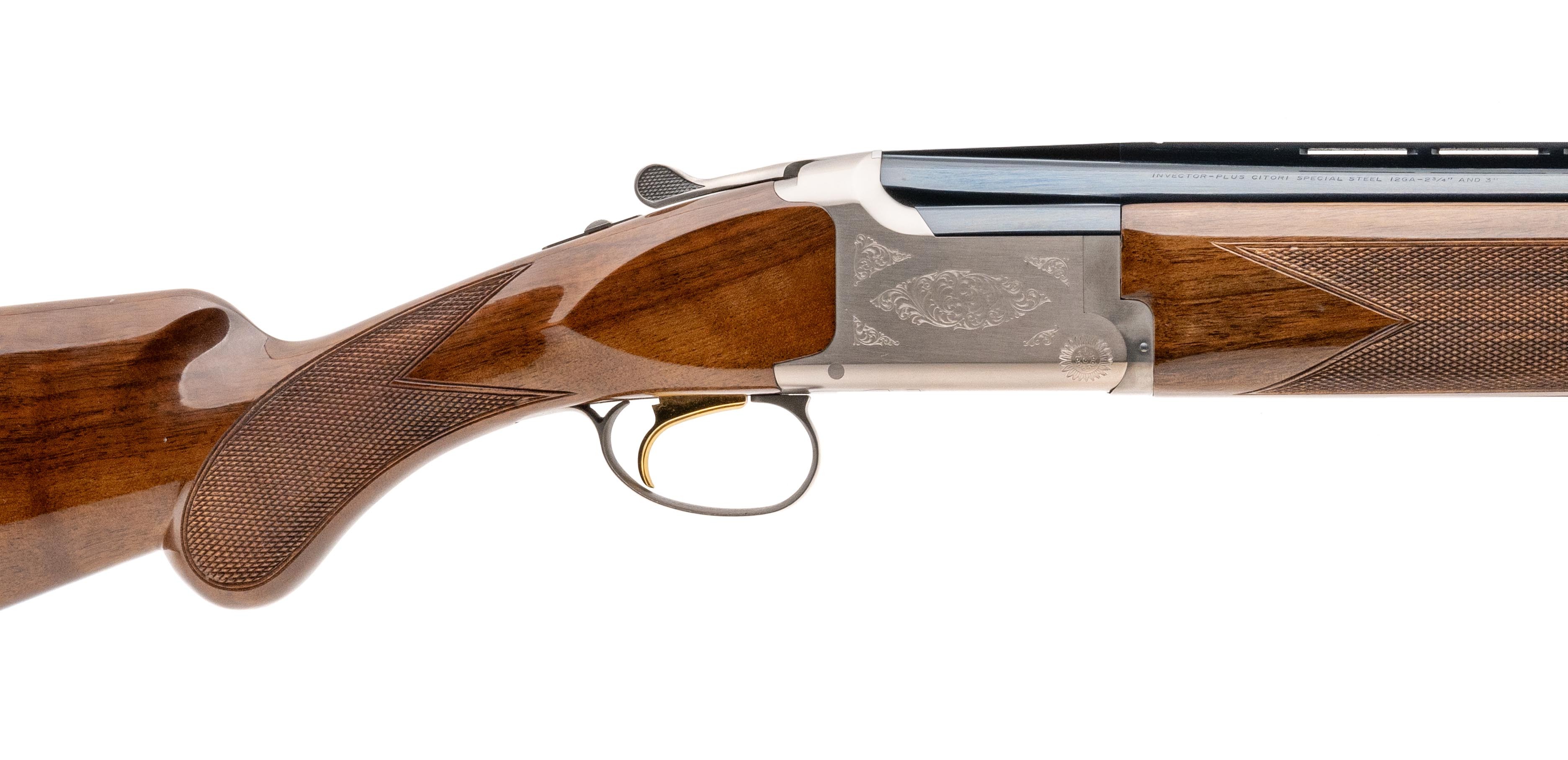 Made n 2001, 12ga with 28" Invector barrels. Over/under field gun with silver alloy receiver. The metal is excellent, the wood has a few light marks. Overall excellent condition. Comes in a Browning luggage case.
