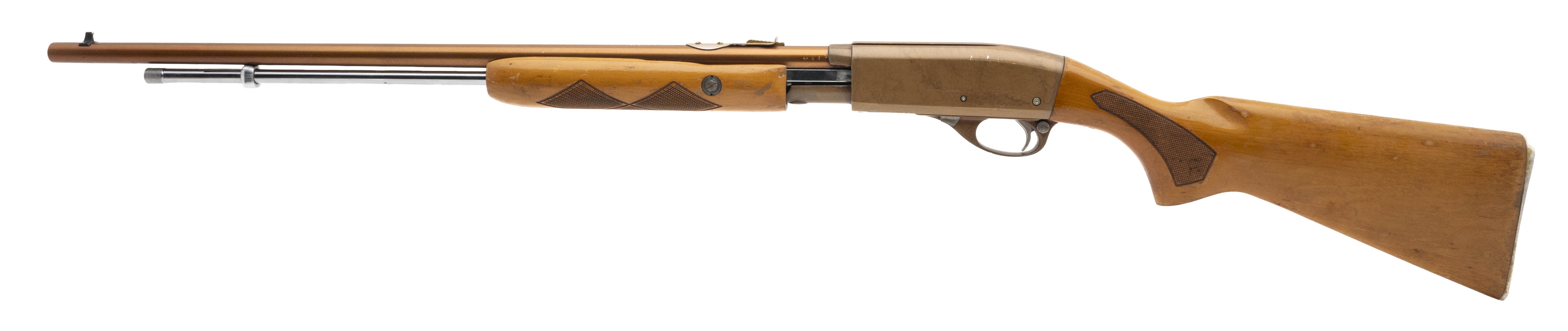 SN:NSN. Made in 1958. .22LR with a 23" barrel. Bore is in excellent condition. Scarce slide action rifle. Bronze finish and wooden stock are in good condition. Has copper colored barrel and stainless magazine tube. Overall condition is good.