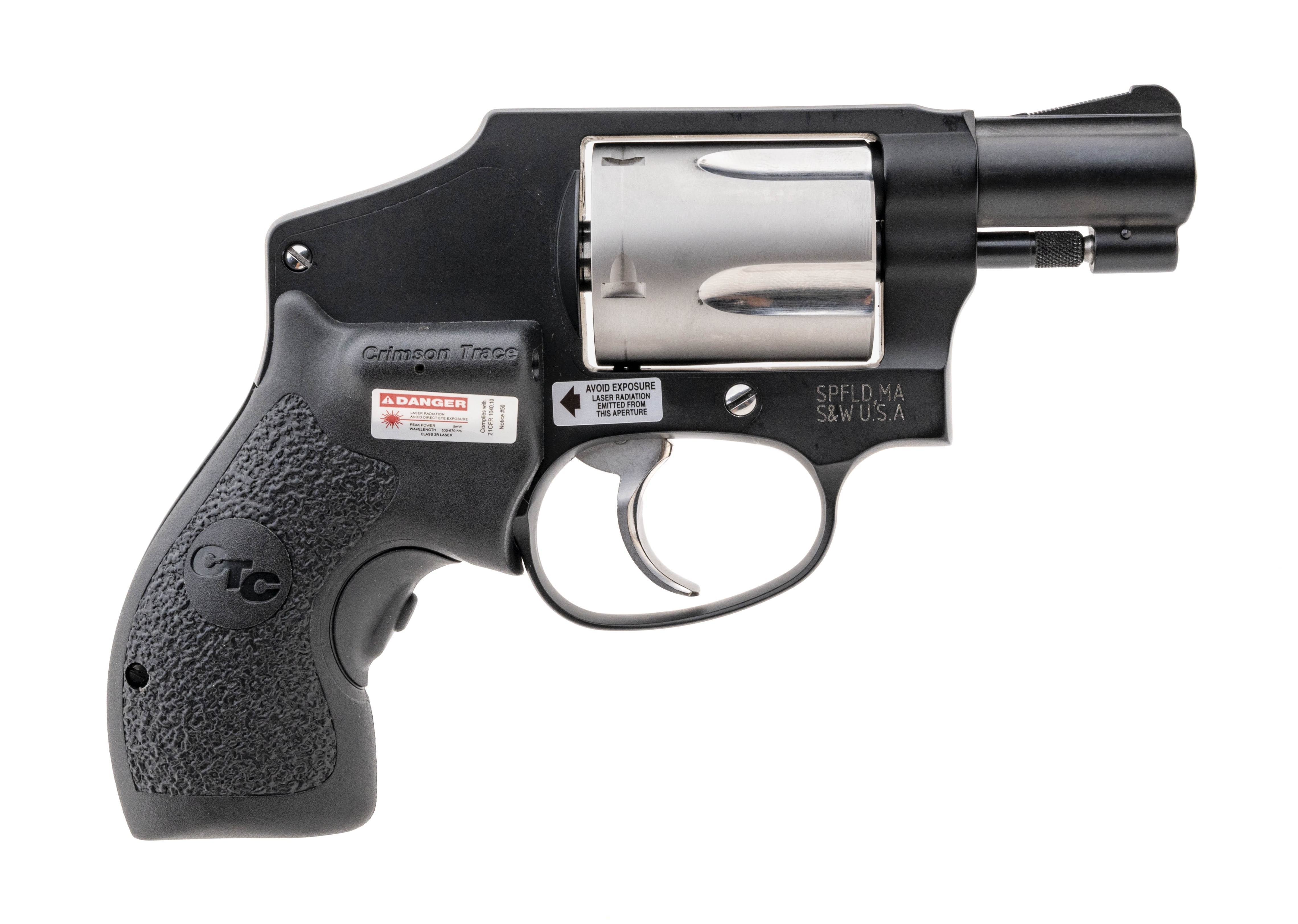 1.875" alloy framed two-tone pocket revolver with Crimson Trace laser grips. Double action only performance model J-Frame. NEW. UPC: 022188878585.