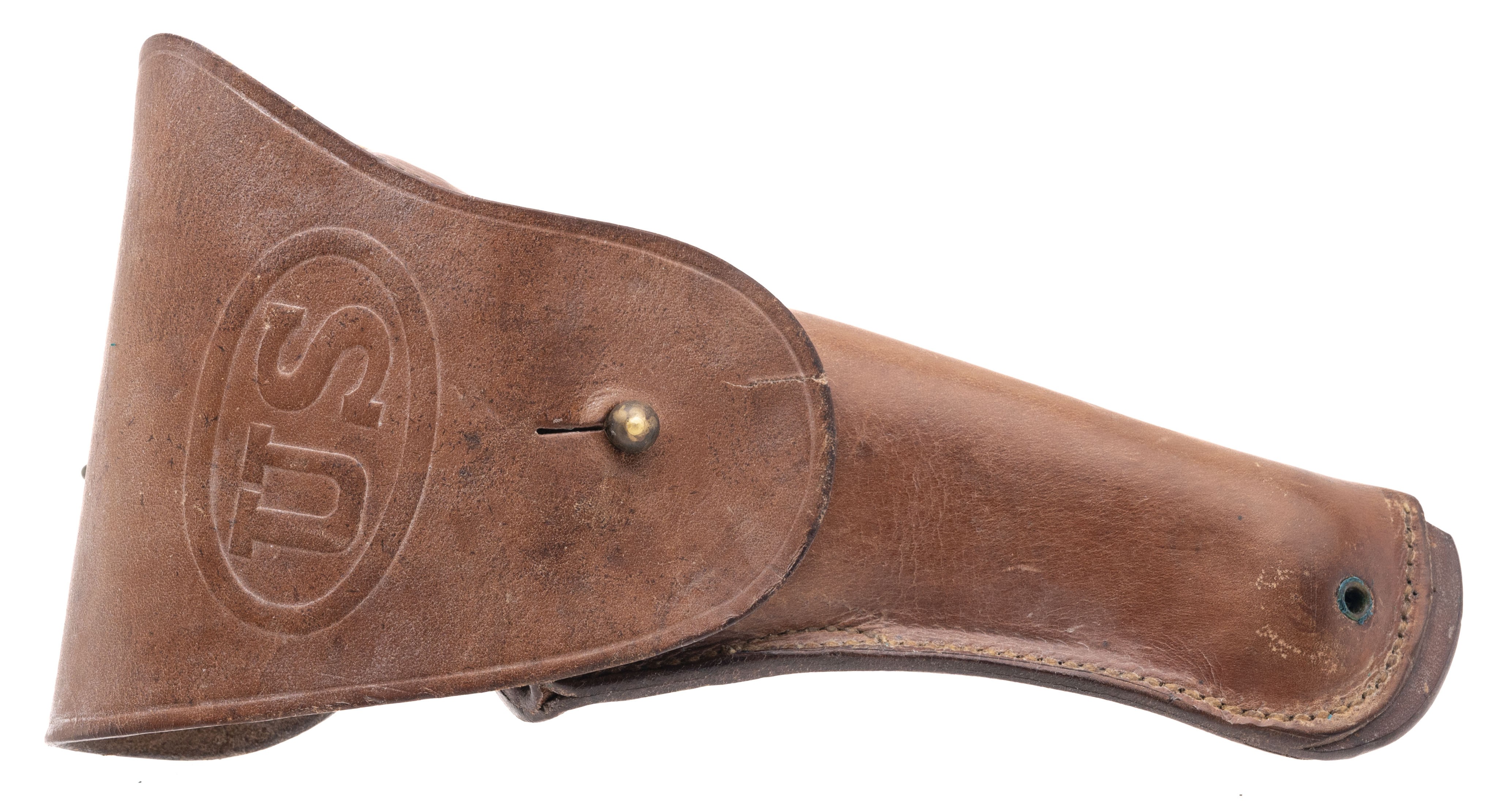 1918-dated USGI World War I Model of 1916 leather holster for the Model of 1911 .45 caliber pistol. Condition is excellent overall. Made by F. M. Hoyt Shoe Co., of Manchester, New Hampshire.
