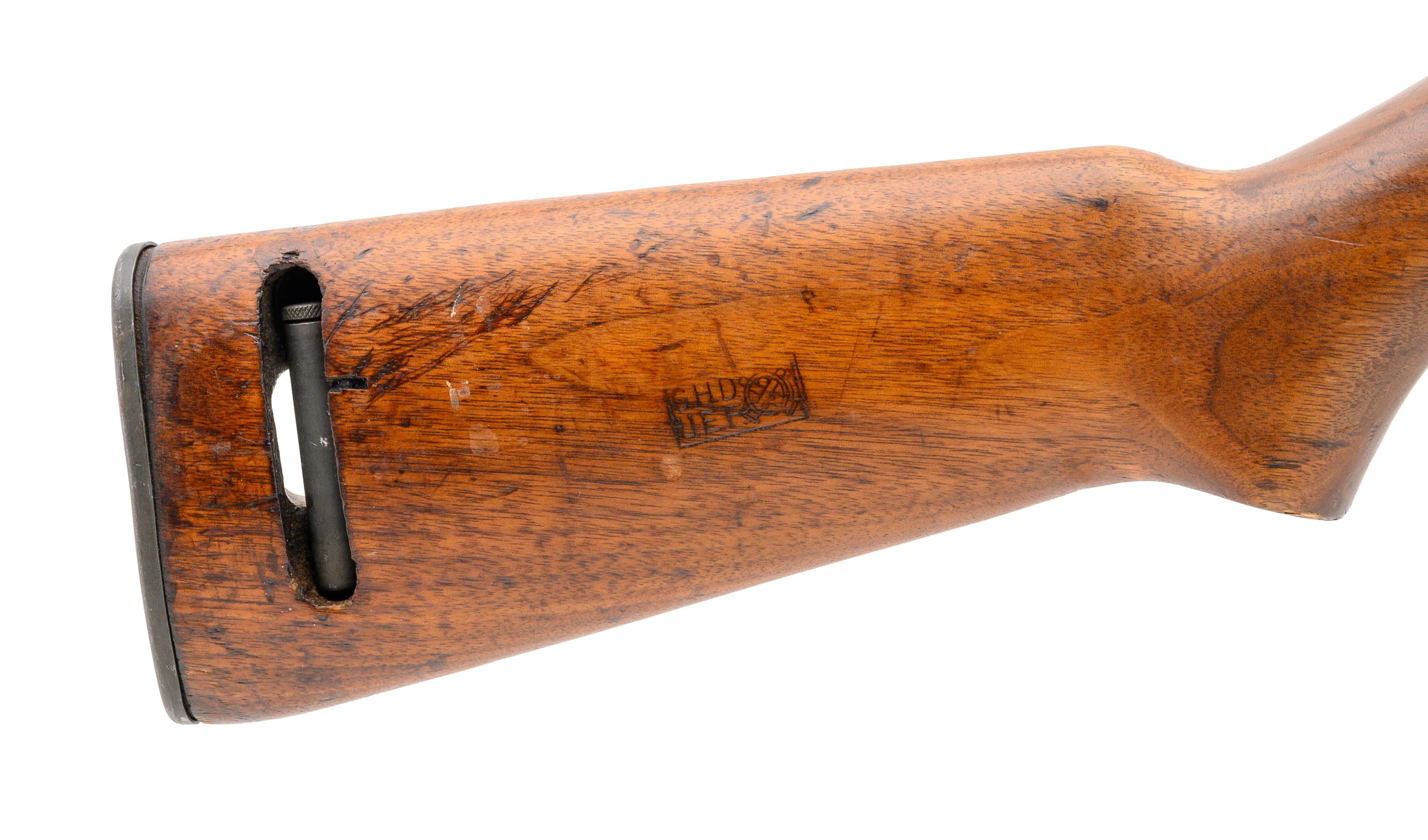 Type B high wood oval cut M1 Carbine stock made by Underwood with buttplate, recoil plate, escutcheon, screw, band spring & sling. Comes with 2-rivet handguard. Used but good condition.
