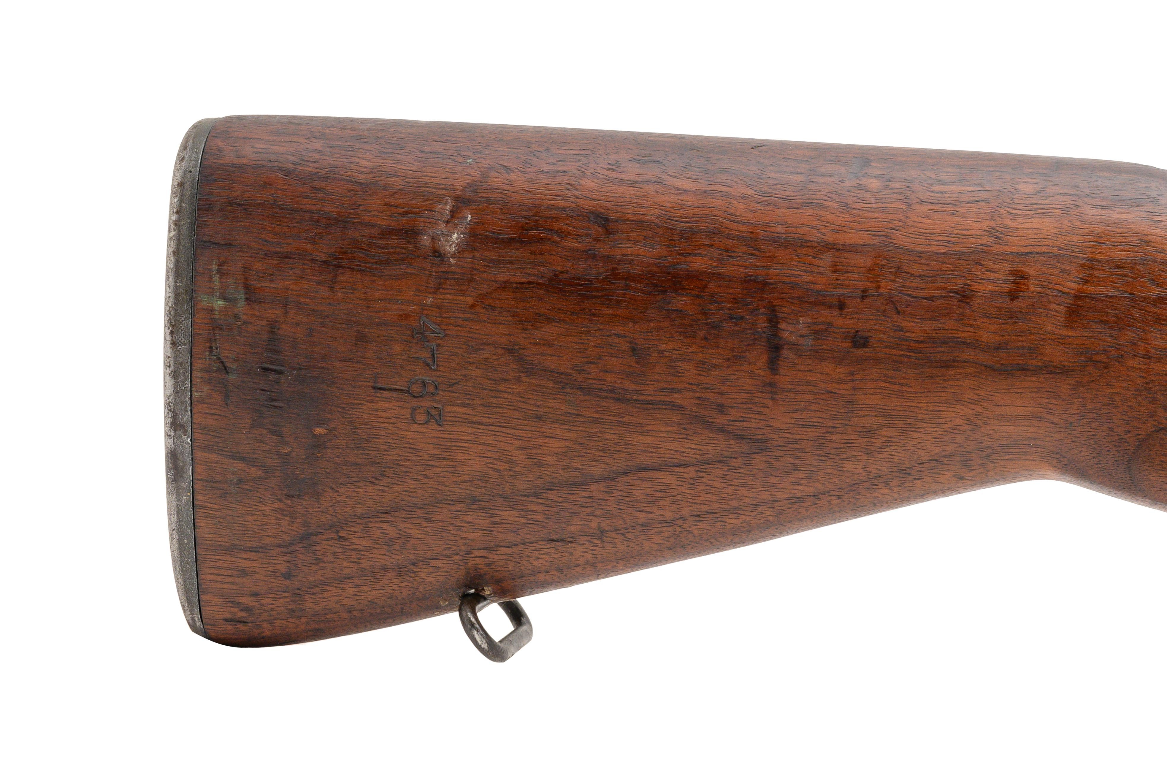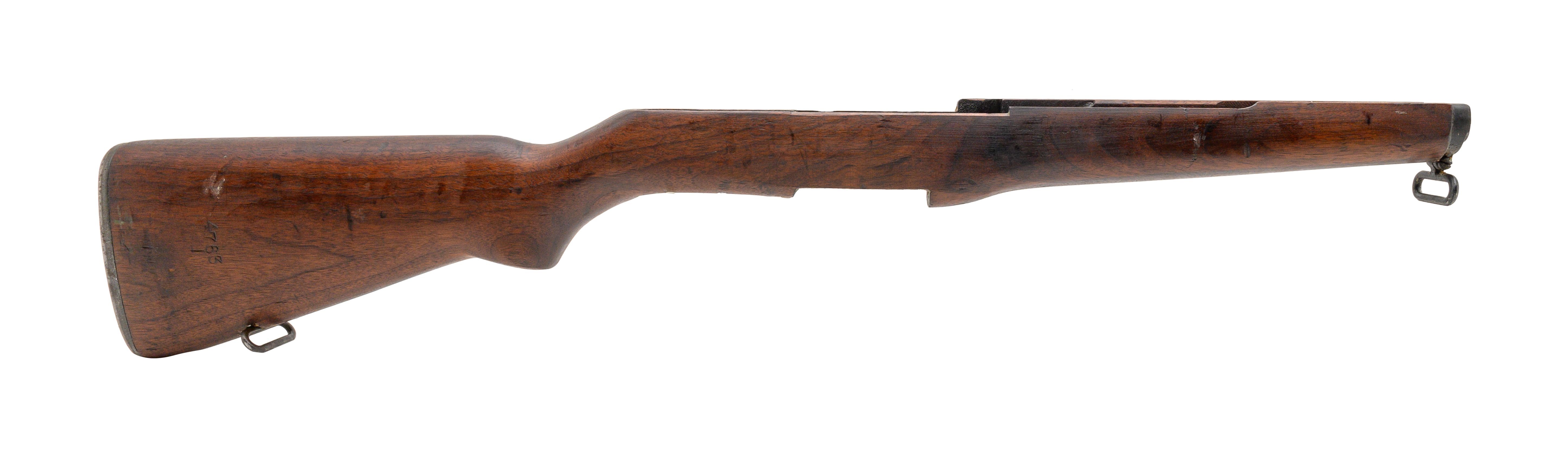 Unmarked USGI M1 Garand post-World War II walnut stock with front & rear sling swivels, buttplate & buttplate screws. Comes with rear & front handguards. Wood has dings & dents but is otherwise in very good overall condition.