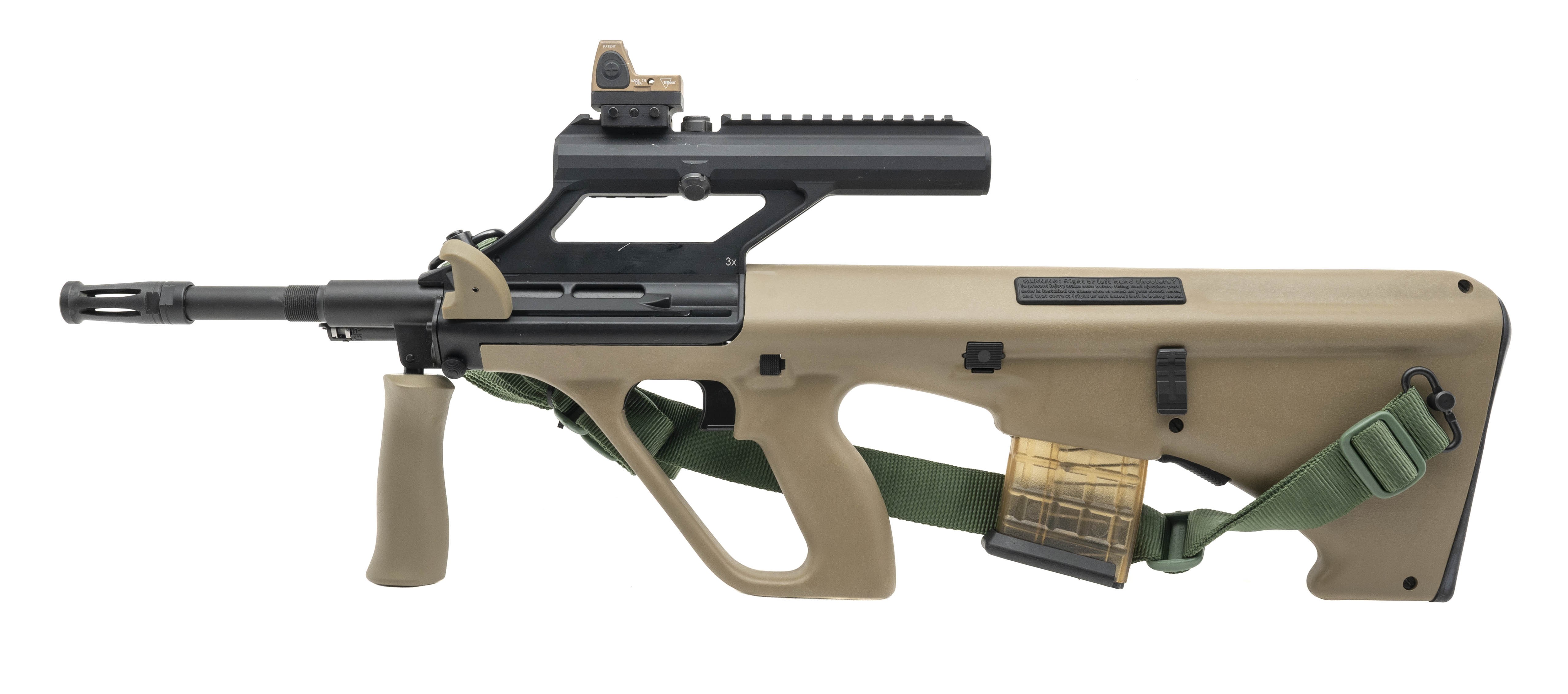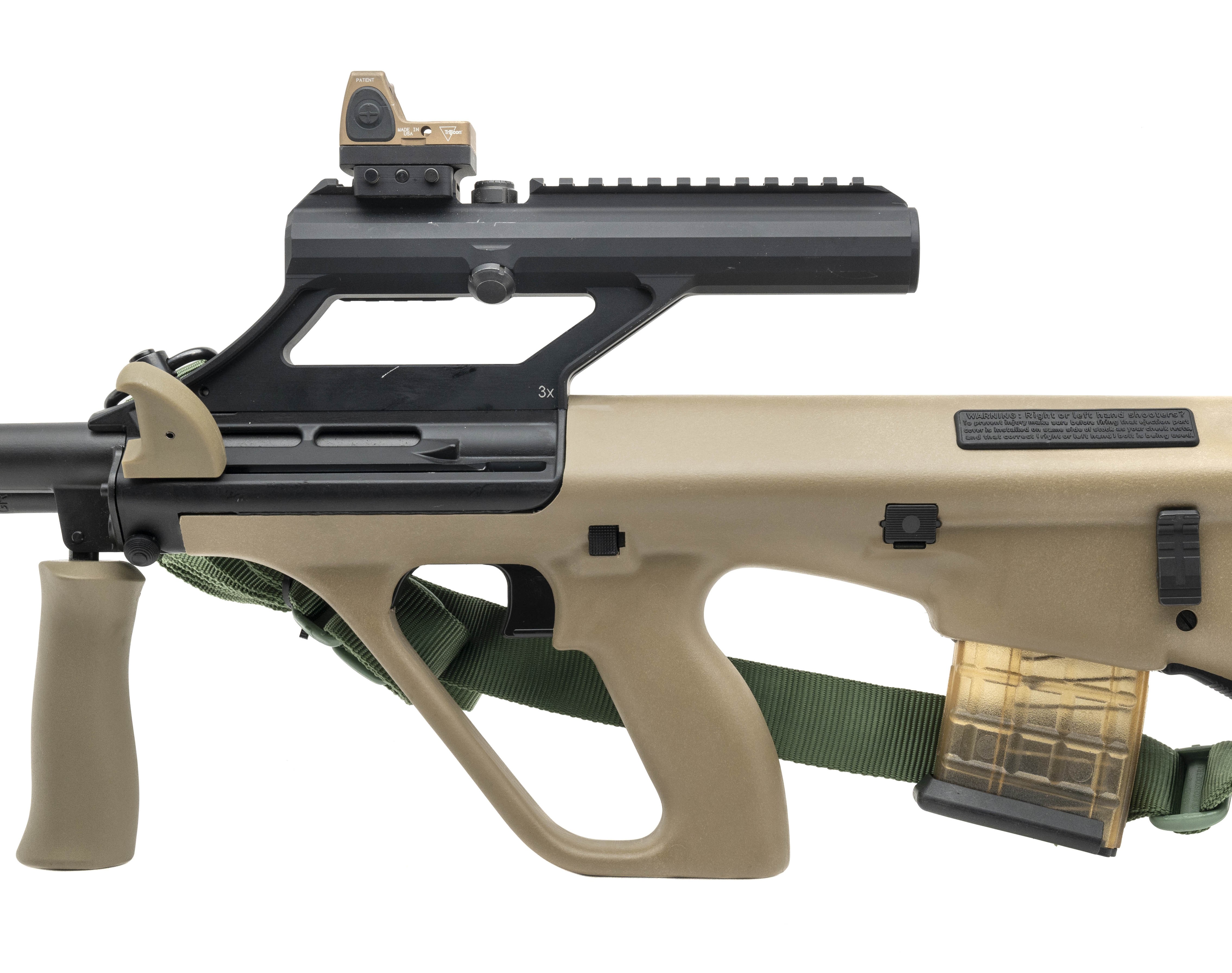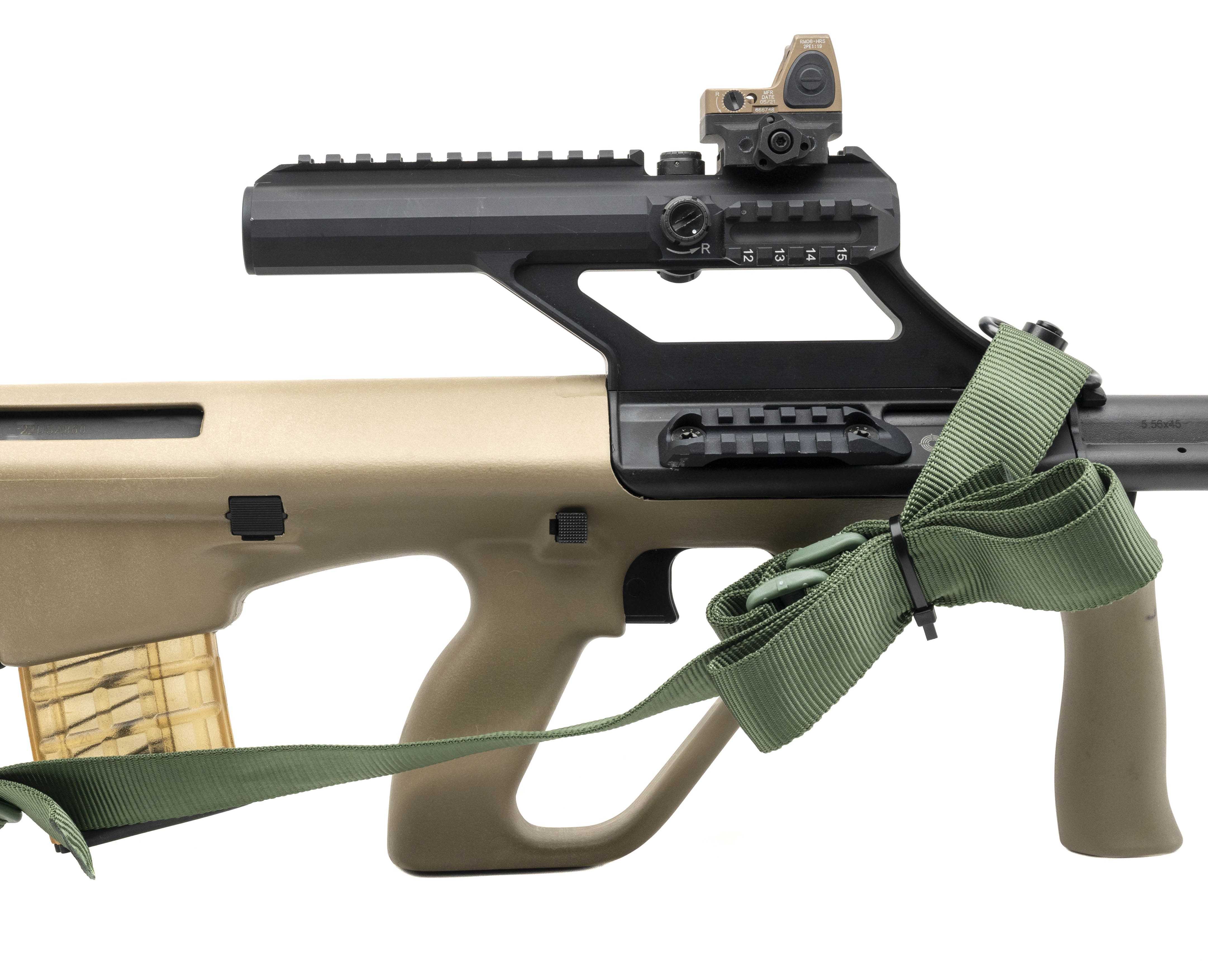 SN:22USA860. Modern production. 5.56 Nato with a 16" barrel. Bore is in excellent condition. Bullpup rifle. Finish and stock are excellent. Has Trijicon red dot and 3x scope. Overall condition is excellent. Comes with sling.