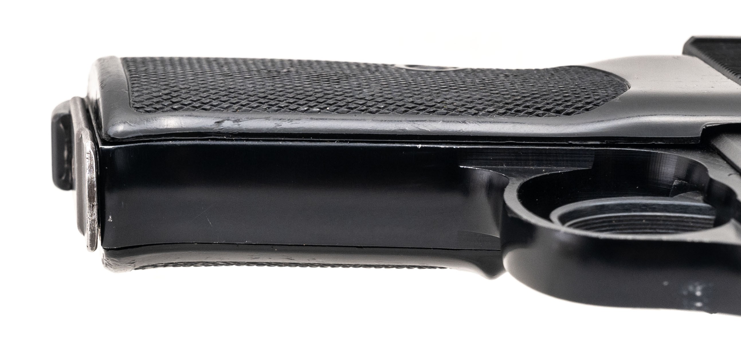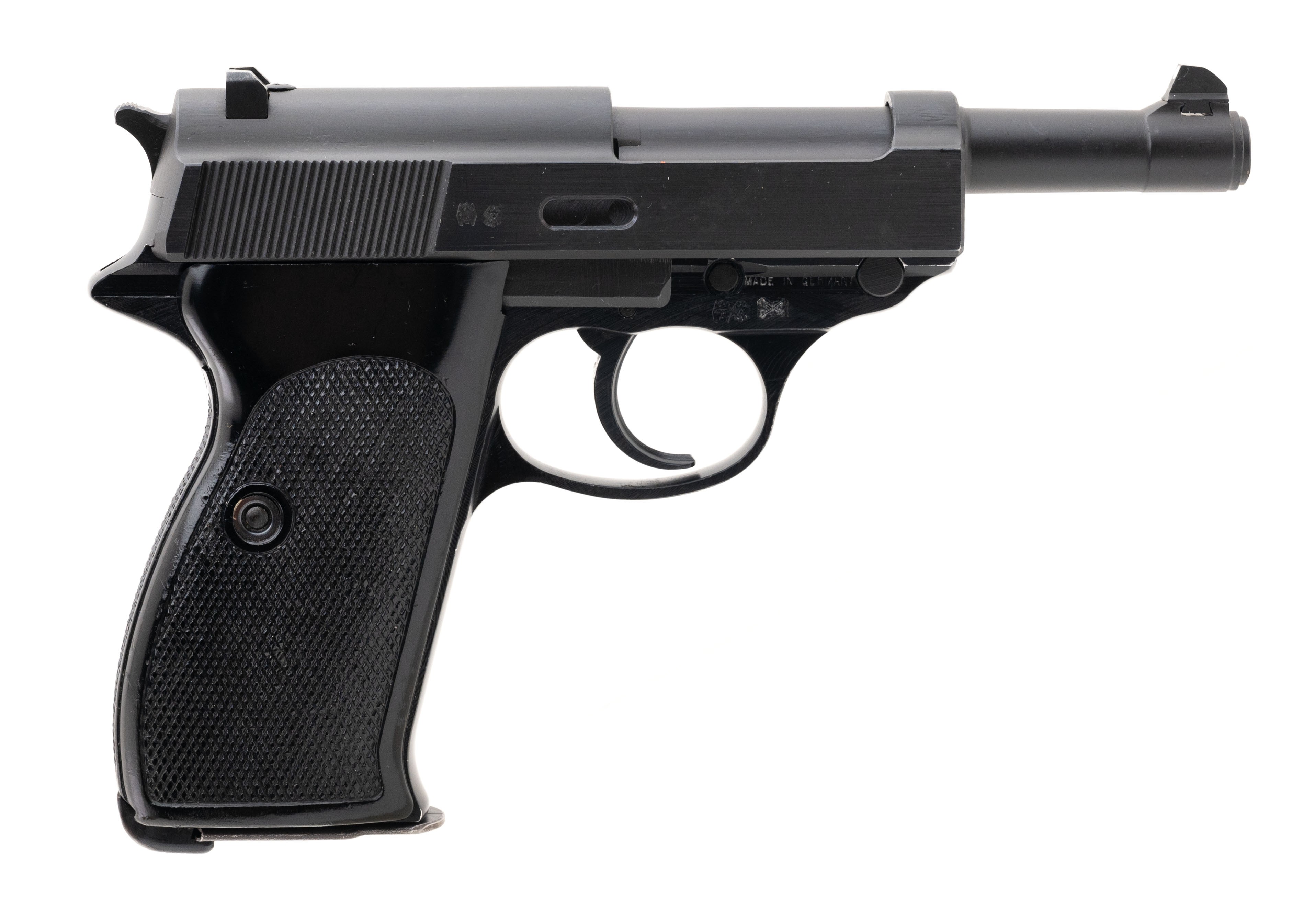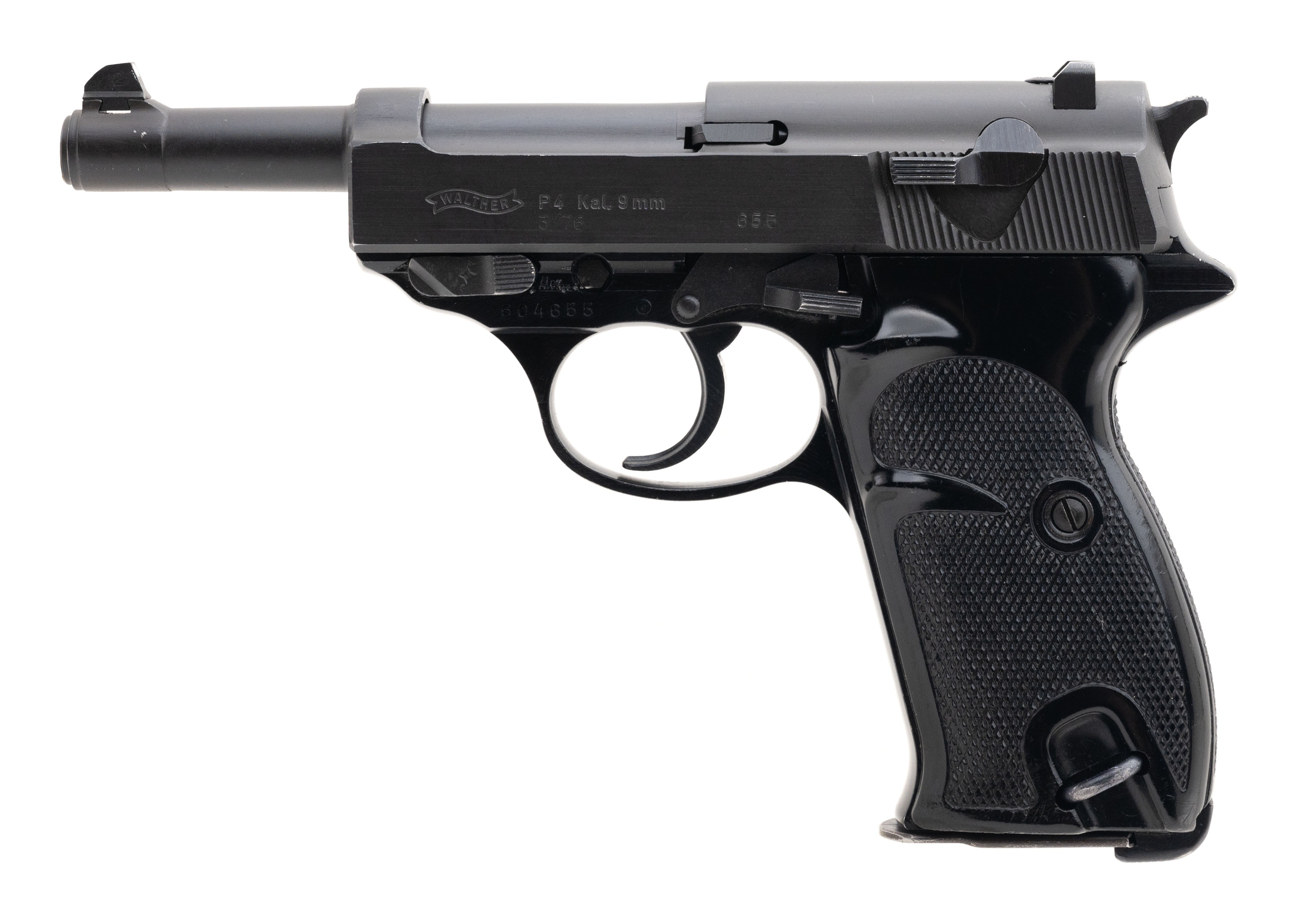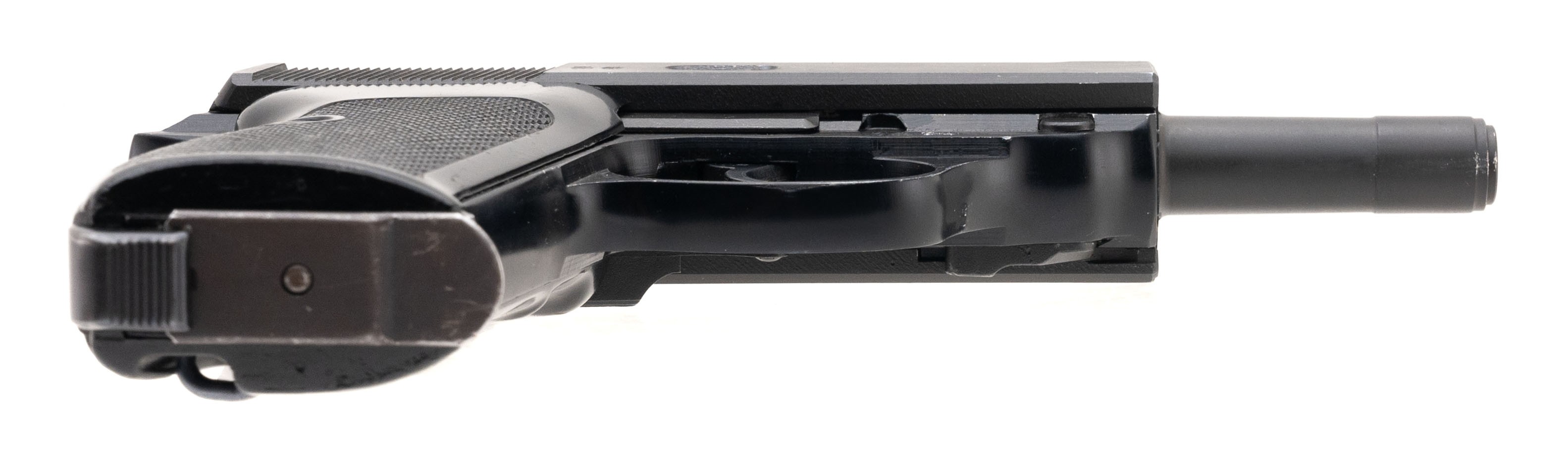 SN: 604655. Made in 1976, 9mm caliber with a 4.5" barrel. Scarce W. German police pistol made with a reinforced slide and shorter barrel than the P38 and P1. This is the last version of the P38 series guns before they modernized and went to the P5. Excellent condition with box, holster and extra mag. Hard to find in this condition. Comes with an extra set of Walther walnut grips.