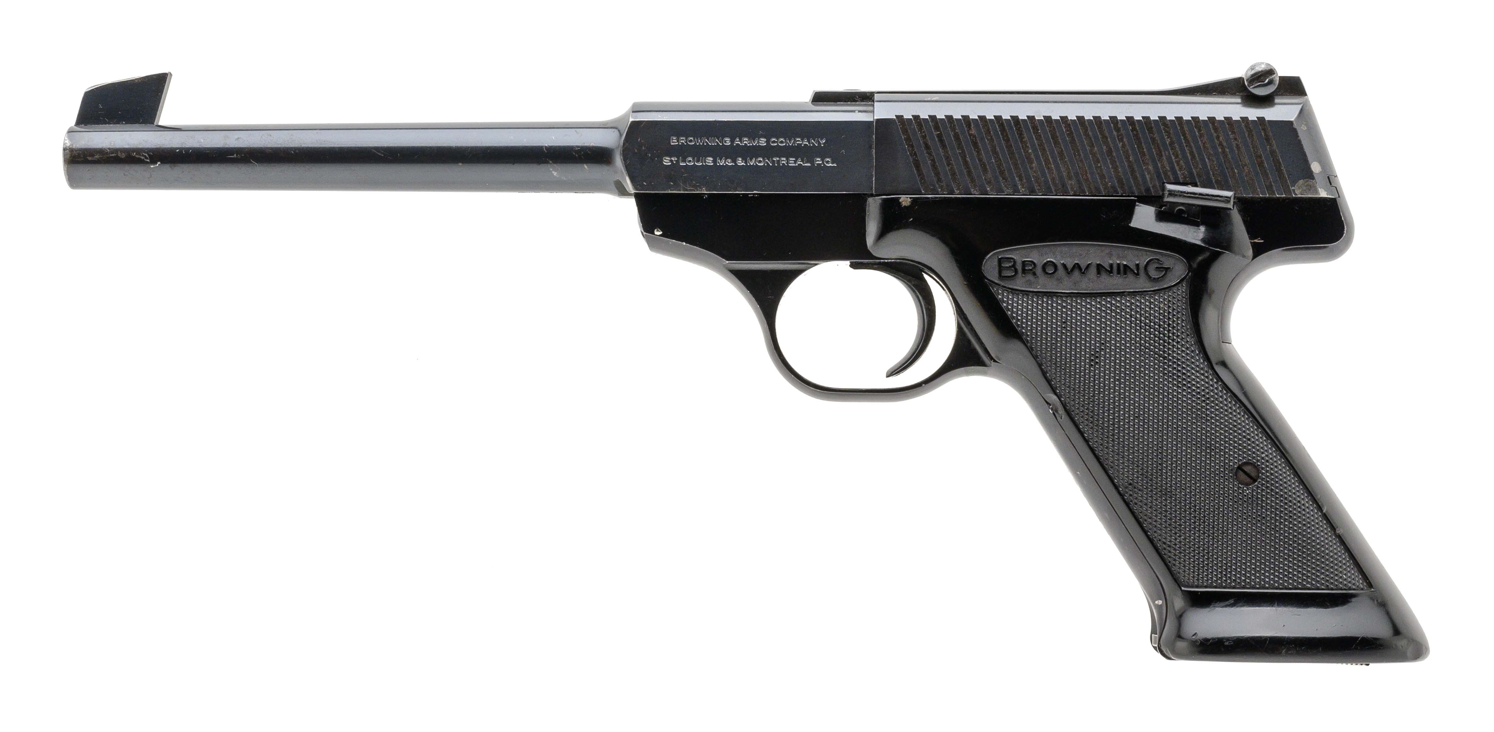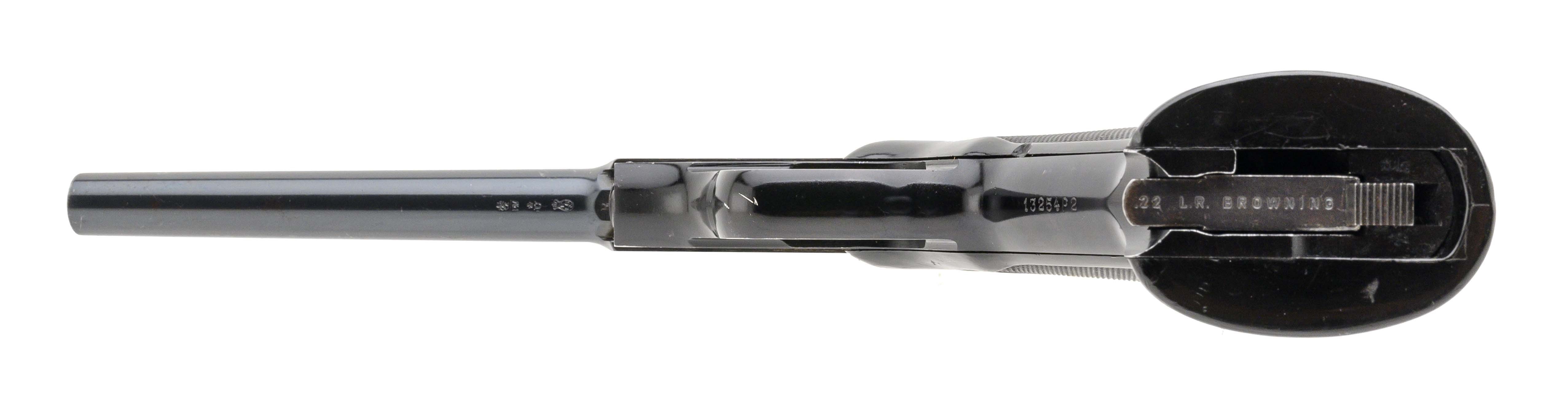 SN: 13254P2. Made in 1962 with a 6.75-inch barrel chambered for the .22LR cartridge. Overall condition is excellent with original factory finish present on the metallic parts & only limited discoloration & handling wear. Comes with original plastic BROWNING banner grips & a 10-round magazine.