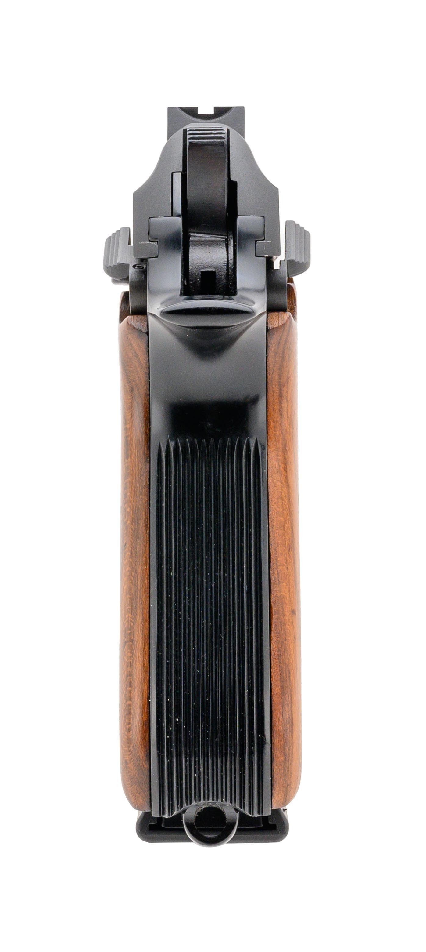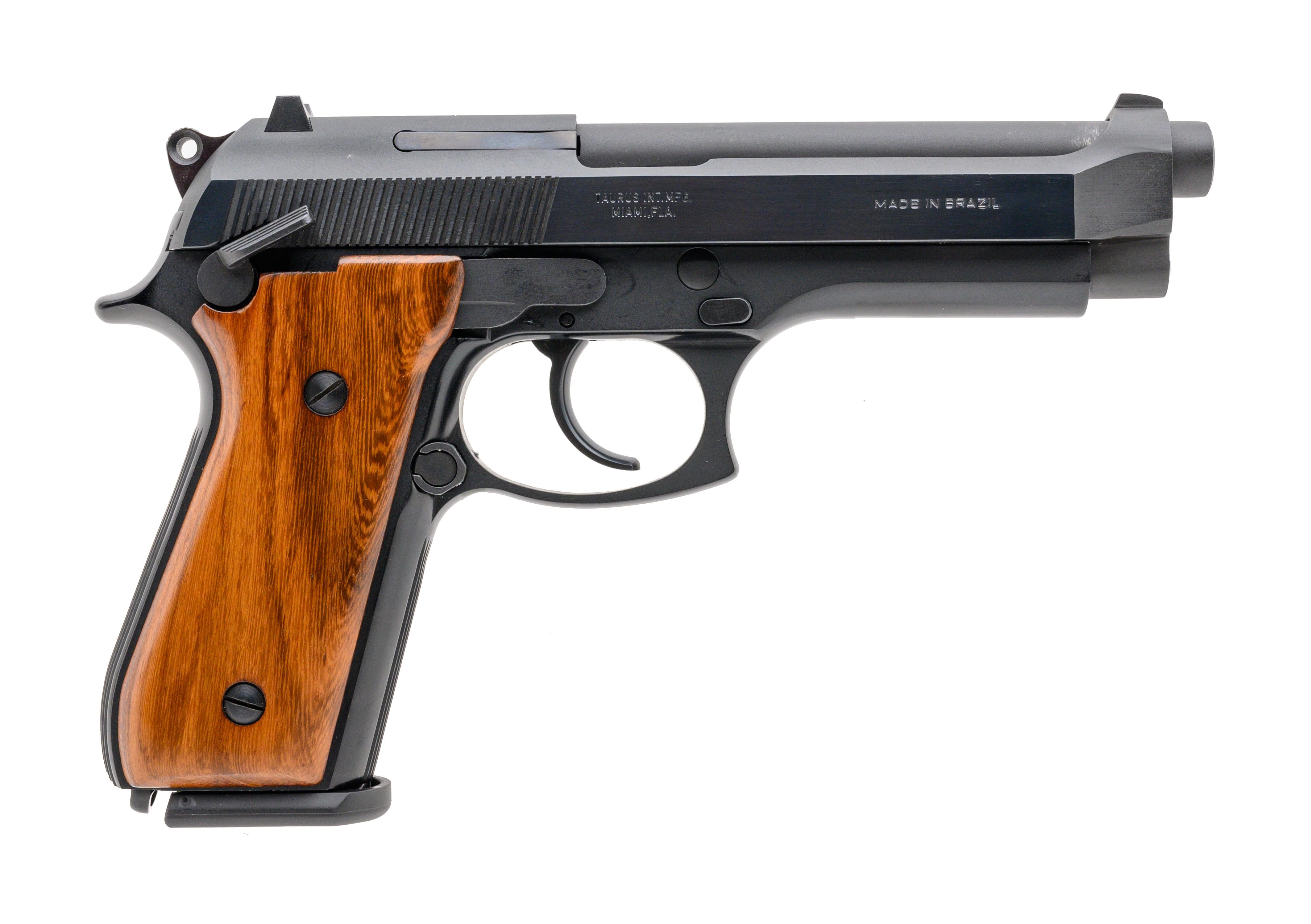 SN: L42348. 1980's vintage 9mm with a 4.9" barrel. Early model Taurus 92 with blue finish and wood grips. Excellent overall condition.