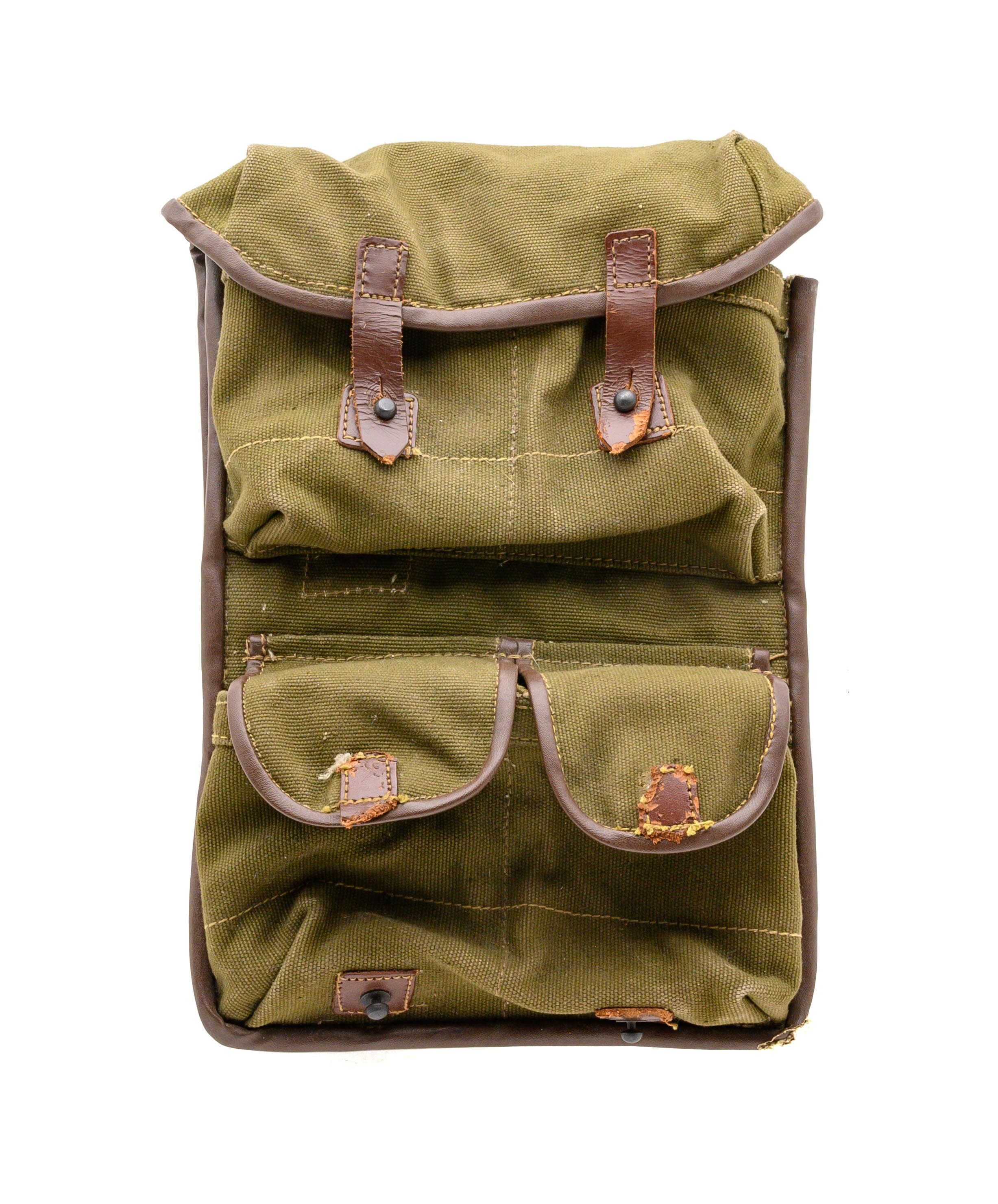 Green canvas pouch for the Romanian PSL rifle that can accommodate four magazines as well as the LPS 4x6 TIP2 4x24 scope. Overall excellent condition but the tabs have been cut off of the bottom two magazine pockets.